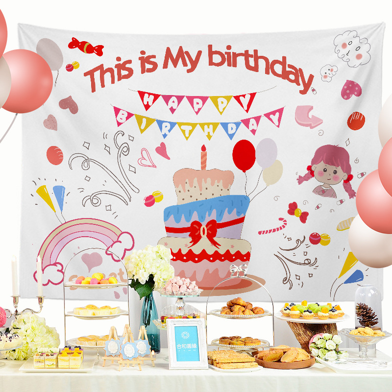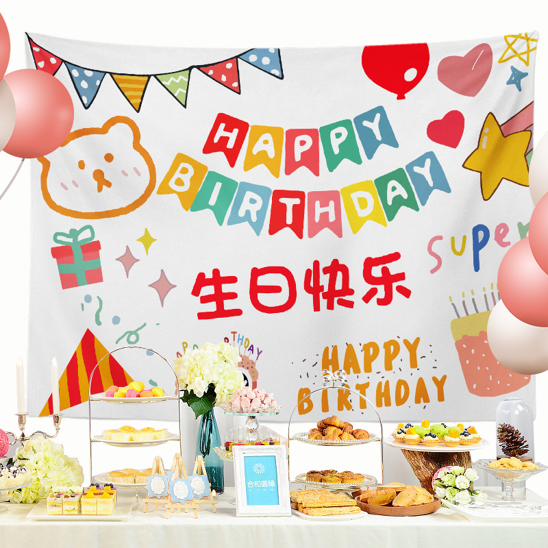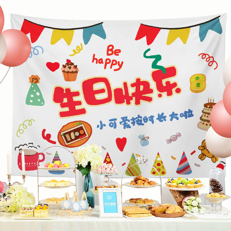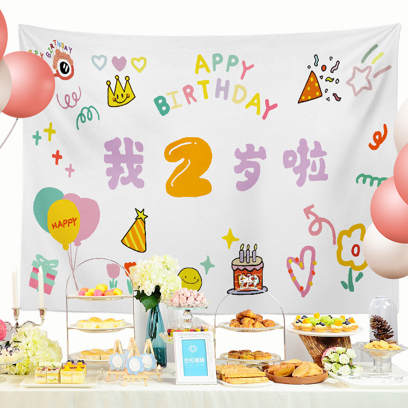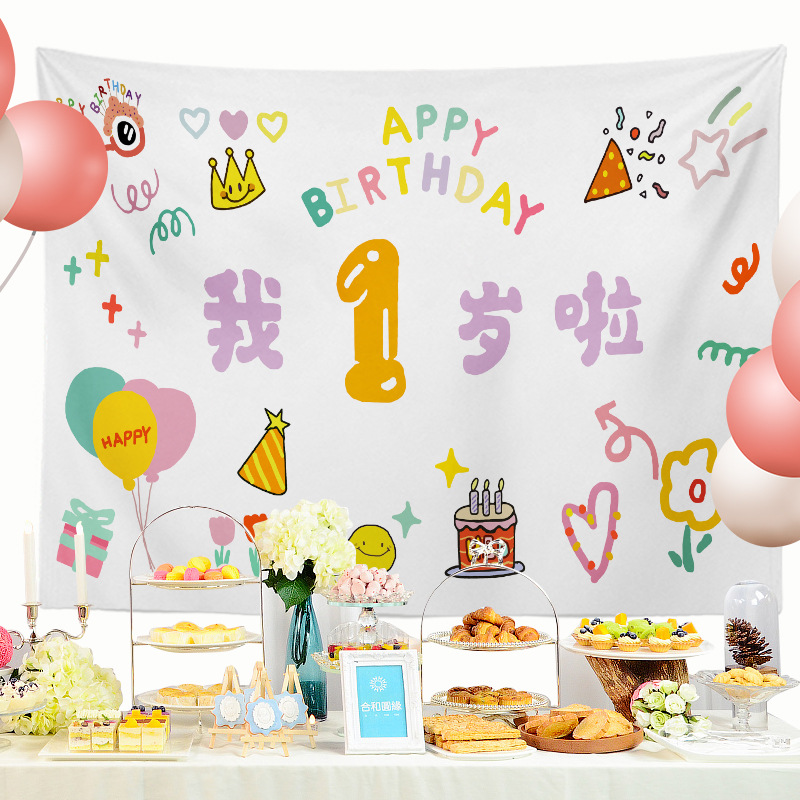生日背景布 ins风挂布儿童派对百日周岁布置装饰墙布拍照道具批发