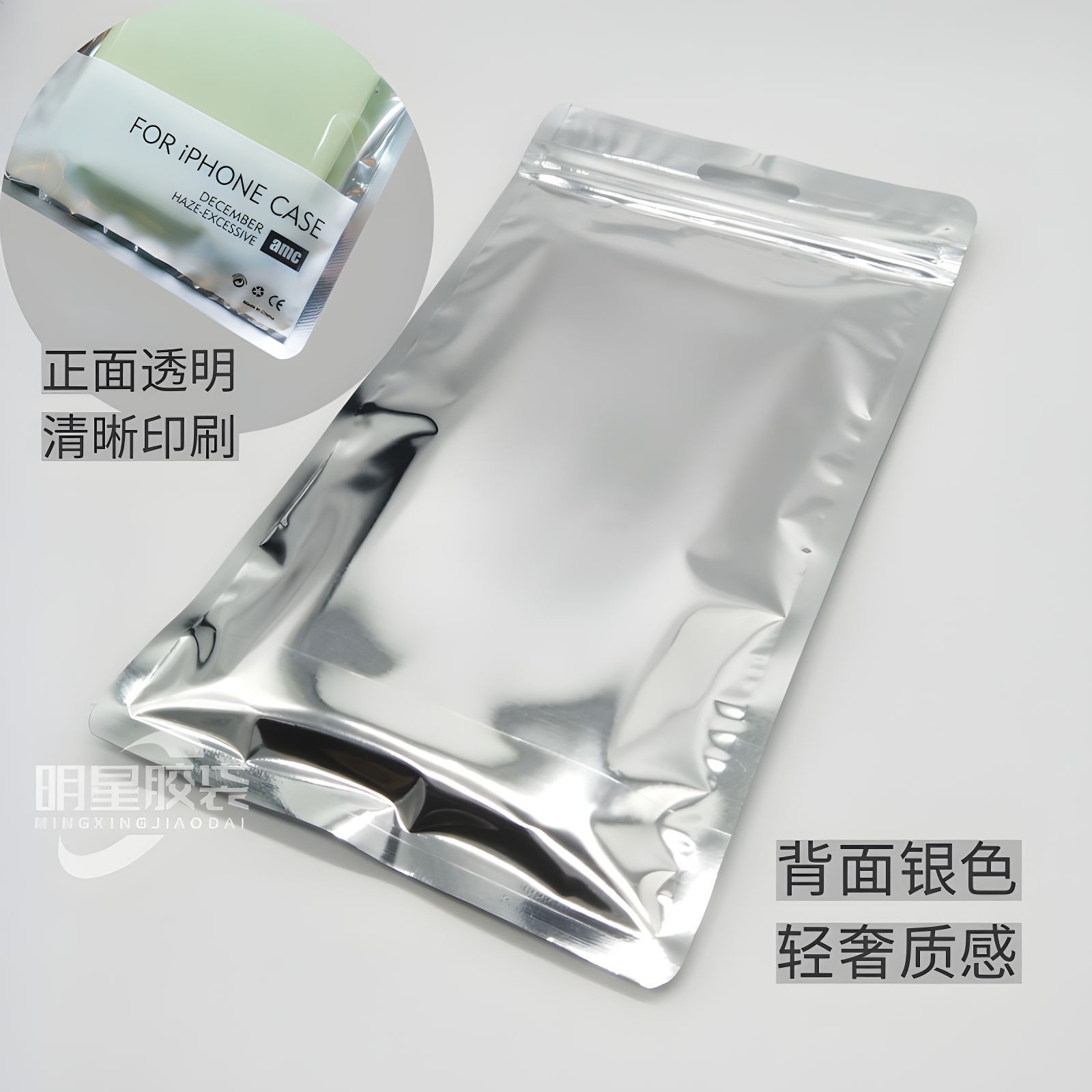 新银铝箔通用手机壳包装袋珠光银珠自封袋光膜阴阳袋现货厂家直销