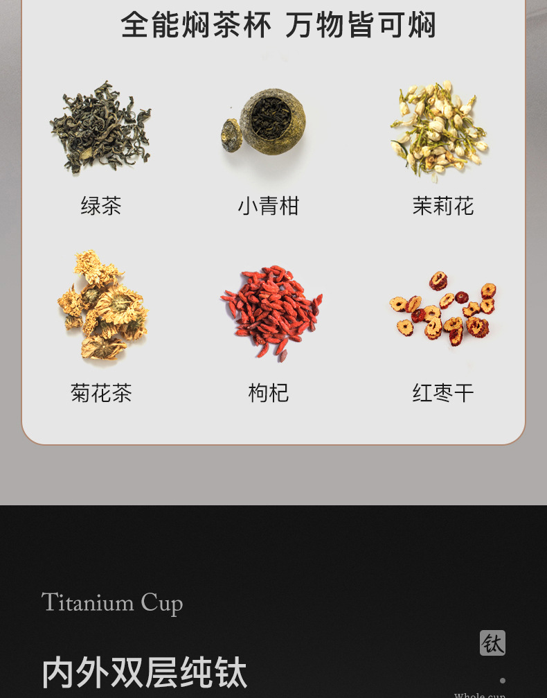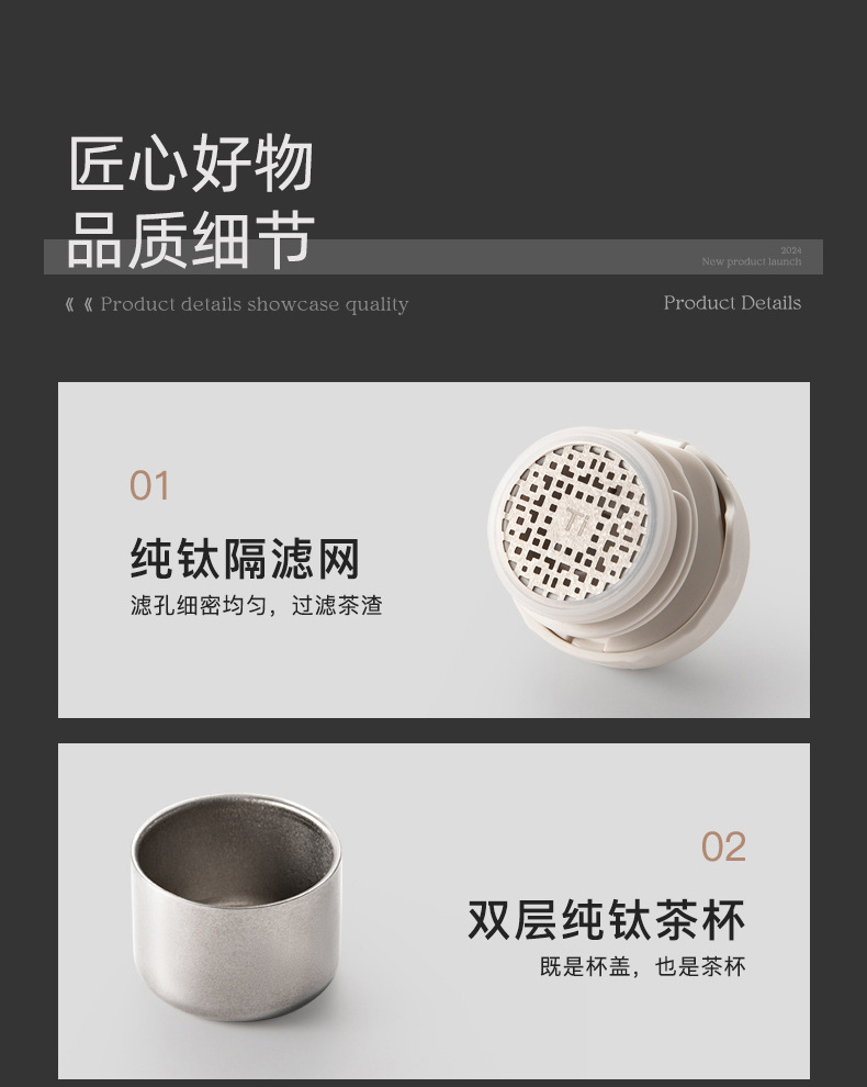 纯钛保温杯焖泡茶杯双层钛杯茶水分离闷白茶养生杯子便携大容量