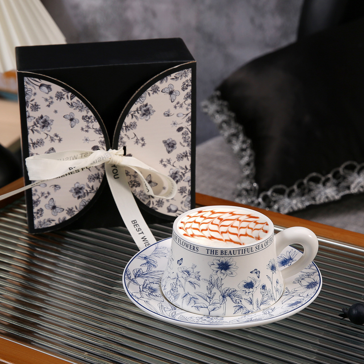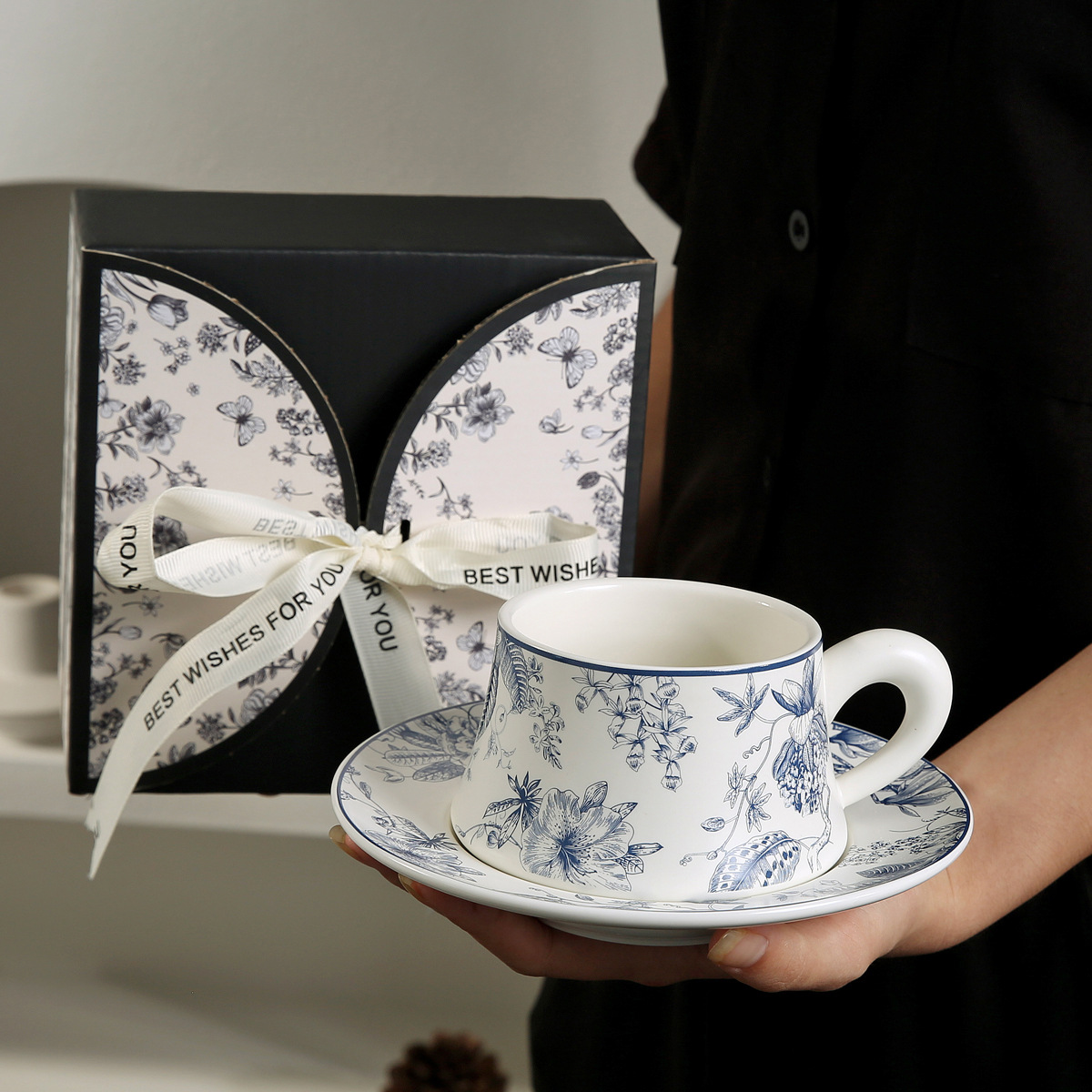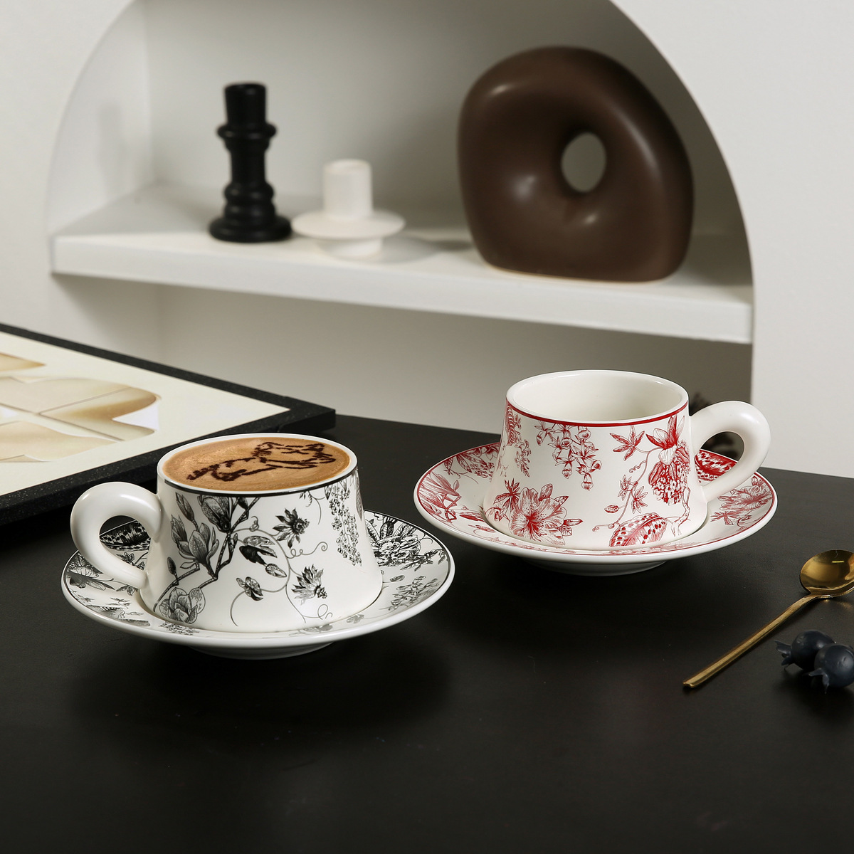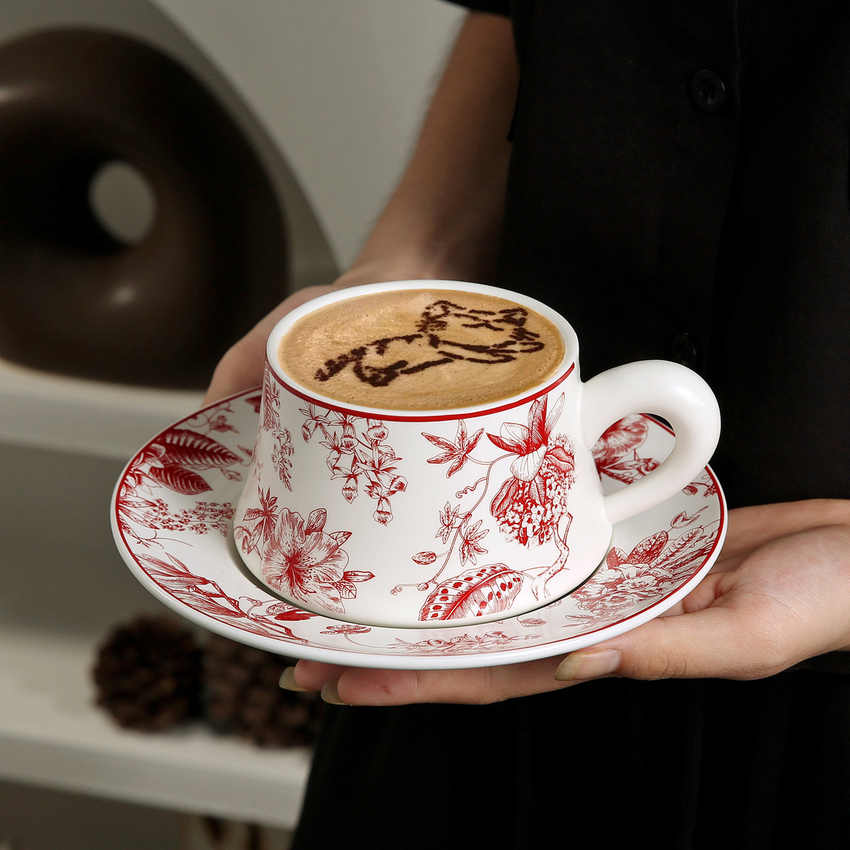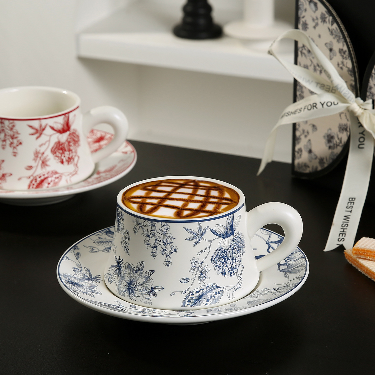 ins风设计感陶瓷咖啡杯花卉图案釉下彩复古拿铁杯子精致下午茶具