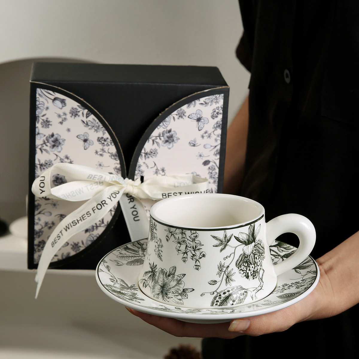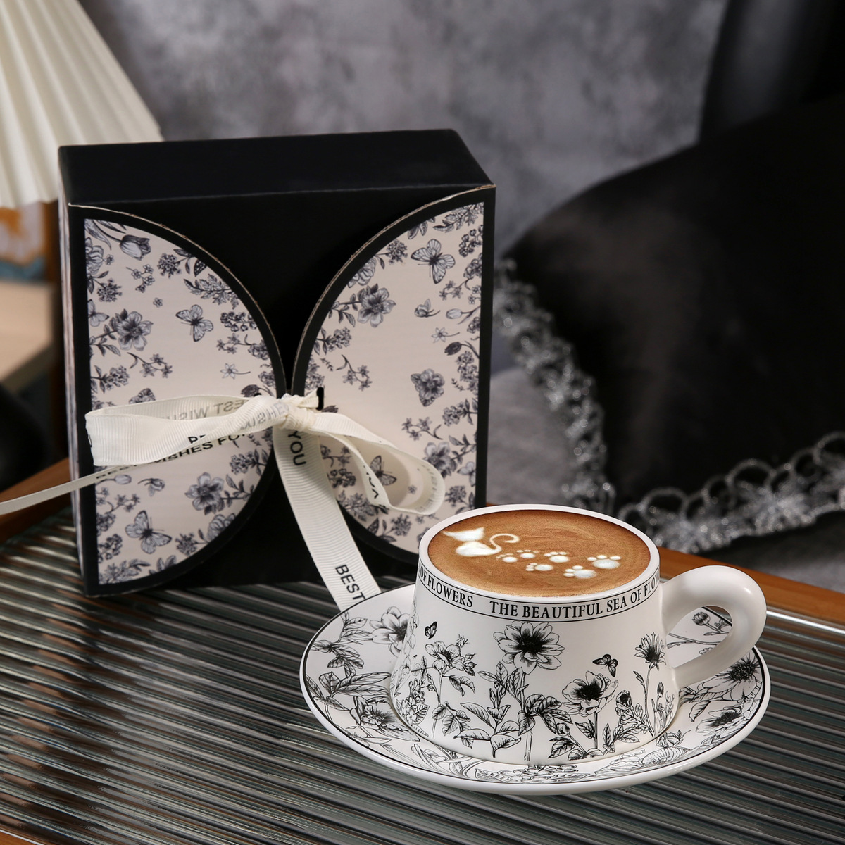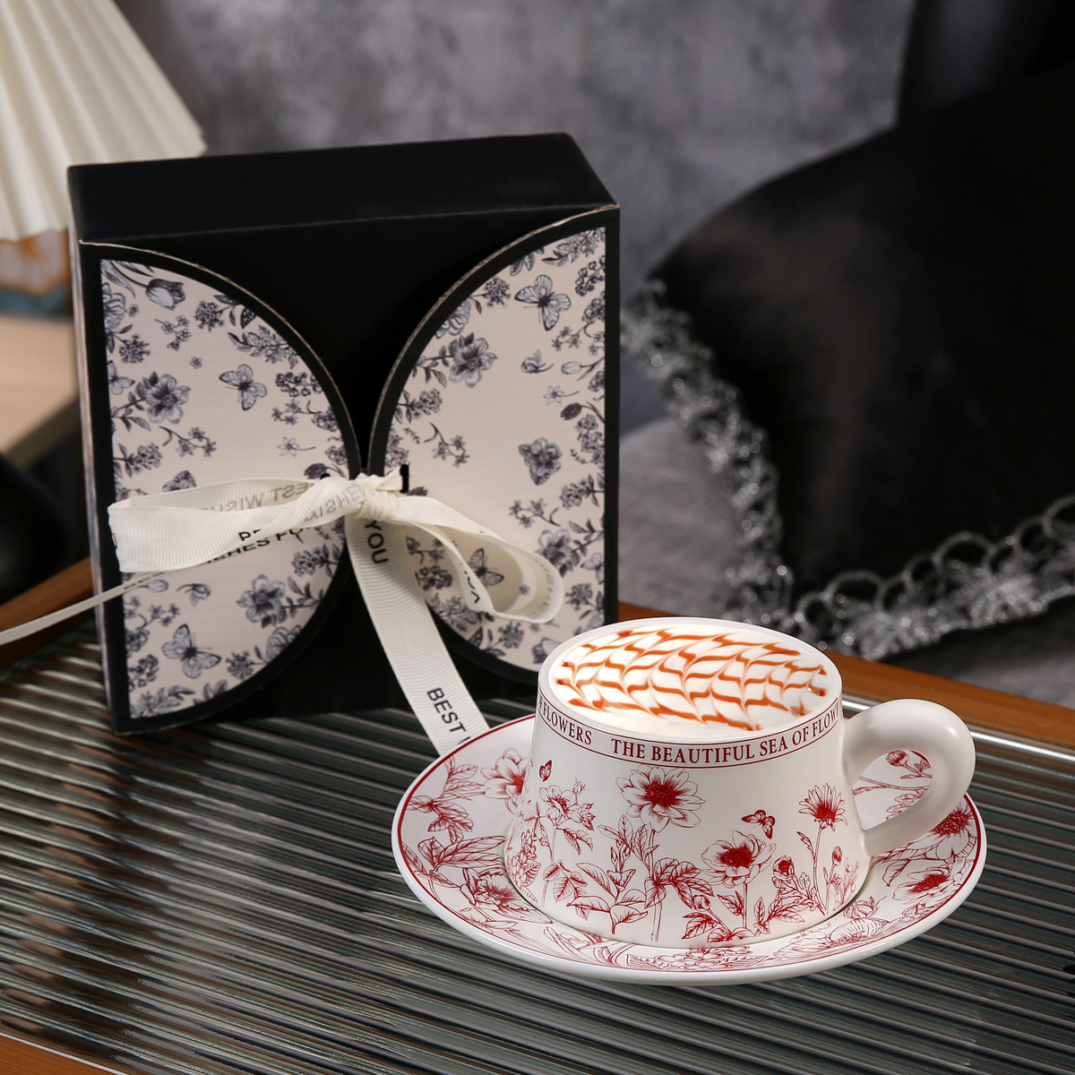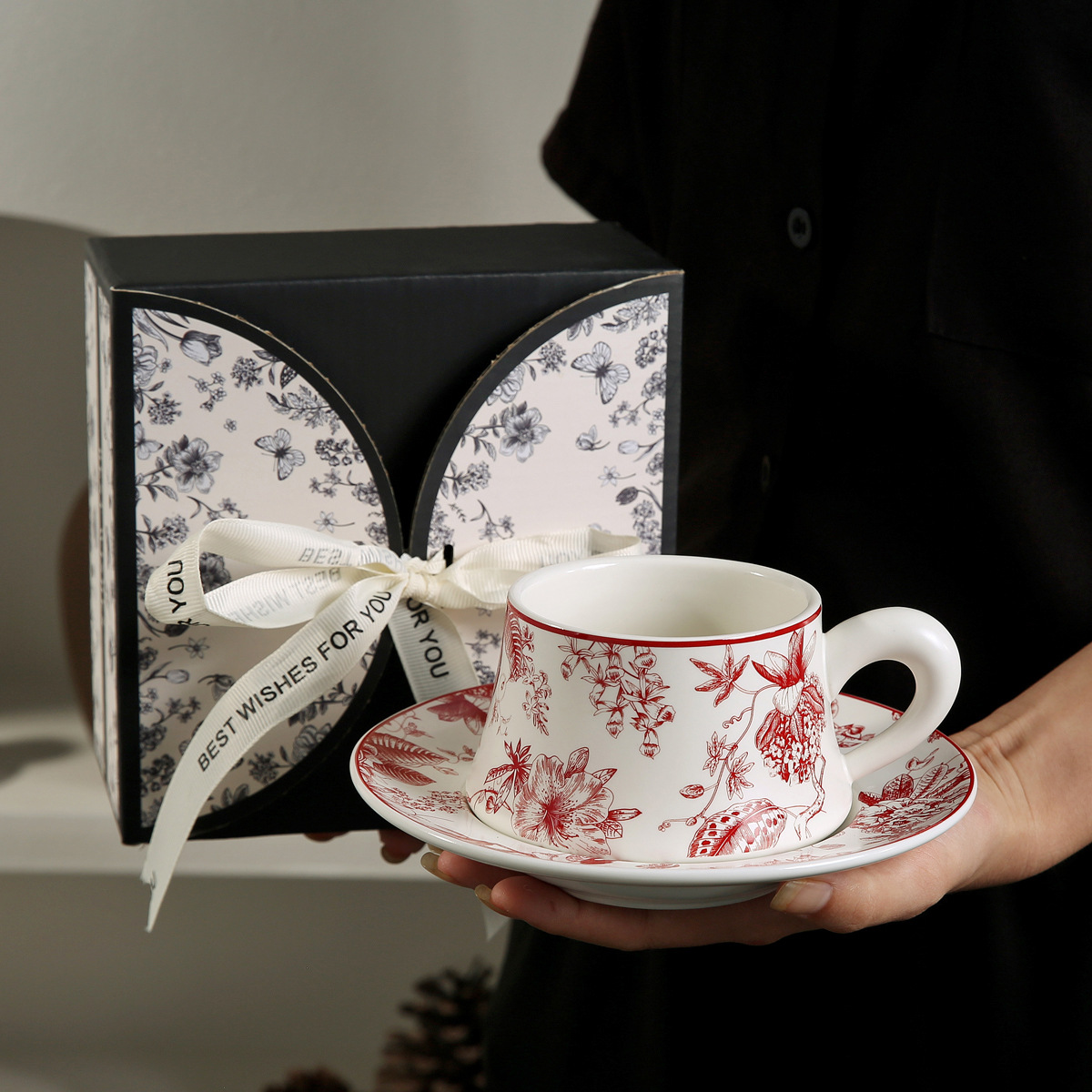 ins风设计感陶瓷咖啡杯花卉图案釉下彩复古拿铁杯子精致下午茶具
