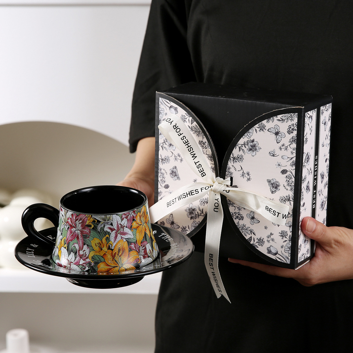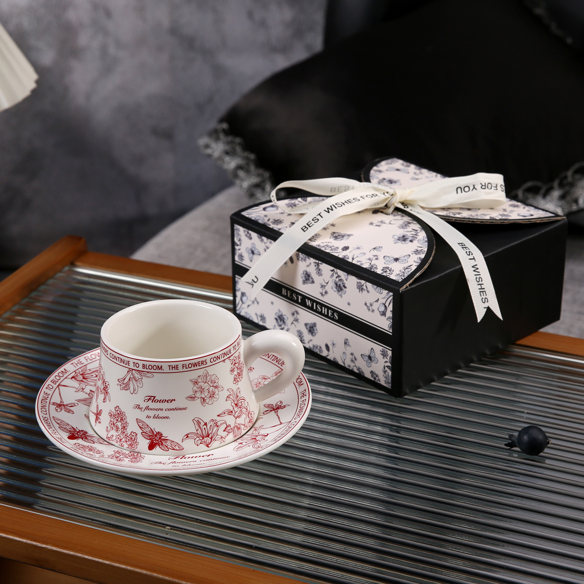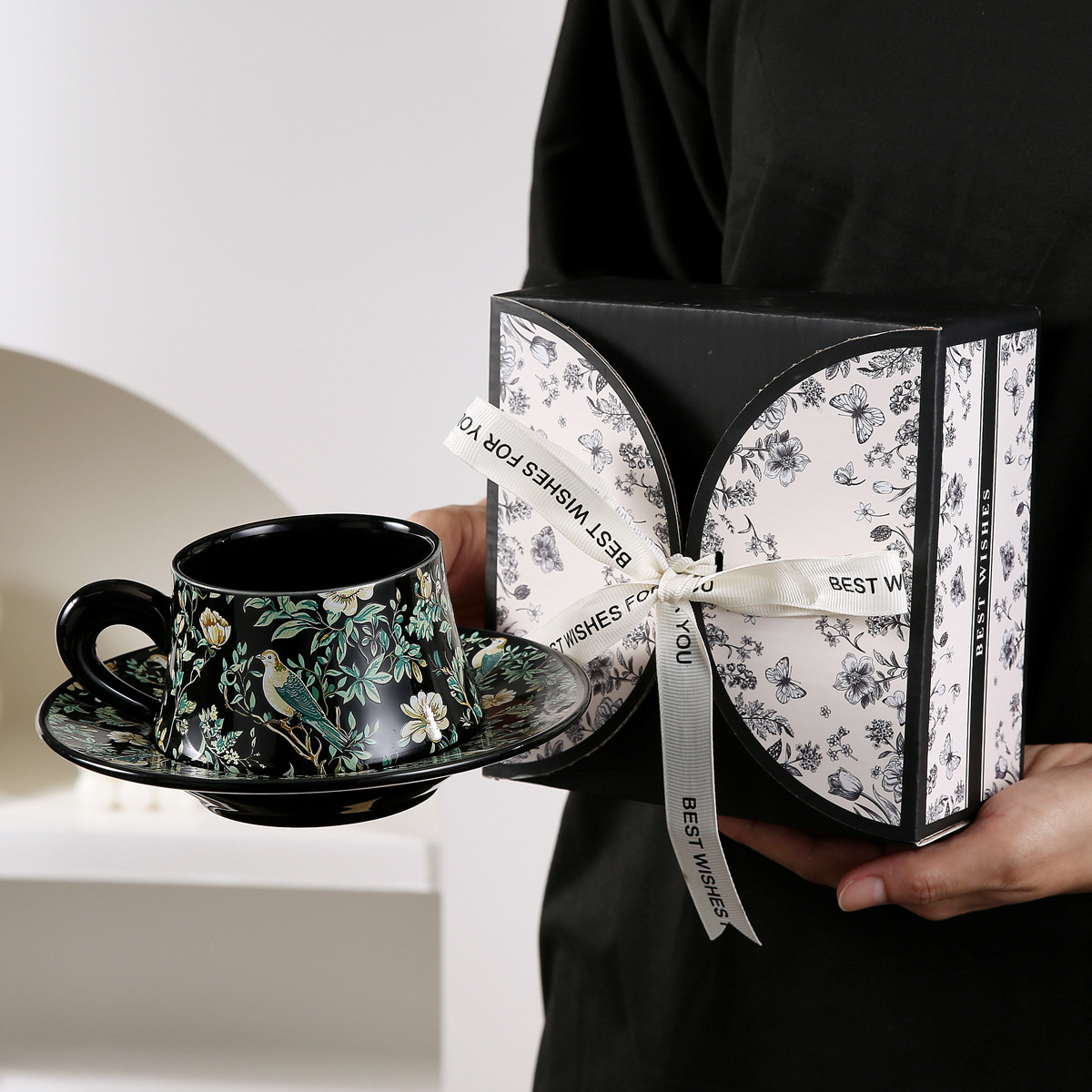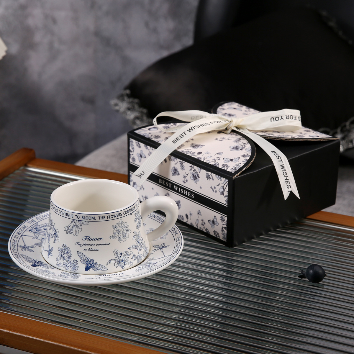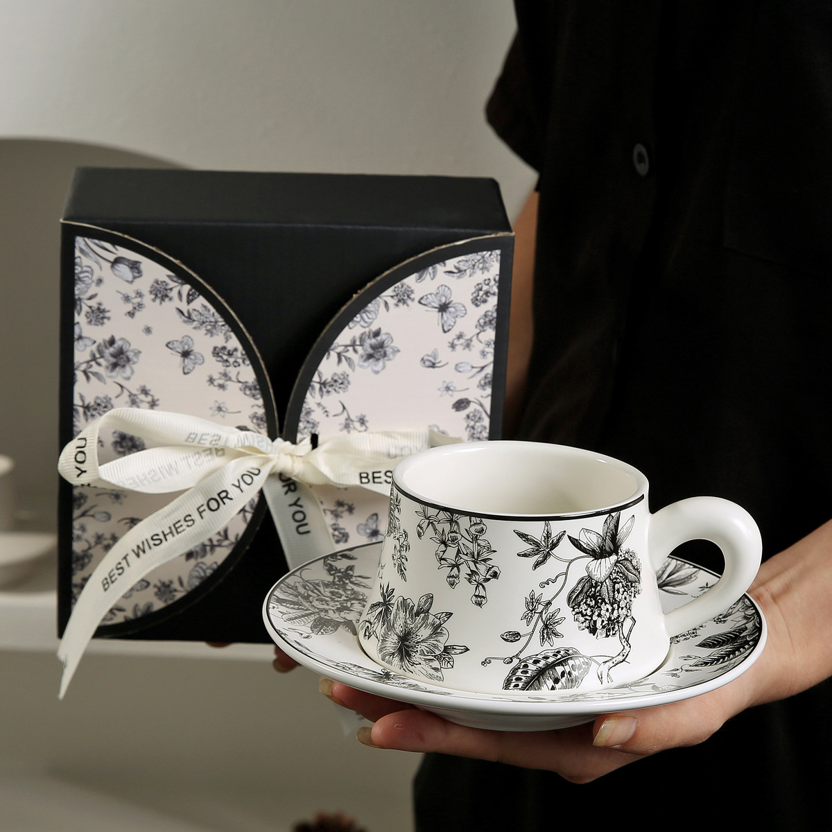 ins风设计感陶瓷咖啡杯花卉图案釉下彩复古拿铁杯子精致下午茶具