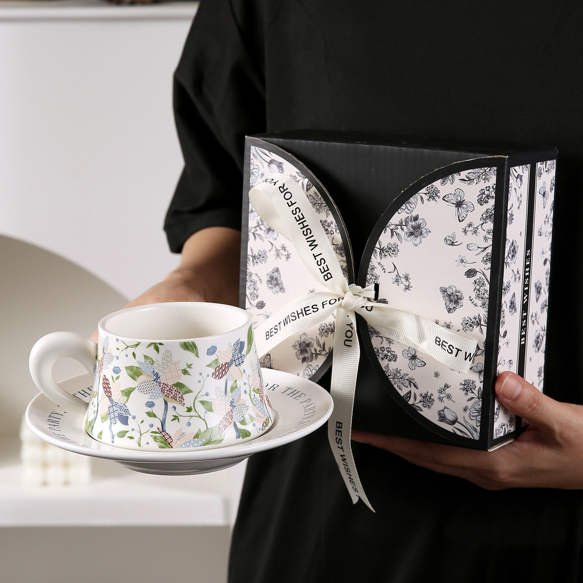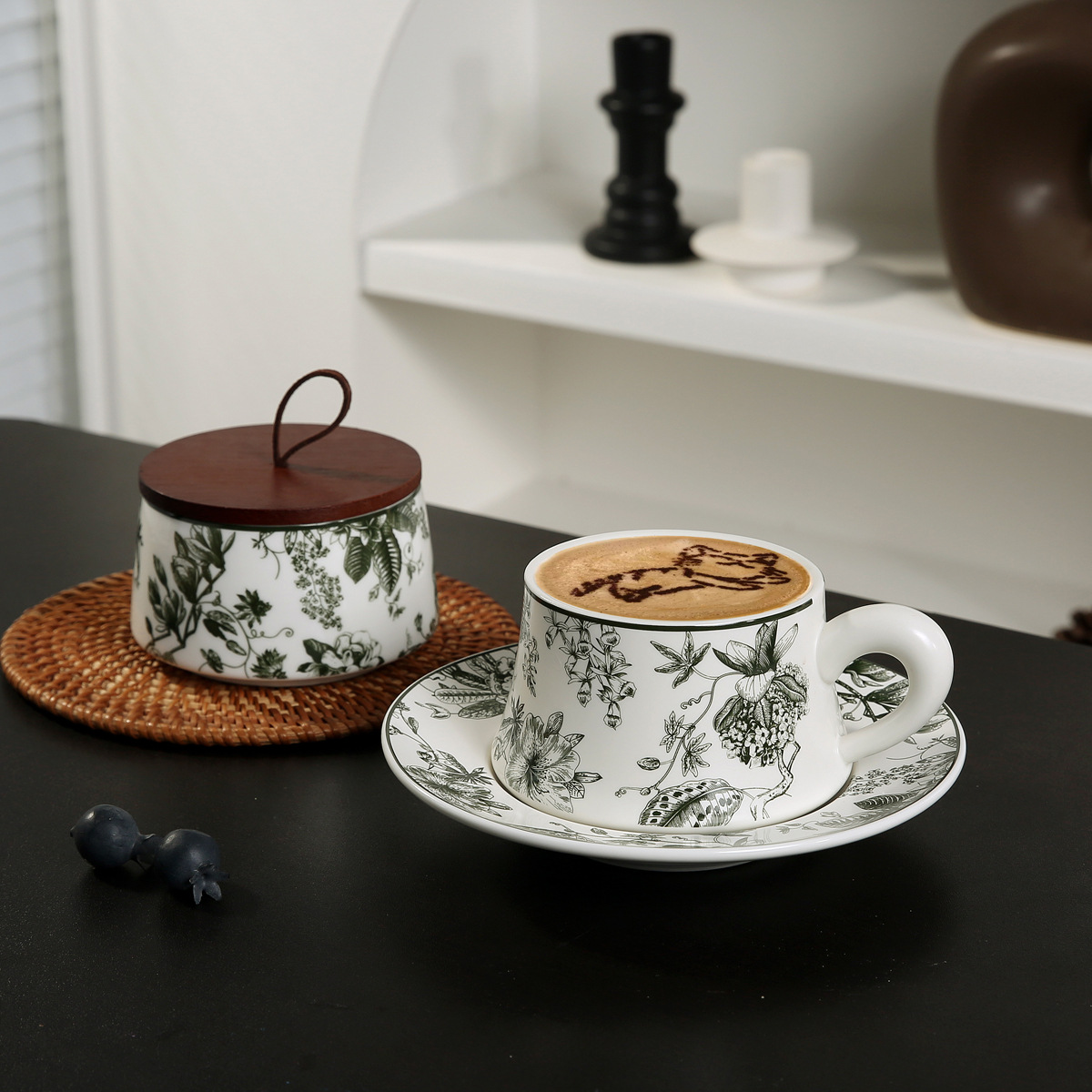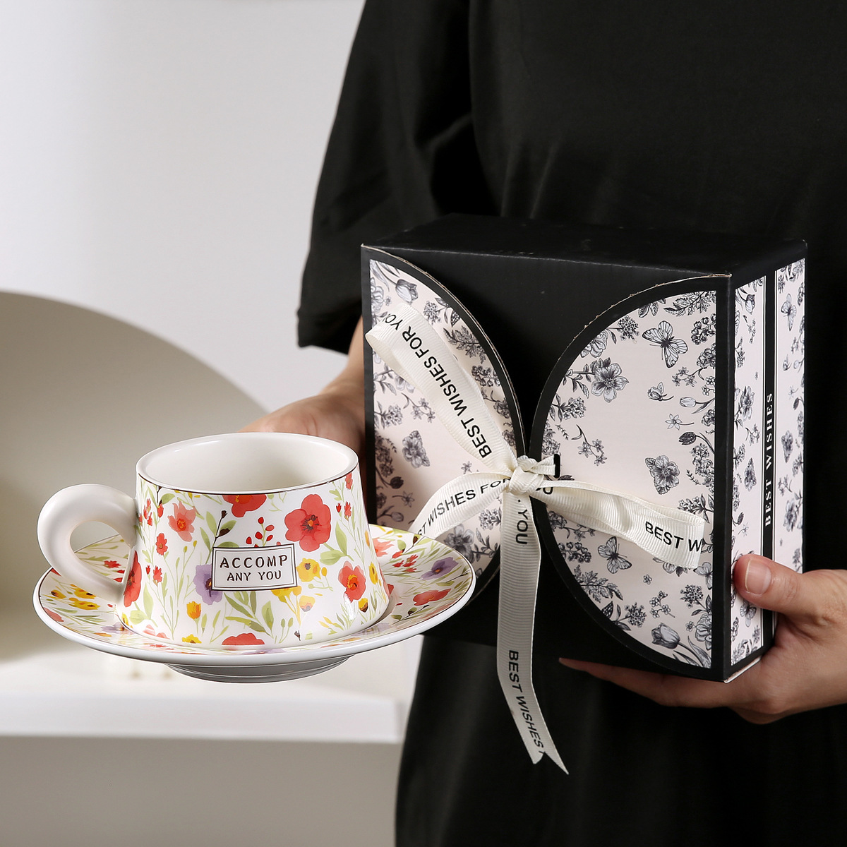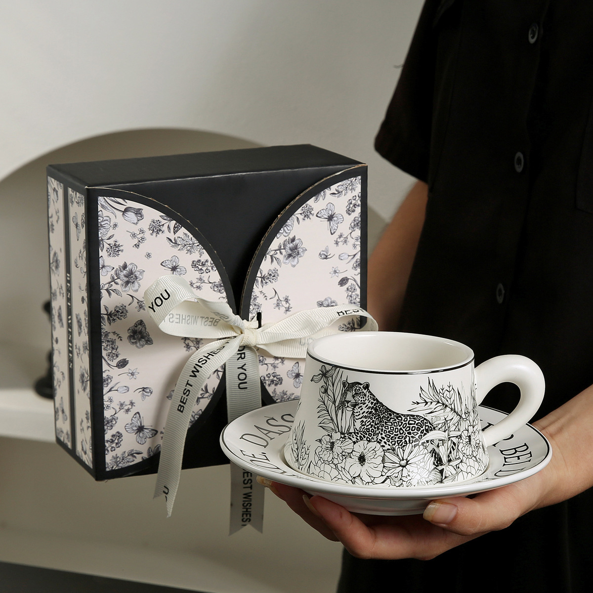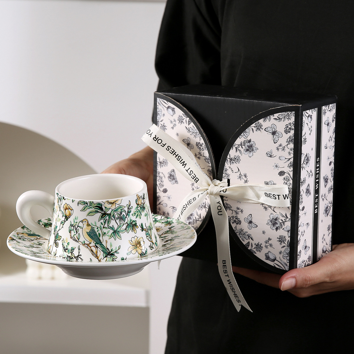 ins风设计感陶瓷咖啡杯花卉图案釉下彩复古拿铁杯子精致下午茶具
