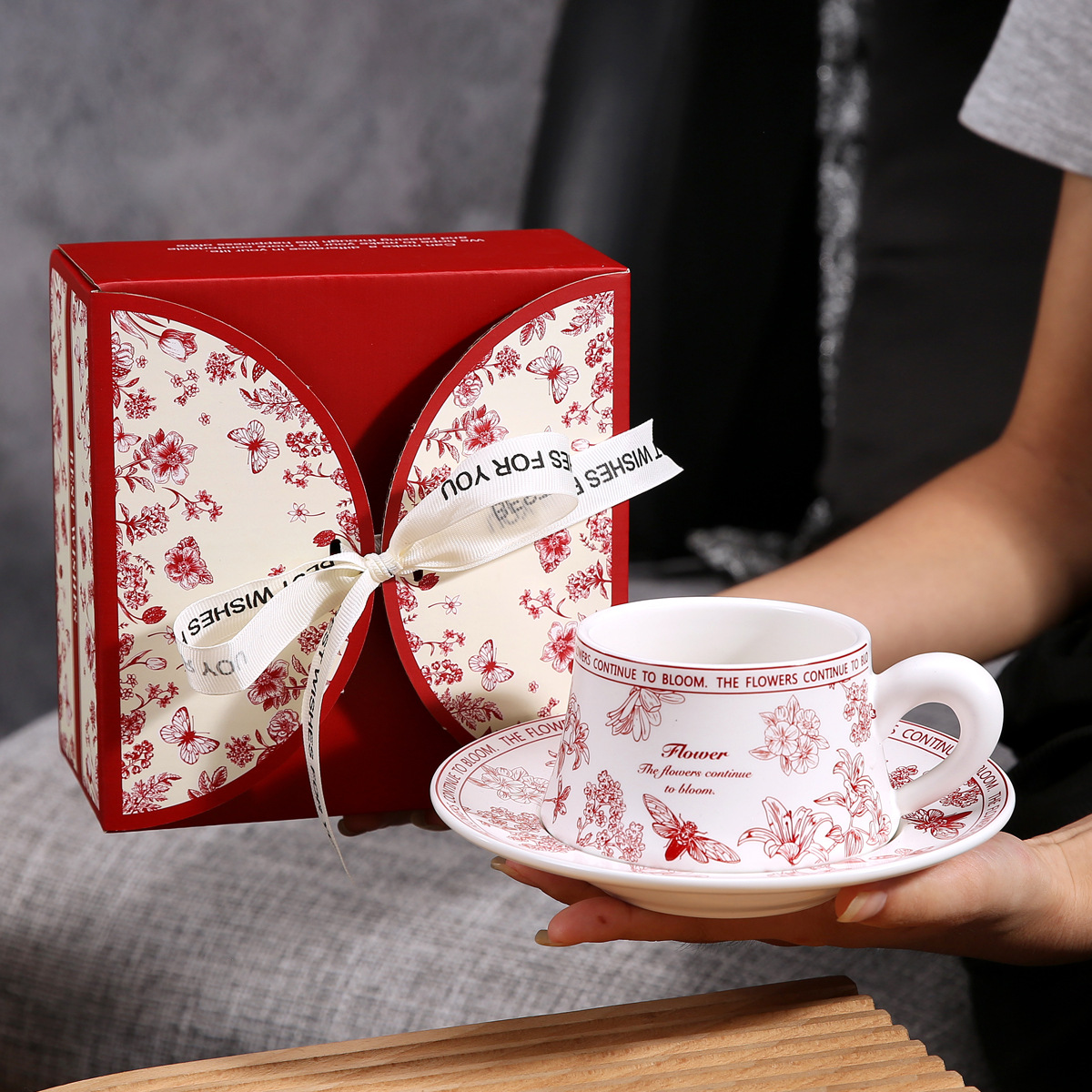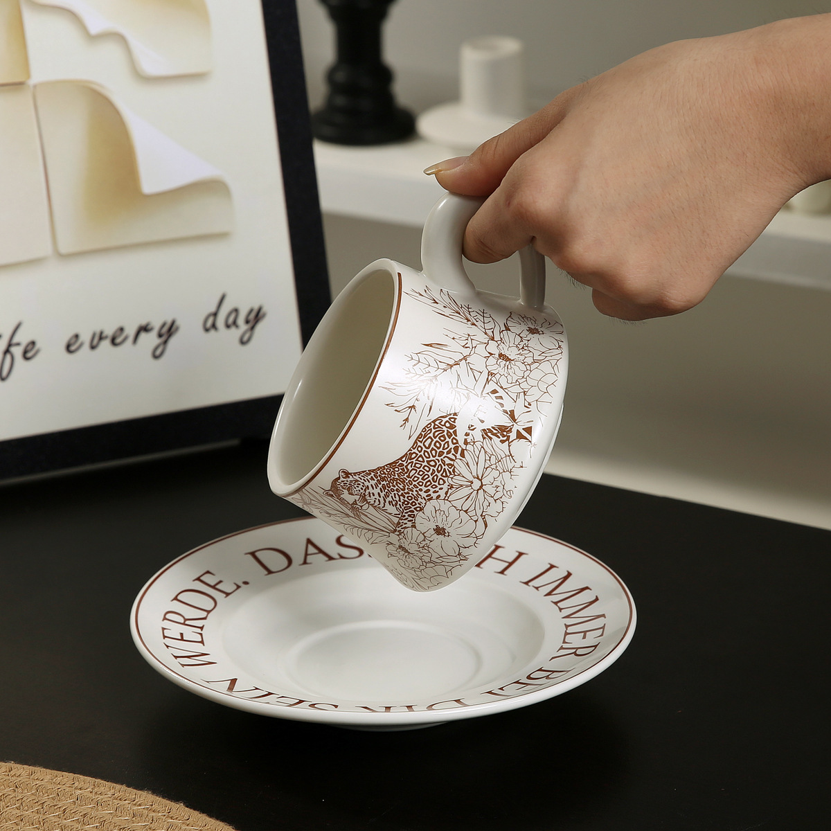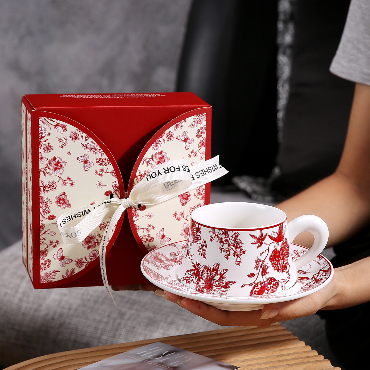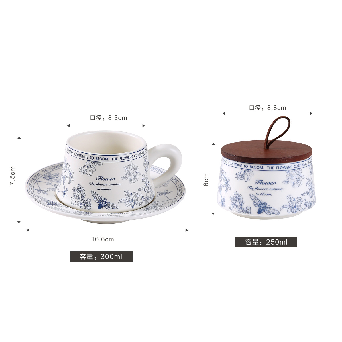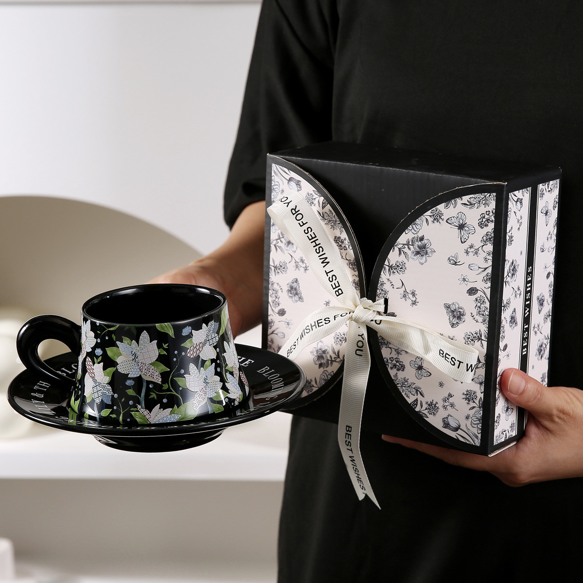ins风设计感陶瓷咖啡杯花卉图案釉下彩复古拿铁杯子精致下午茶具
