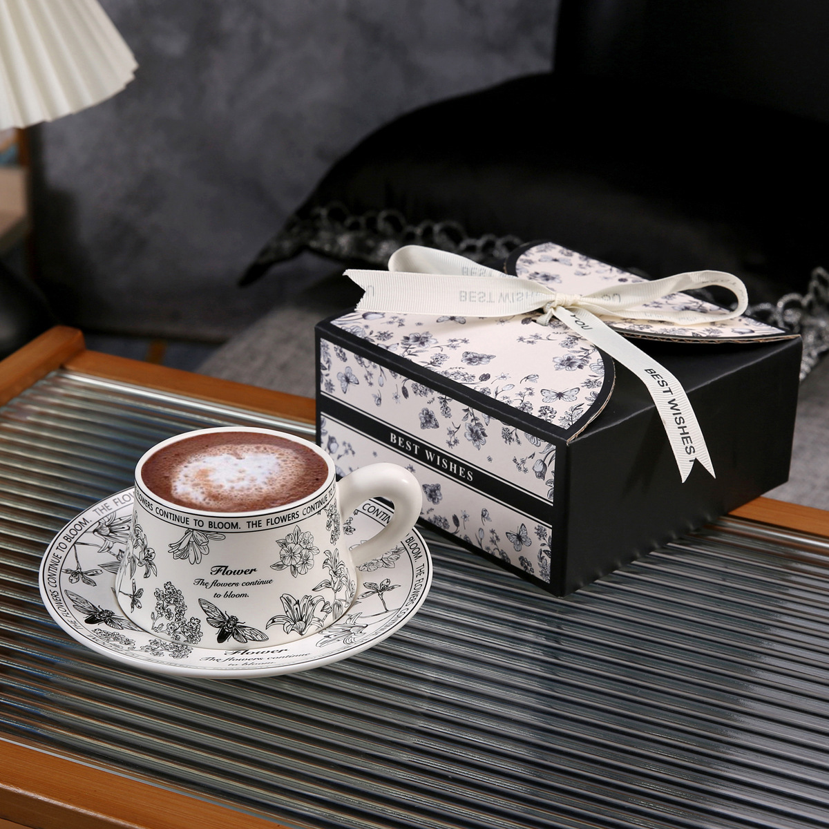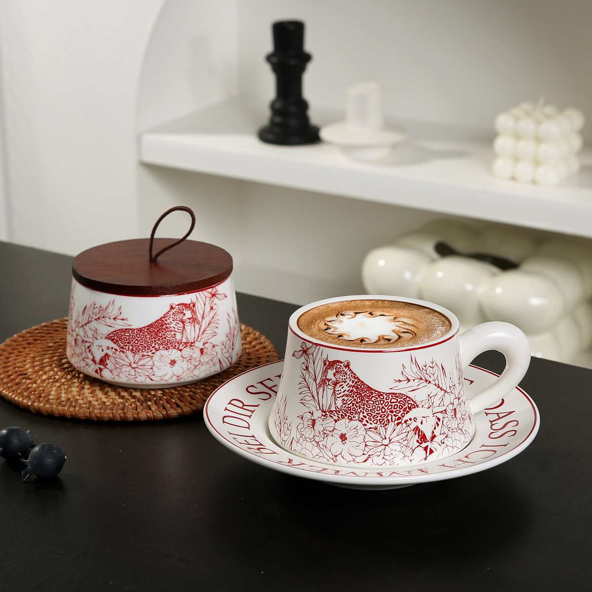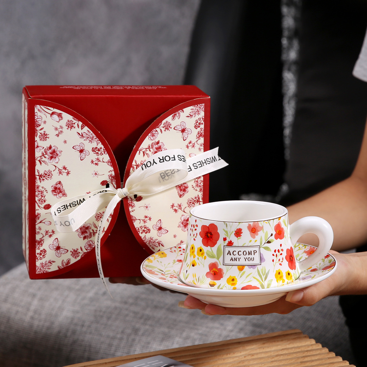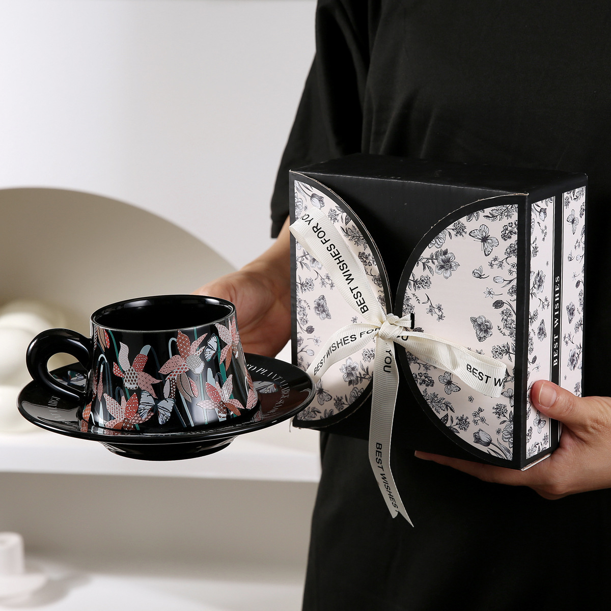 ins风设计感陶瓷咖啡杯花卉图案釉下彩复古拿铁杯子精致下午茶具