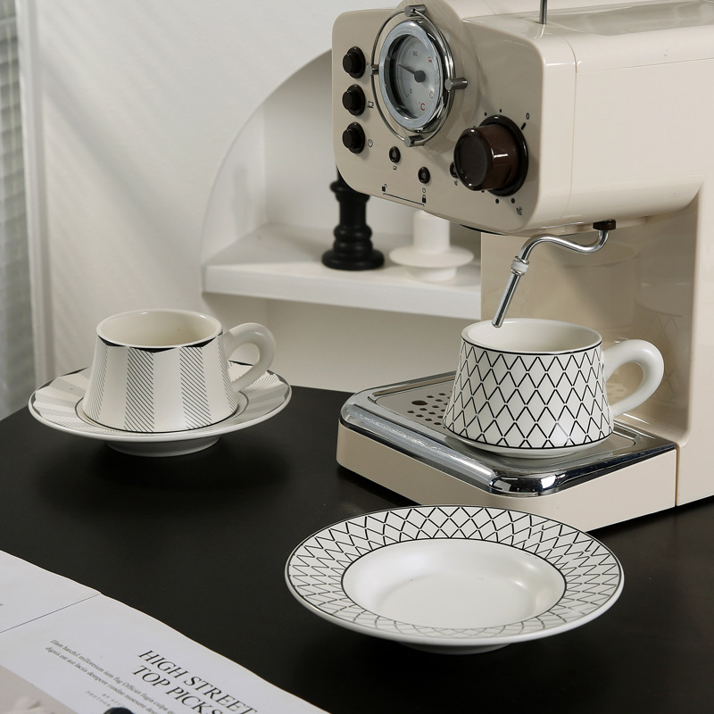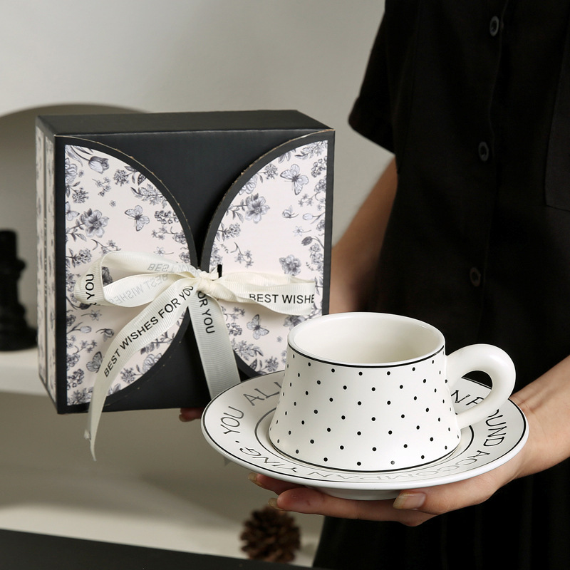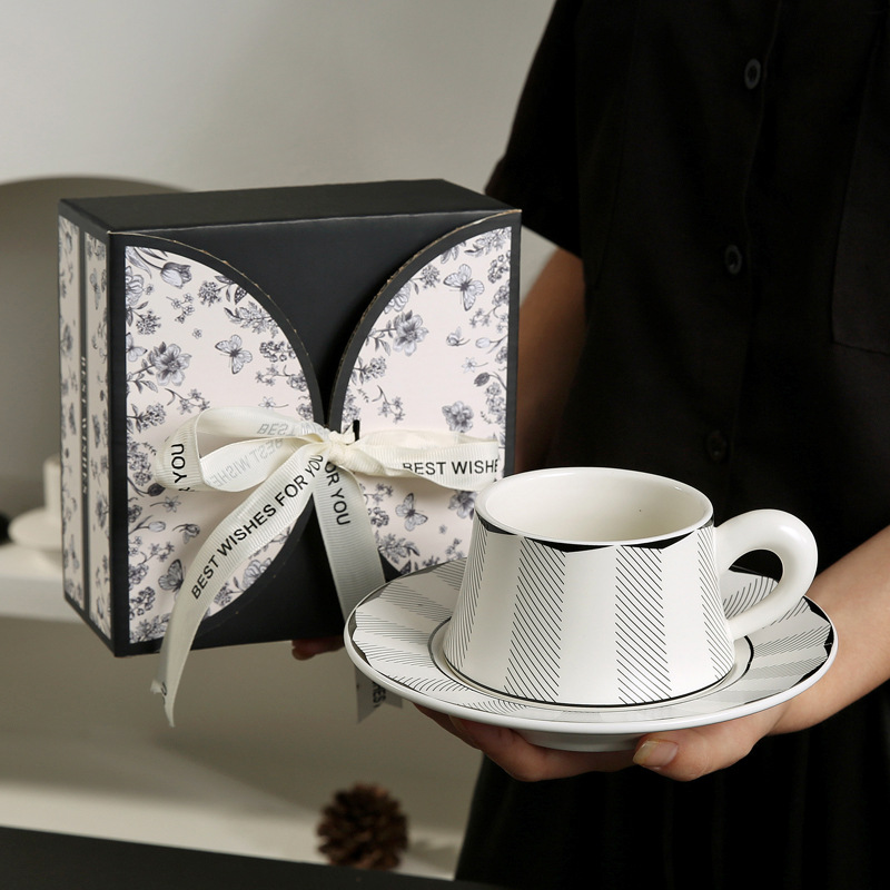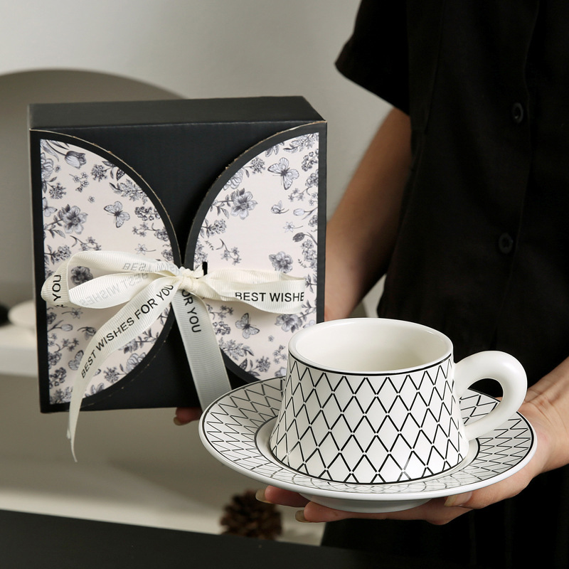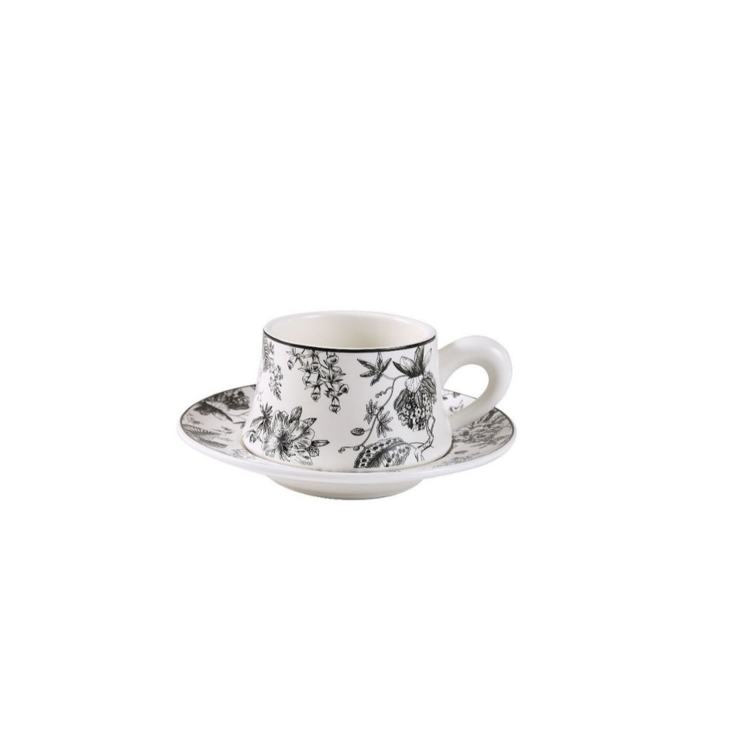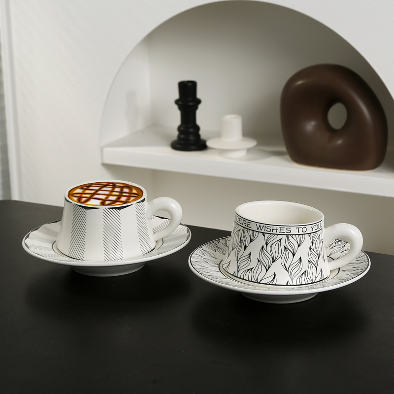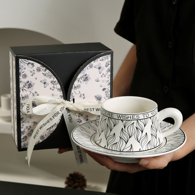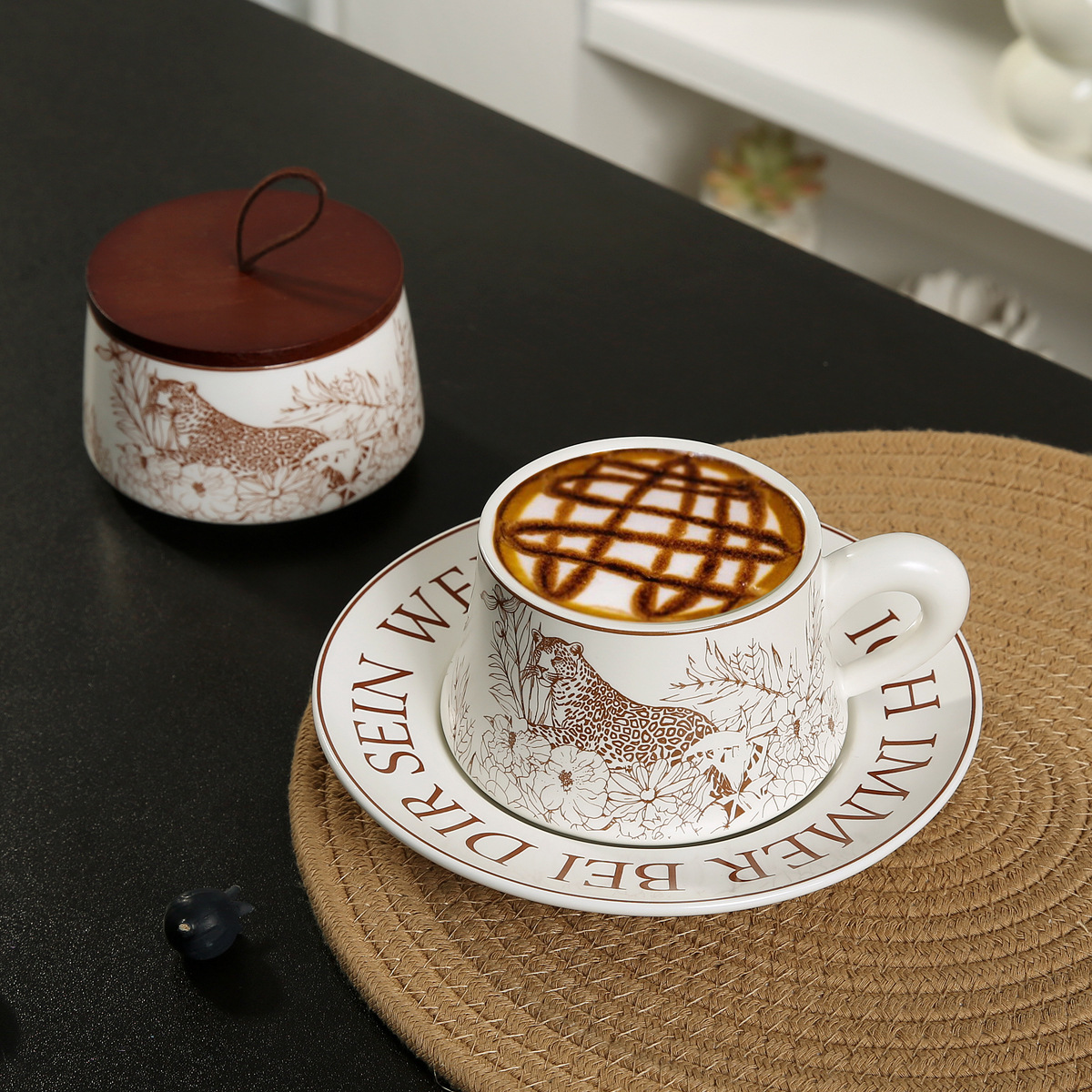 ins风设计感陶瓷咖啡杯花卉图案釉下彩复古拿铁杯子精致下午茶具
