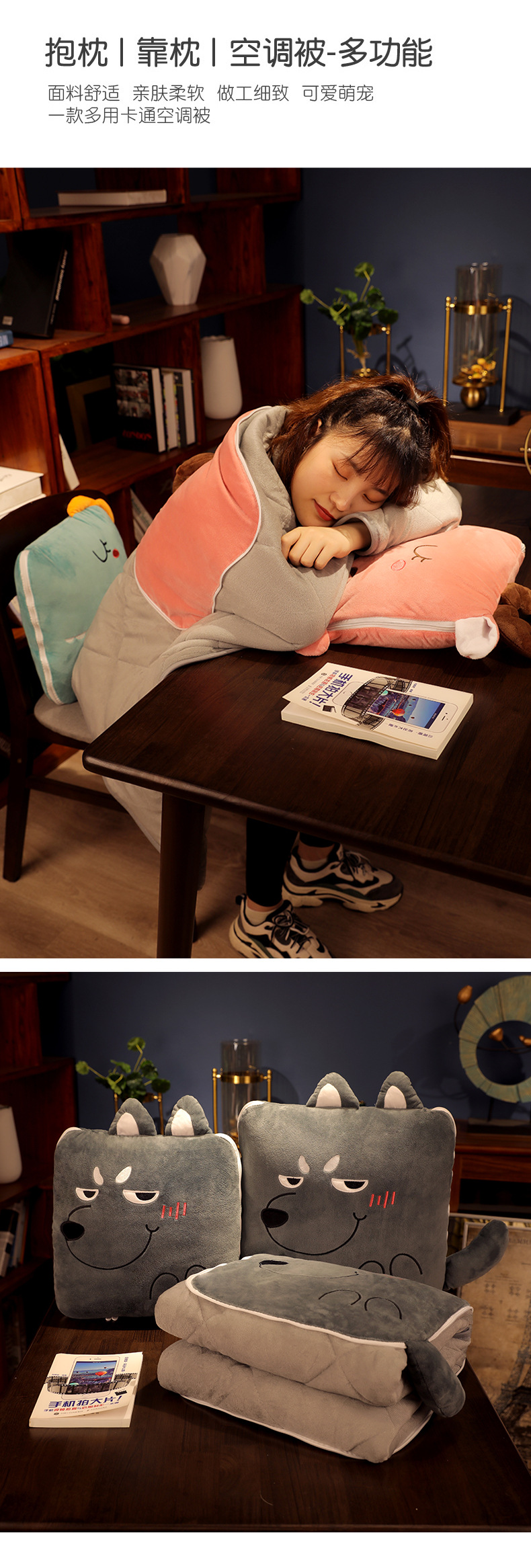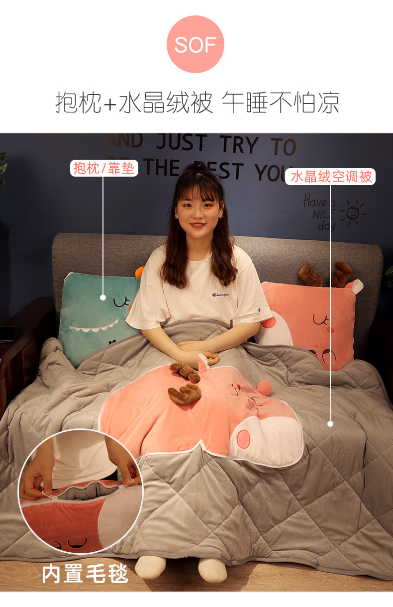 抱枕被子两用办公室午睡小枕头车载毯子汽车内车用折叠夏季可爱