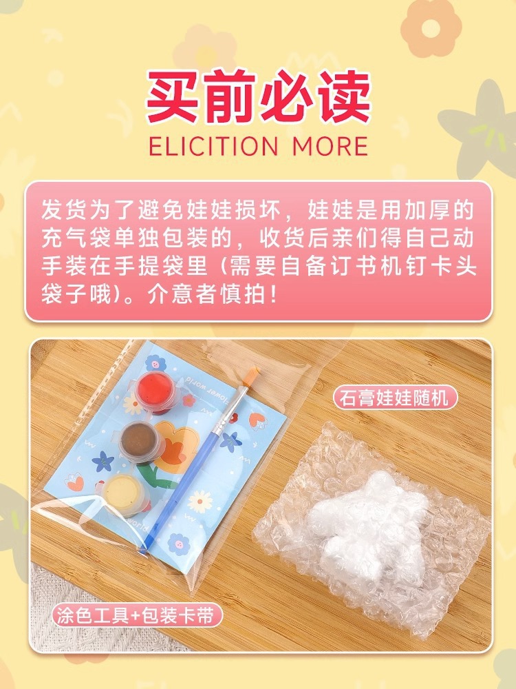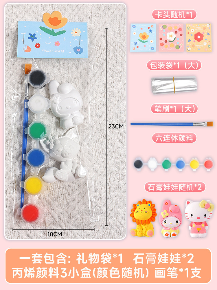 | 10盒 (一盒含随机石膏娃娃2个+三色颜料1个+画笔1支 | USD $2.46 | 199744 set available |
