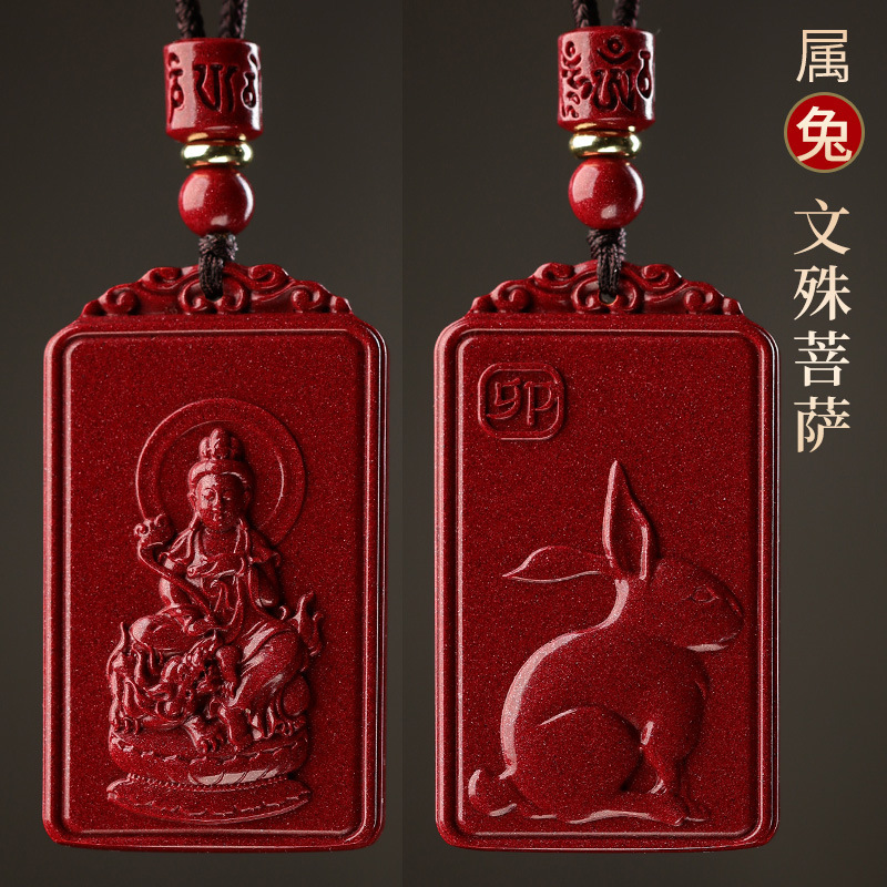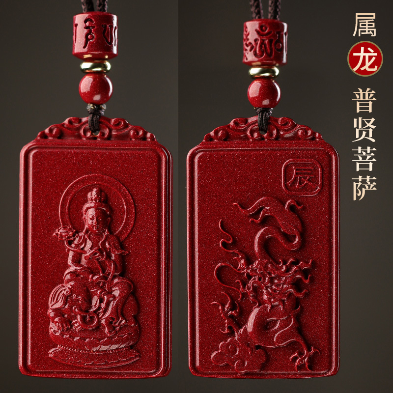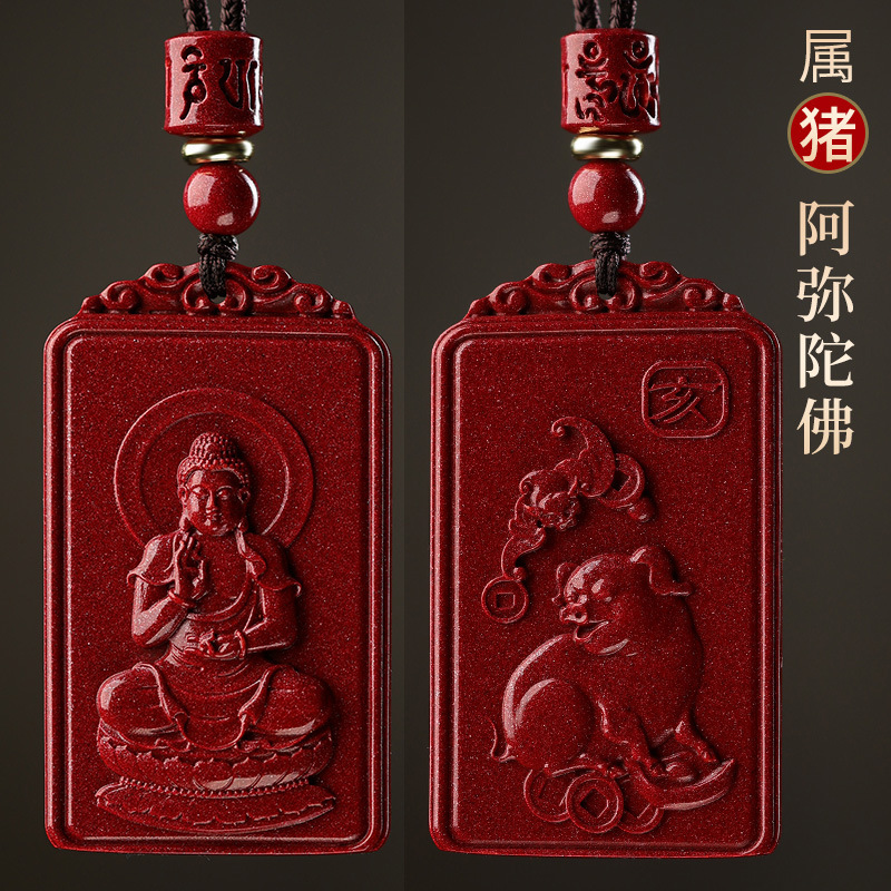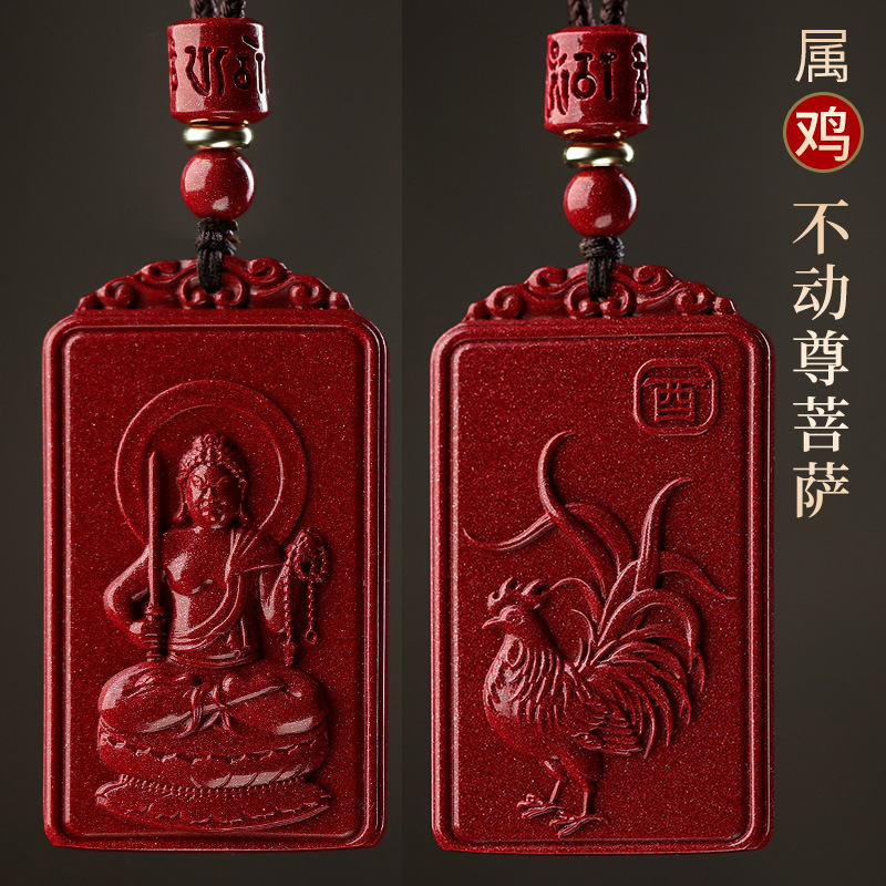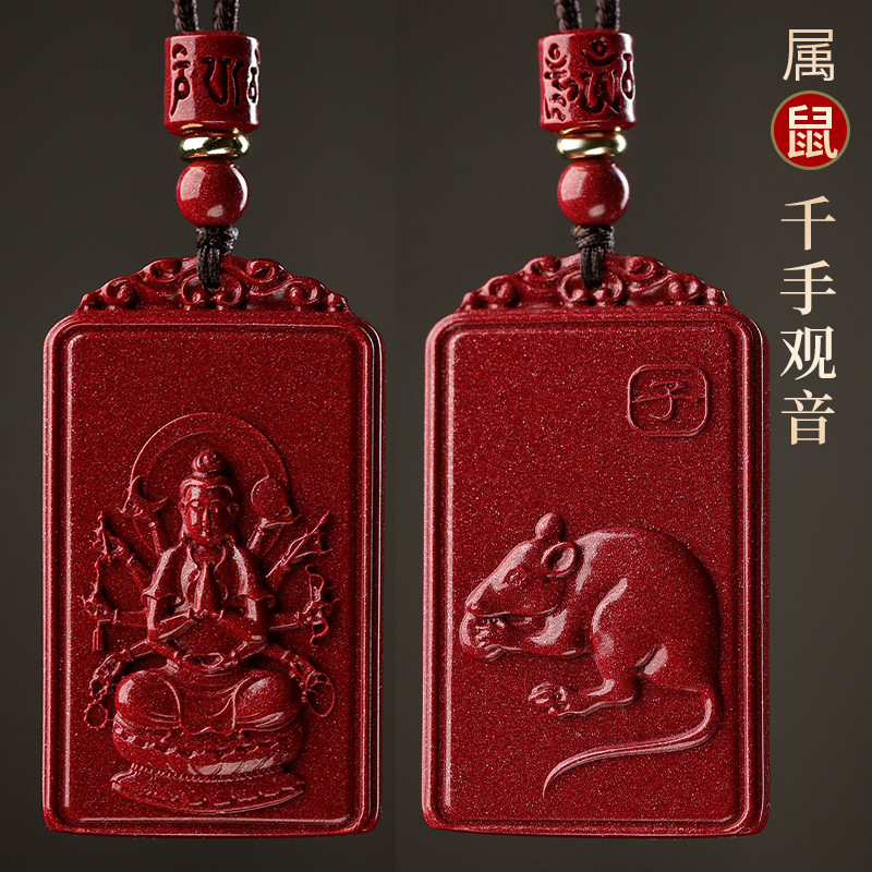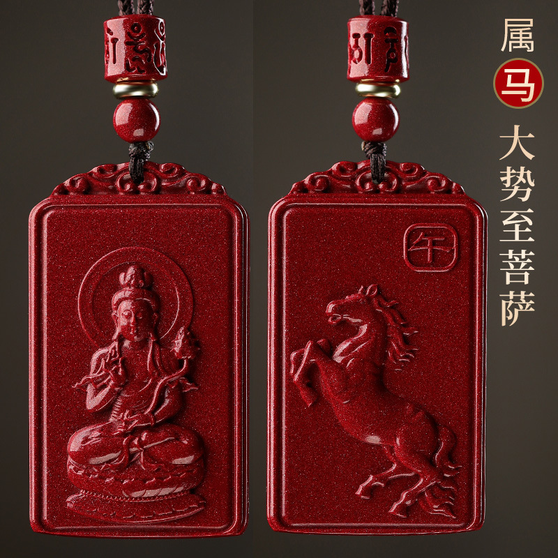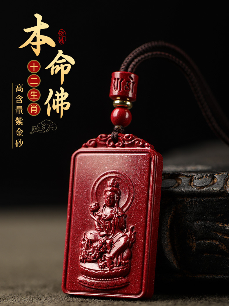 批发真朱砂平安无事牌本命佛十二生肖吊坠紫金砂守护神项链挂件