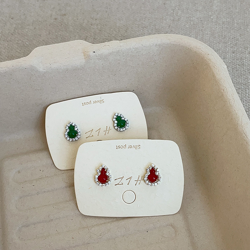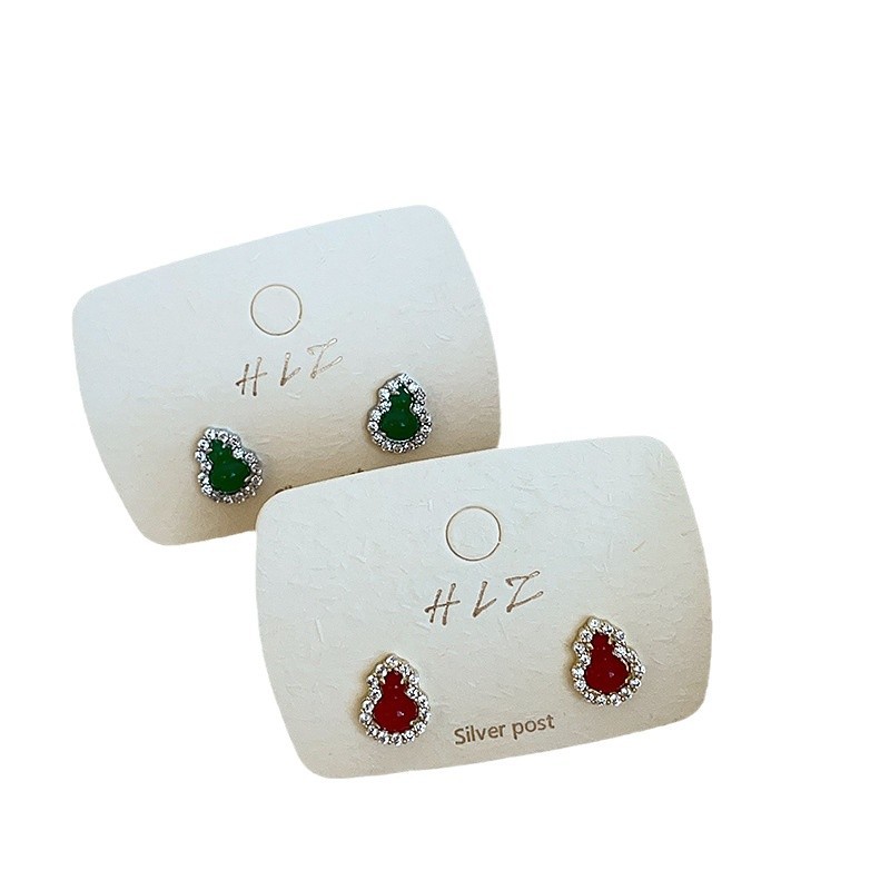 新中式迷你锆石葫芦耳钉女精致独特个性时尚潮流通勤百搭耳环耳饰