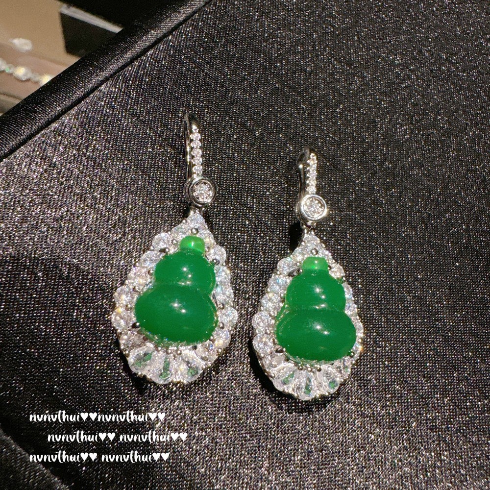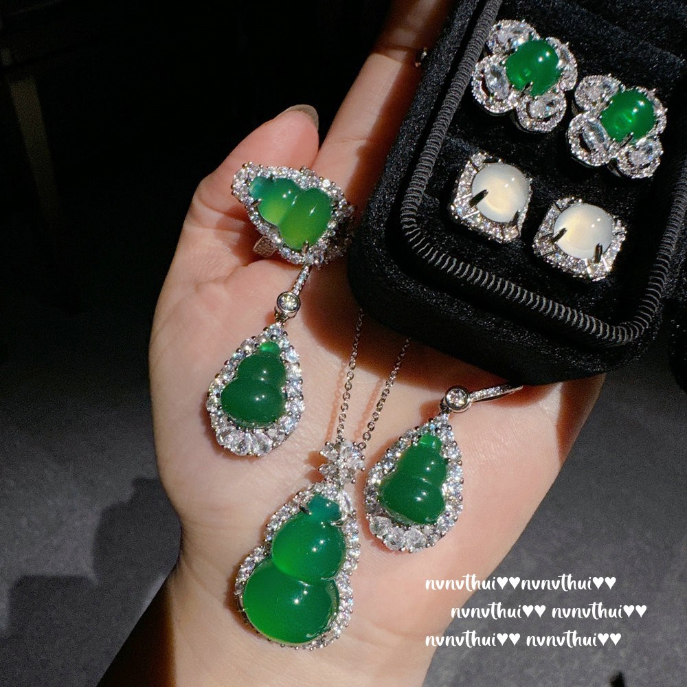 巴西绿玉髓葫芦福禄耳环 新中式 幂幂绿玉髓葫芦戒指 项链套装