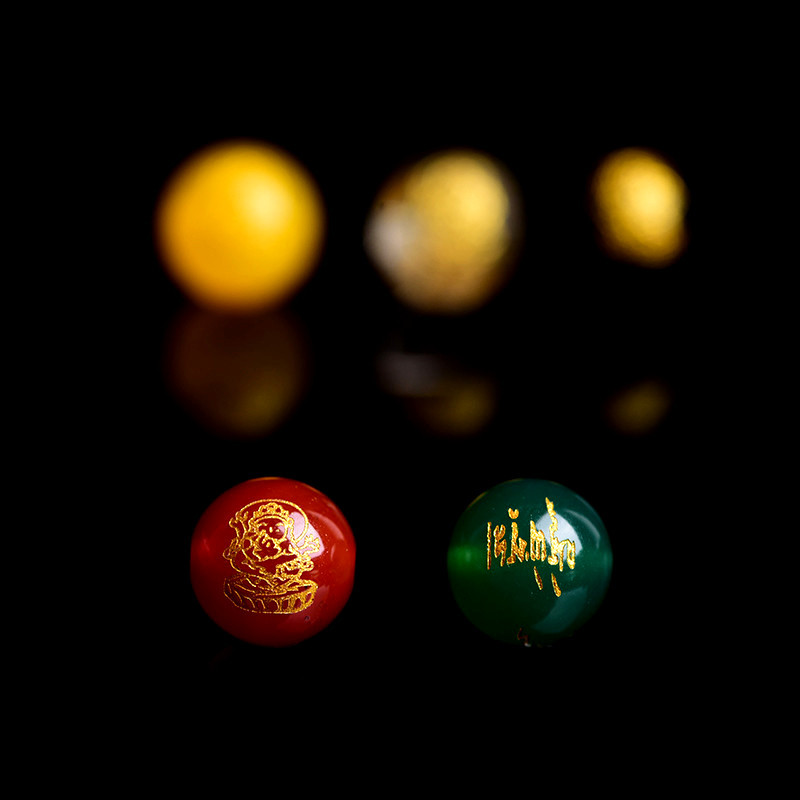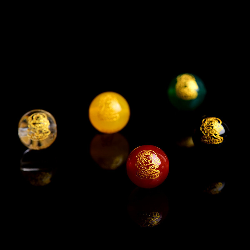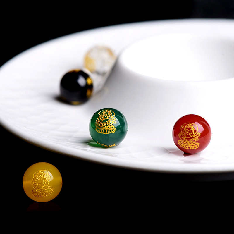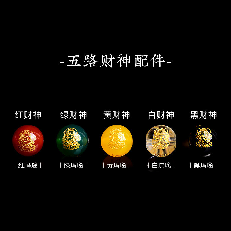 久雅水晶 天然玛瑙五路财神烫金珠子黄红白黑绿圆珠财神散珠批发