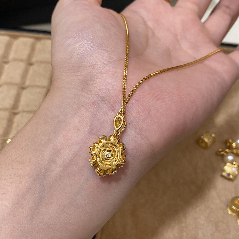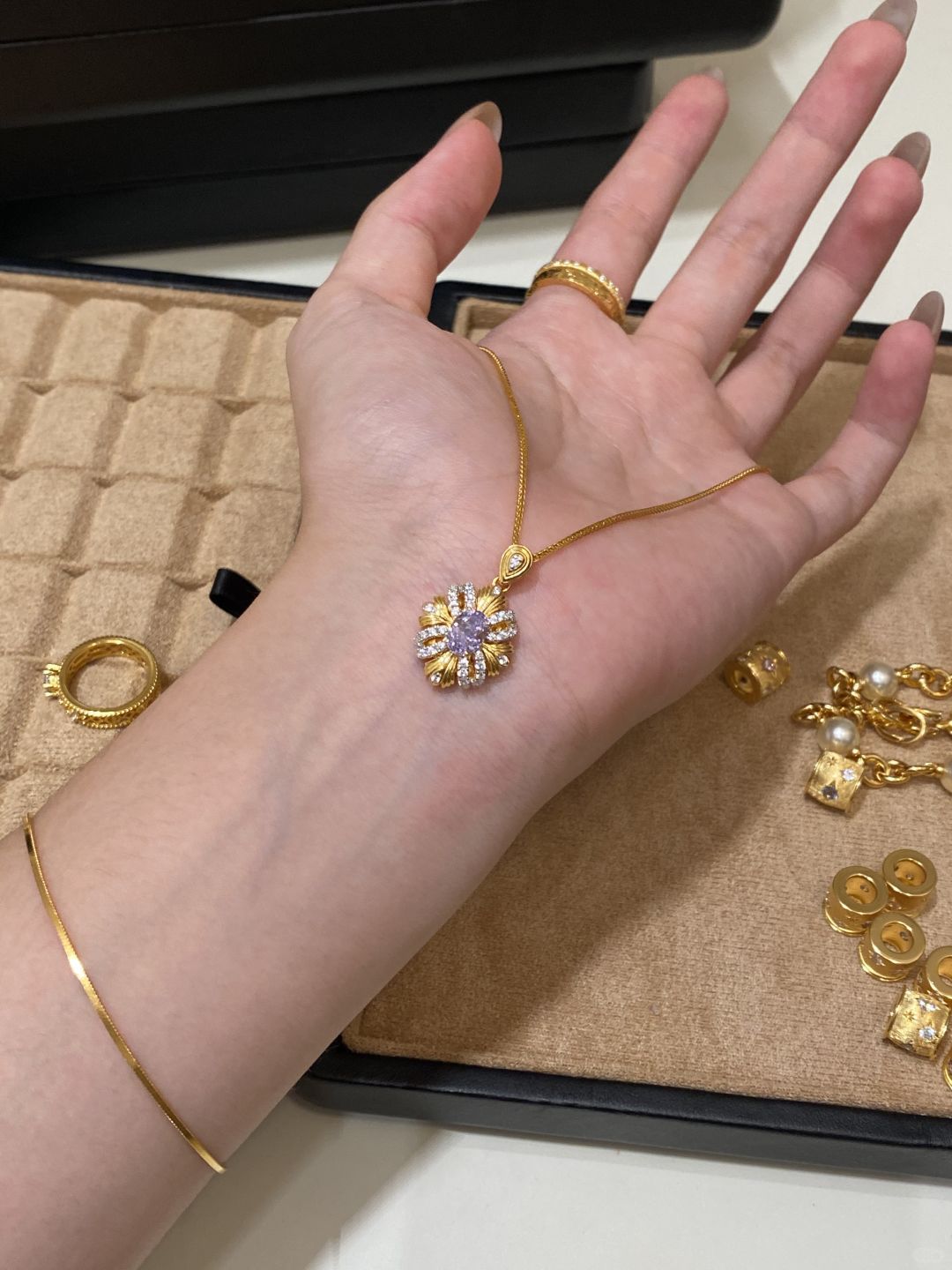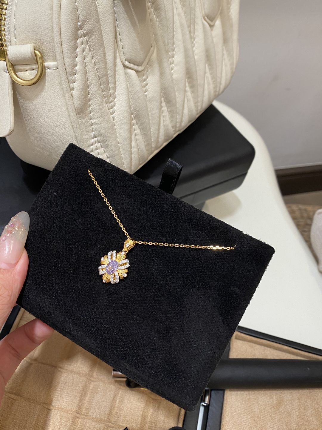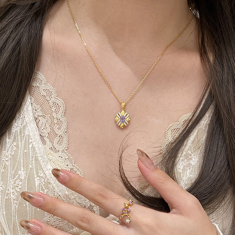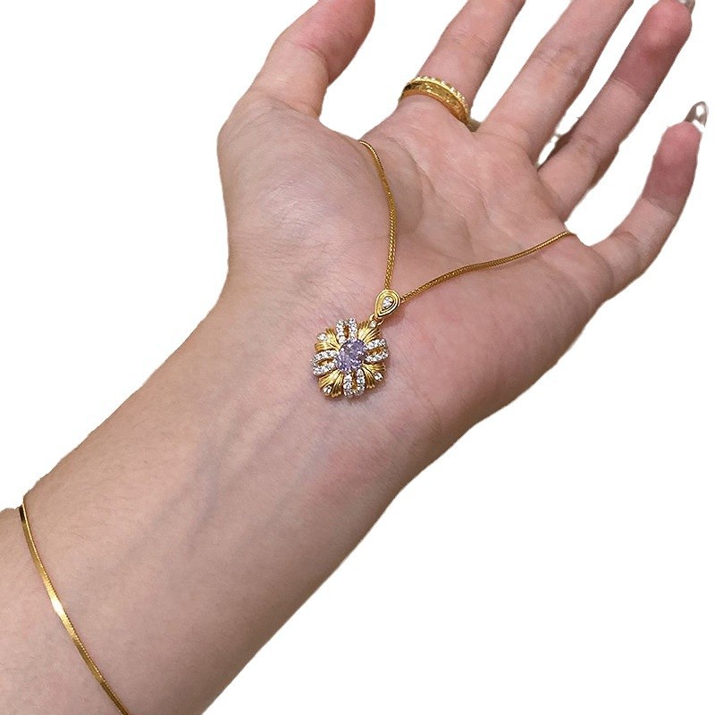 小红书爆款紫荆花项链爆闪满钻太阳花吊坠时尚轻奢精致金色锁骨链