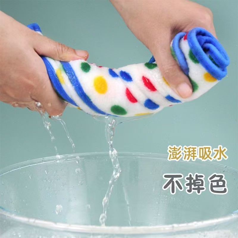 爆款圆点珊瑚绒抹布厨房擦桌子加厚吸水洗碗方巾家用带挂绳擦手巾