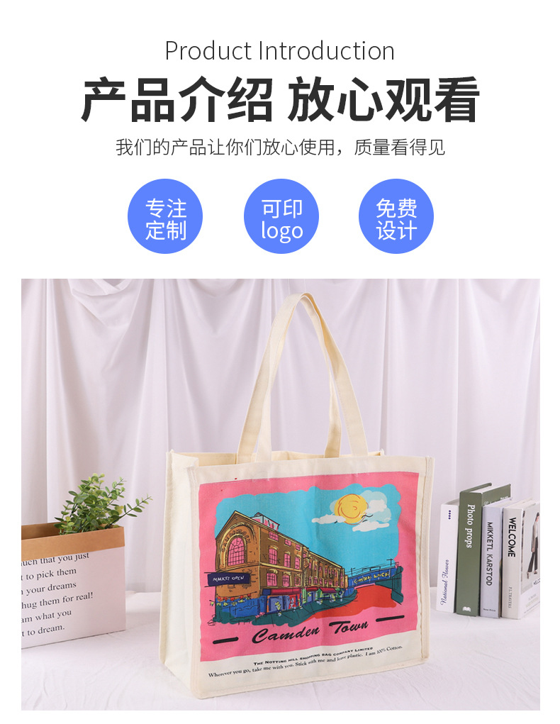 卡通帆布袋外贸单肩手提空白棉布袋 印刷logo现货购物广告帆布包