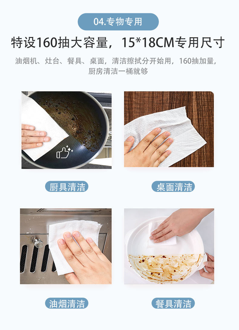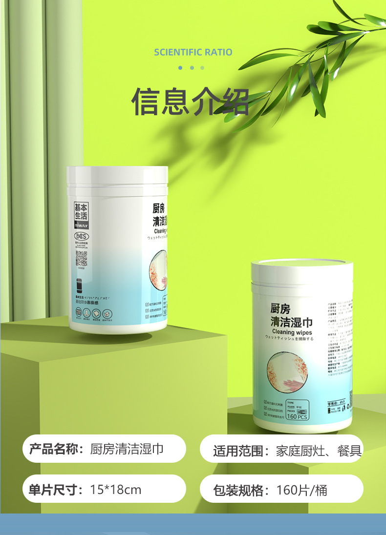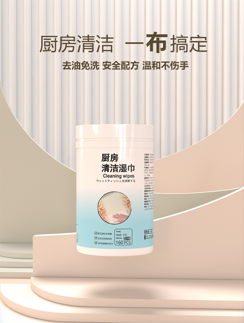 【源头厂家现货】基本生活160抽厨房清洁湿巾桶装加厚