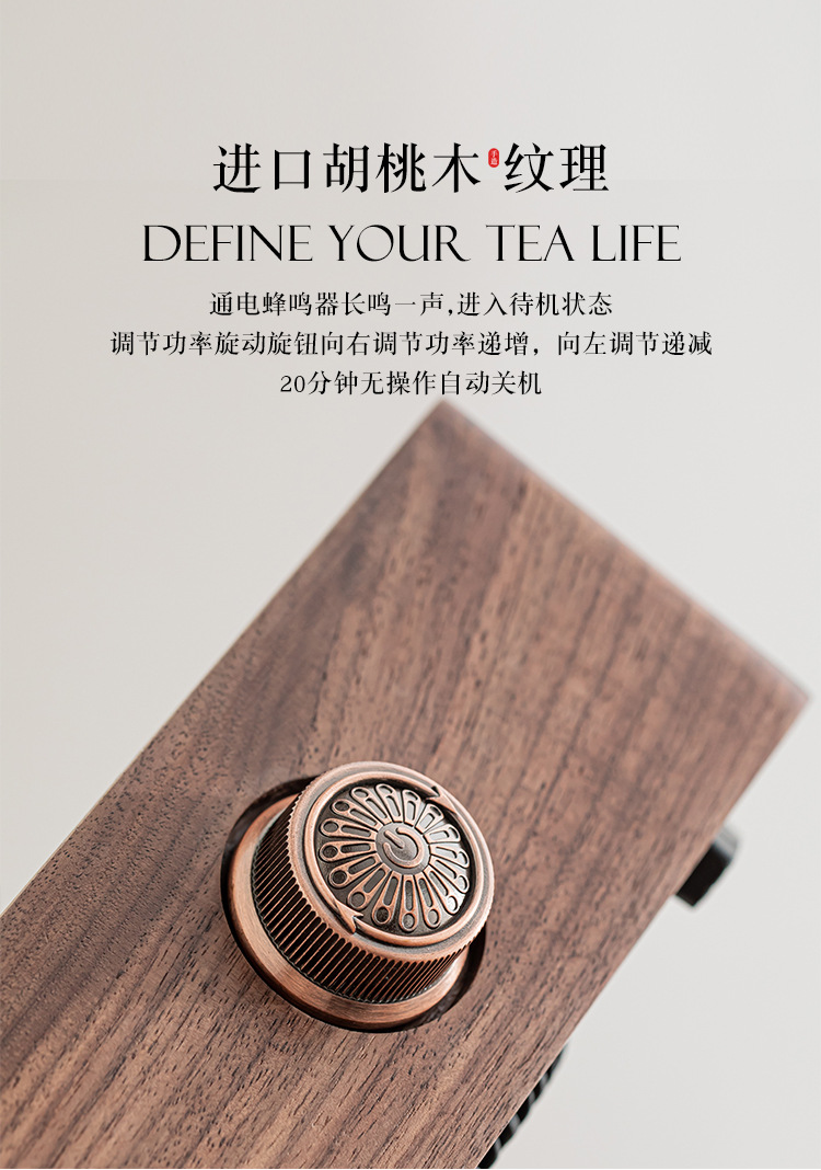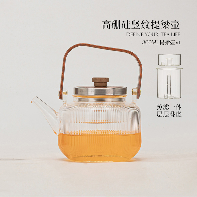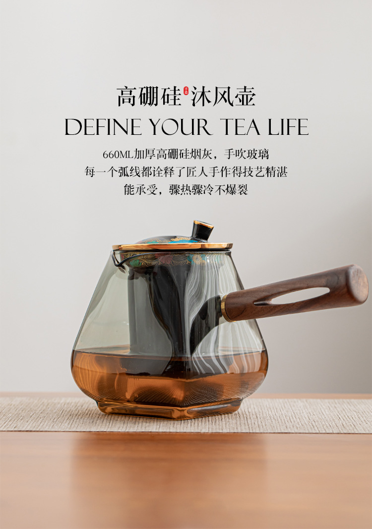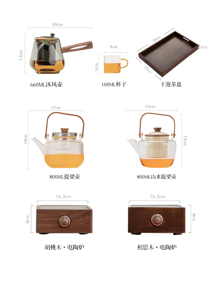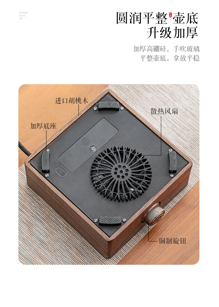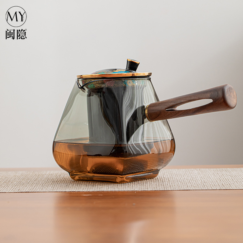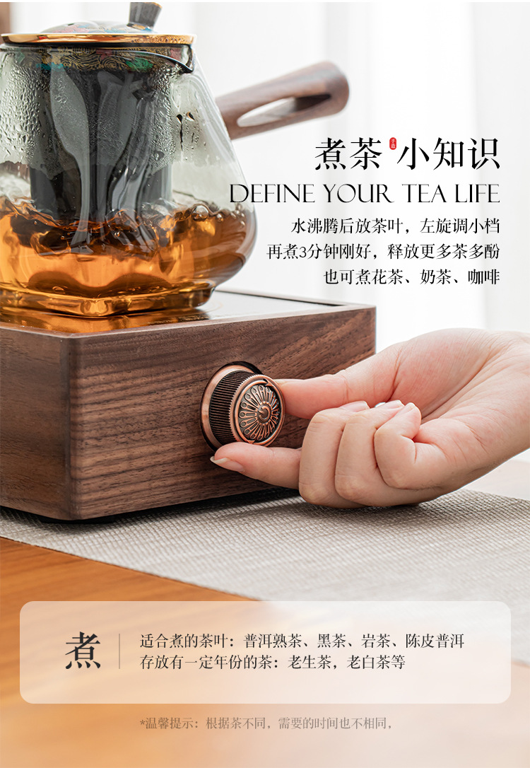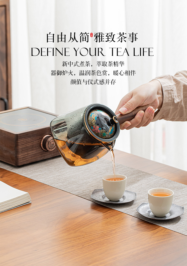 胡桃木电陶炉围炉煮茶加厚玻璃耐高温煮茶壶家用室内煮茶器提梁壶