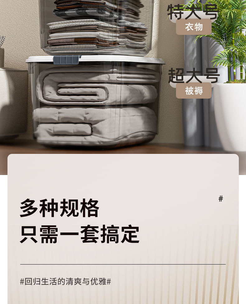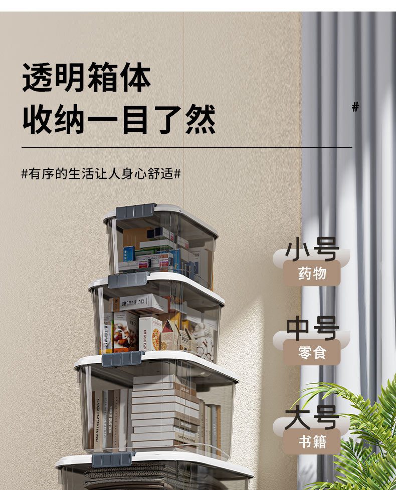 透明收纳箱整理箱塑料箱子有盖手提储物箱大小号衣物收纳盒整理盒