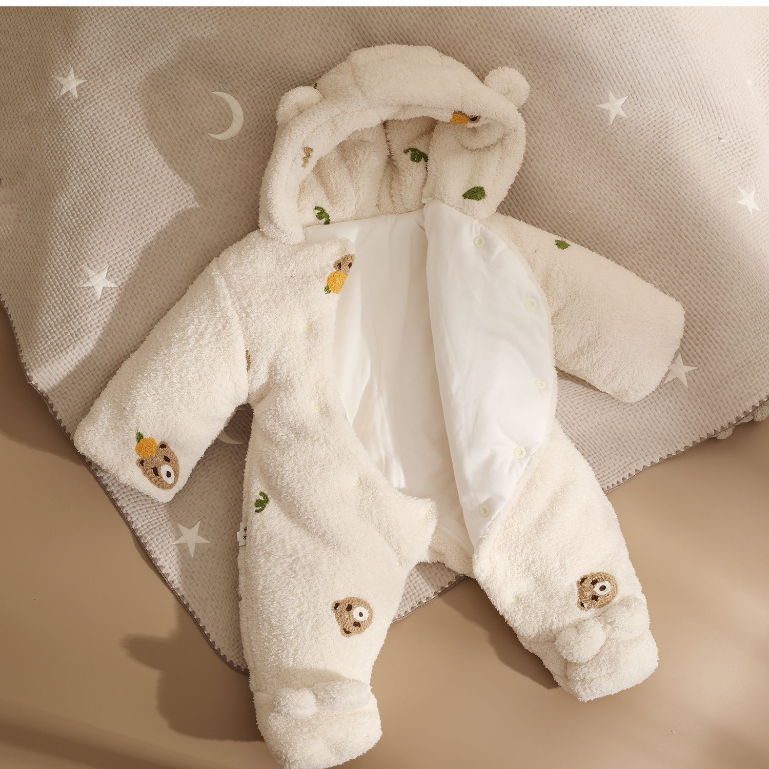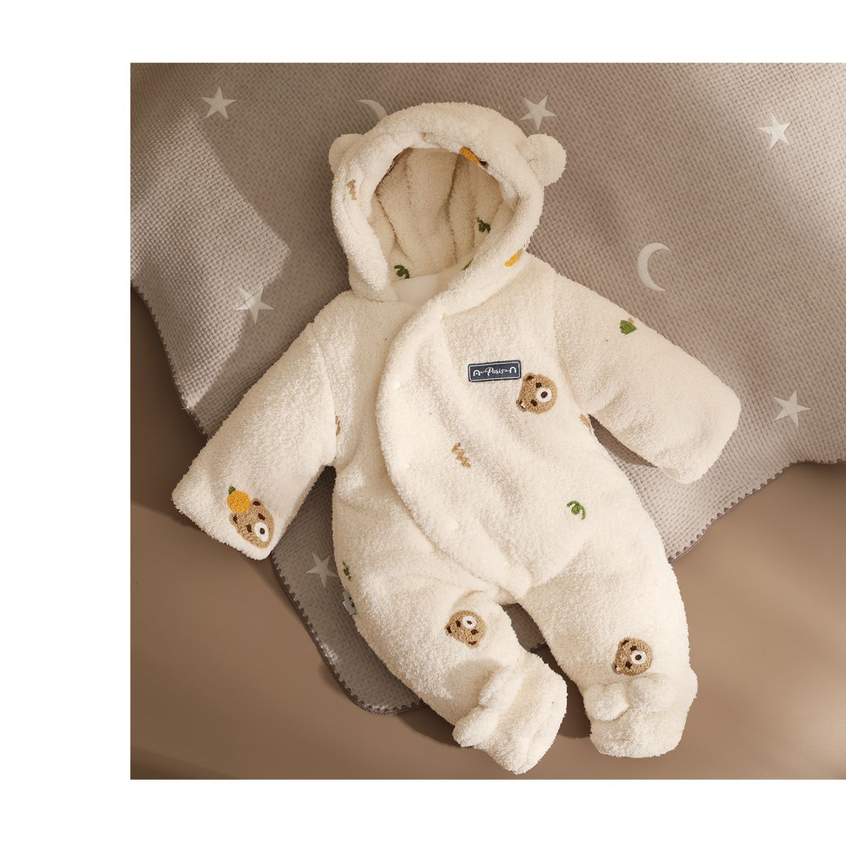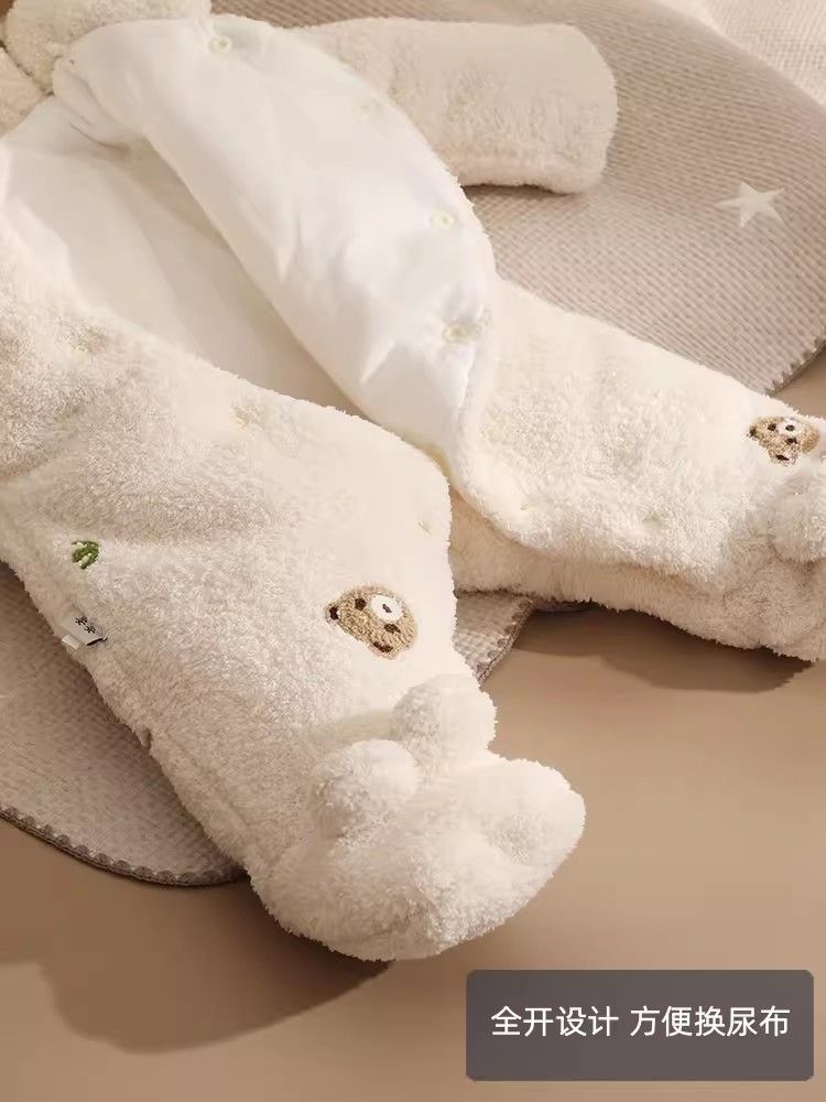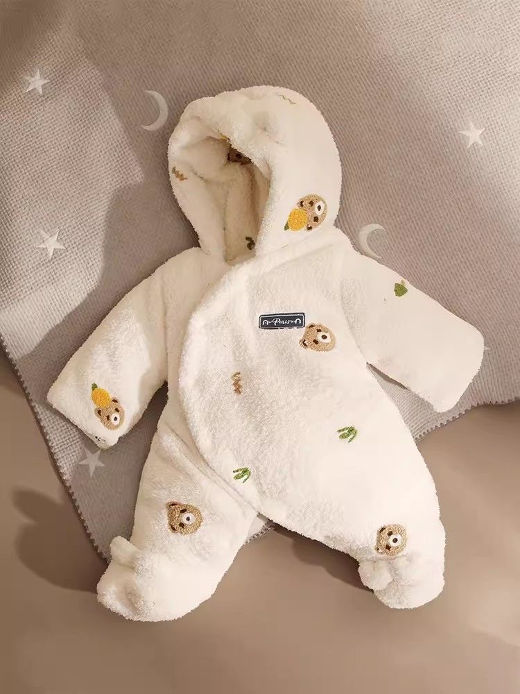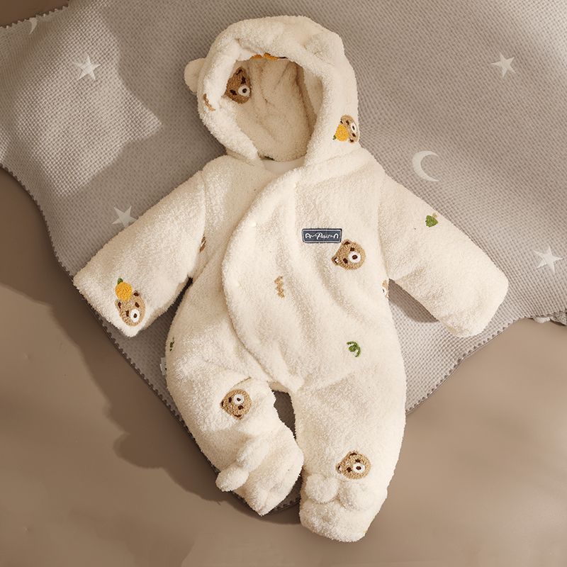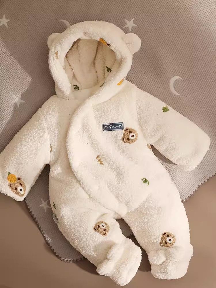三梓韩式婴儿连体衣秋冬款加厚棉服新生宝宝衣服冬天保暖外出抱衣