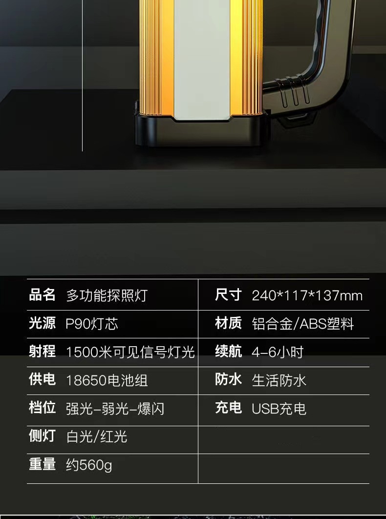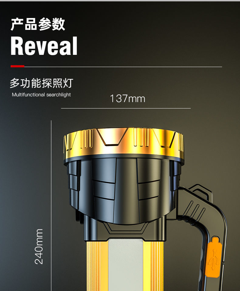 超亮手提灯强光手电筒充电超亮户外照明家用便携探照灯巡逻矿灯