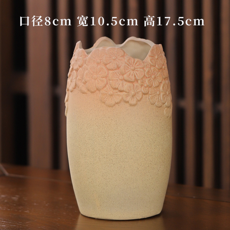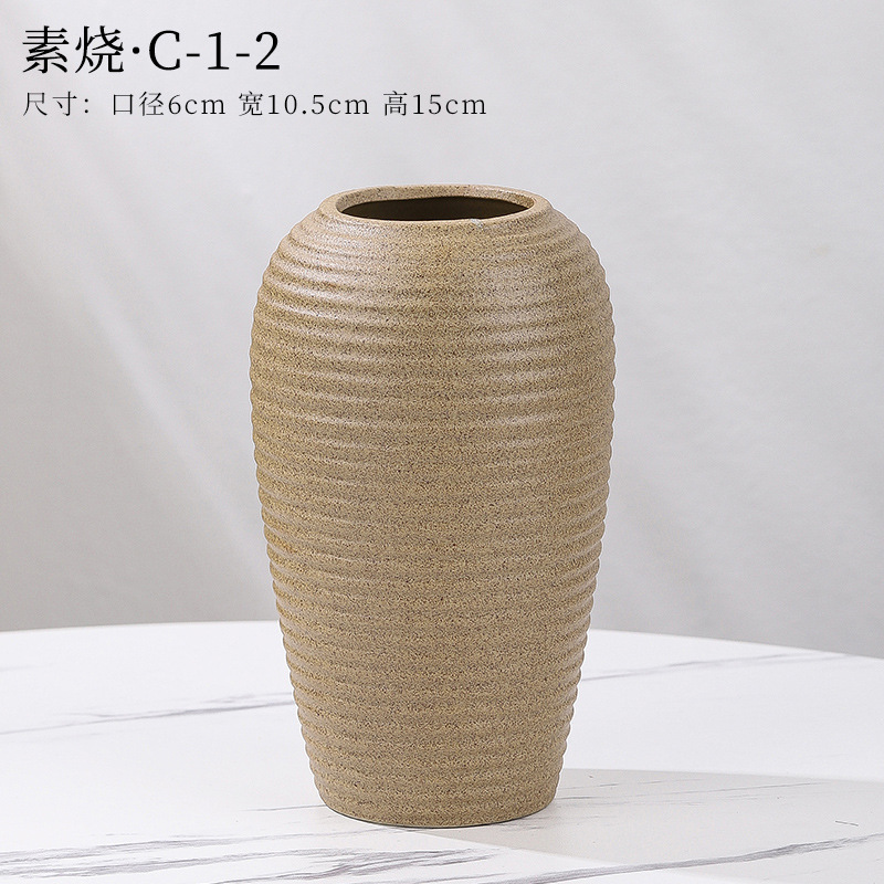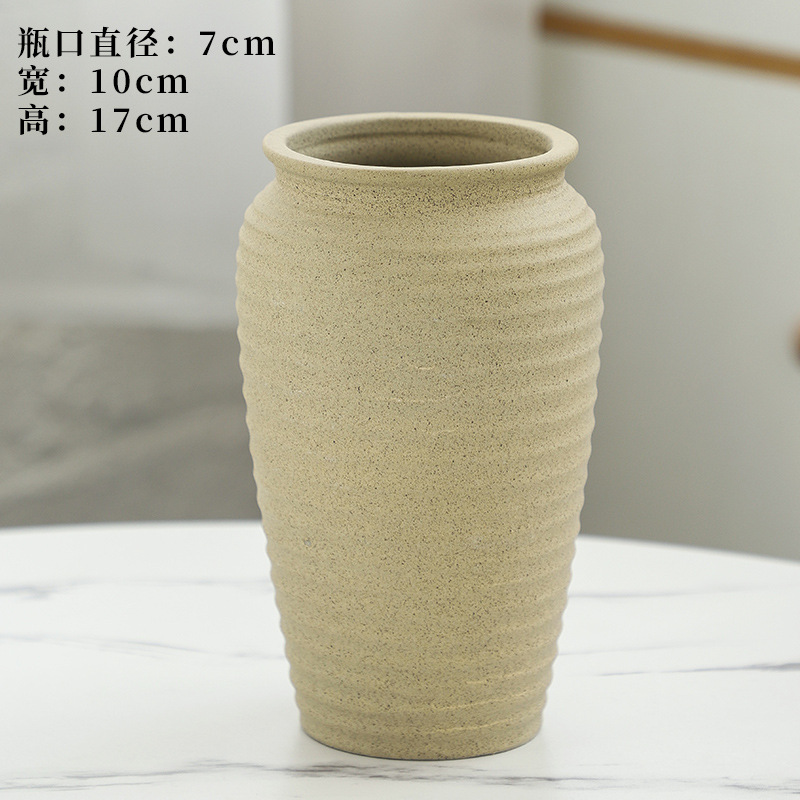 大口径花器素烧陶瓷水培花瓶摆件陶罐复古民宿新中式简约家居摆件