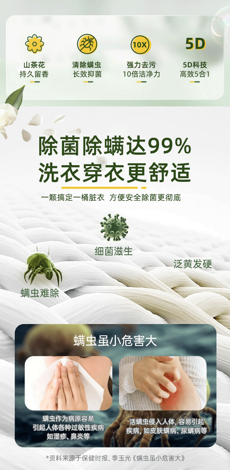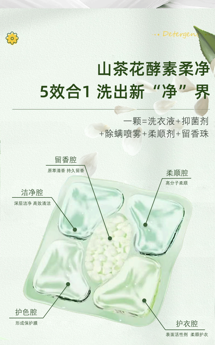 山茶花五合一洗衣凝珠留香珠家庭超大桶装洗衣珠速溶内衣洗衣液