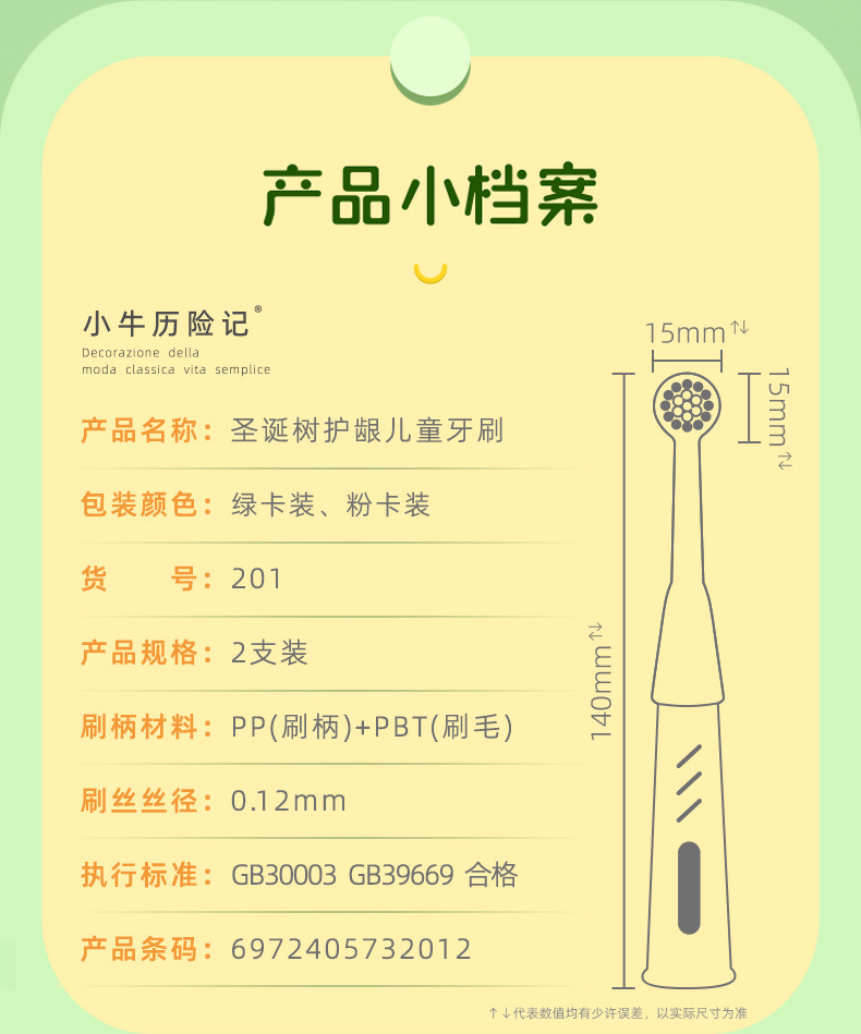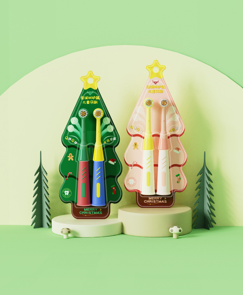 小牛历险记儿童牙刷3-12岁工厂批发2支装卡通圣诞树软毛牙刷代发