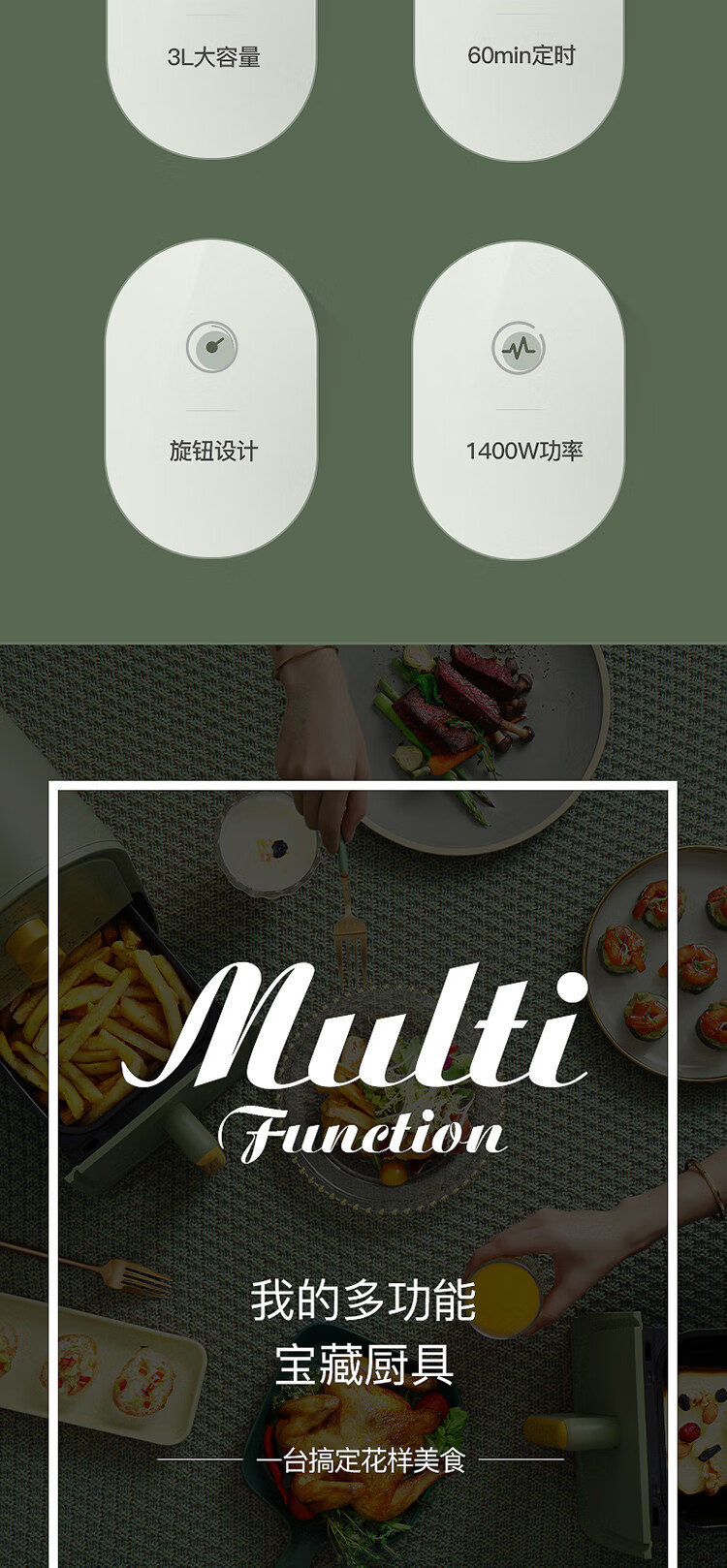 生活元素家用全自动多功能无油烟大容量3L电炸锅 机械版 Q1