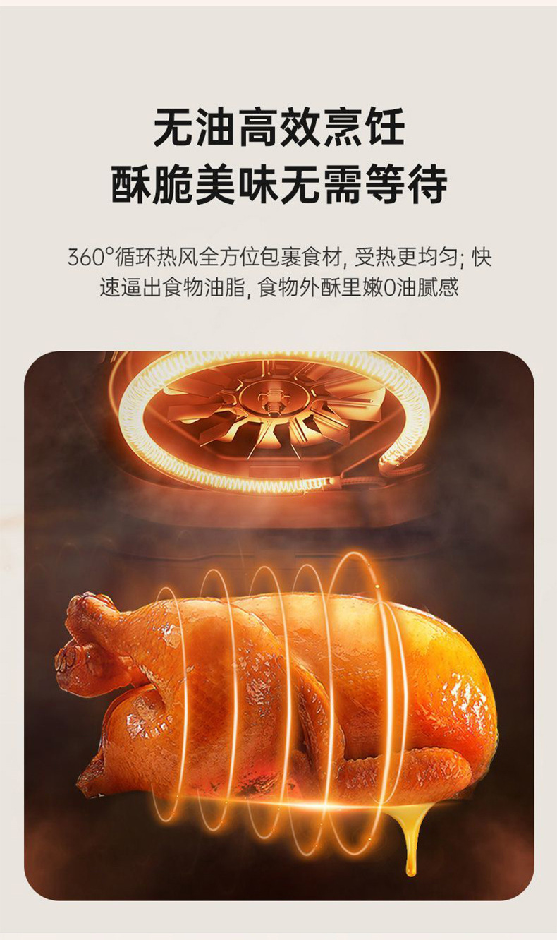 骆驼双旋扭电器大厨空气炸锅家用新款空汽炸锅大容量可视化炸锅