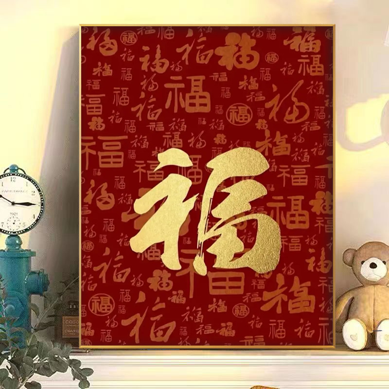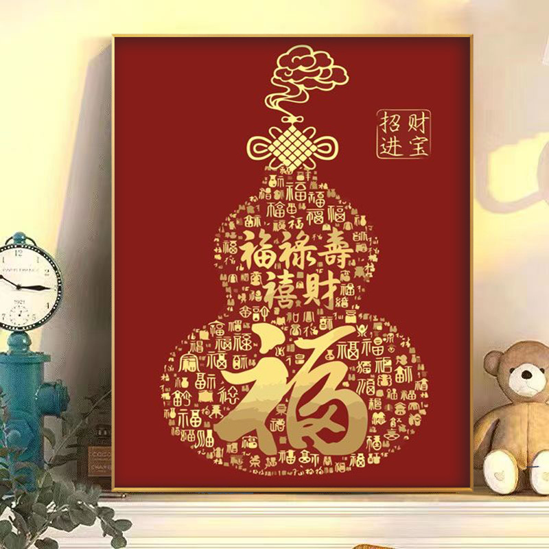 福禄满年数字油画diy送金色颜料丙烯手工填色解压祝福客厅装饰画