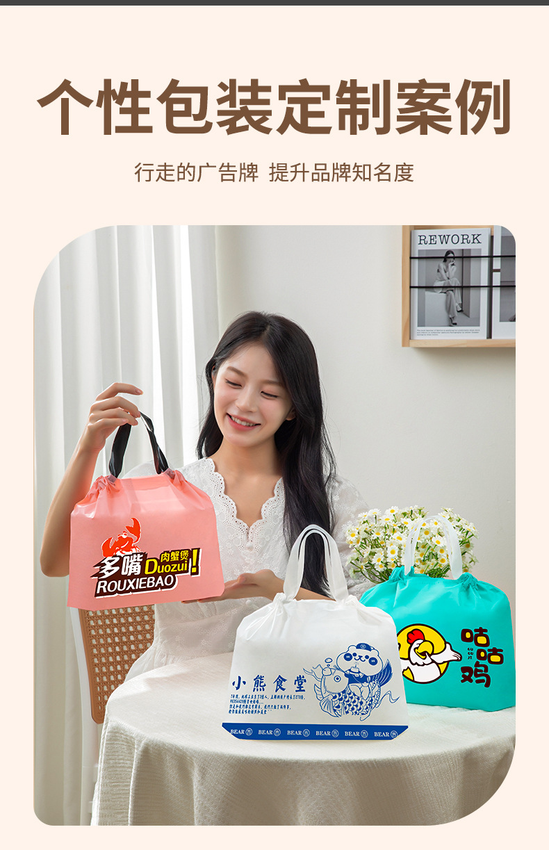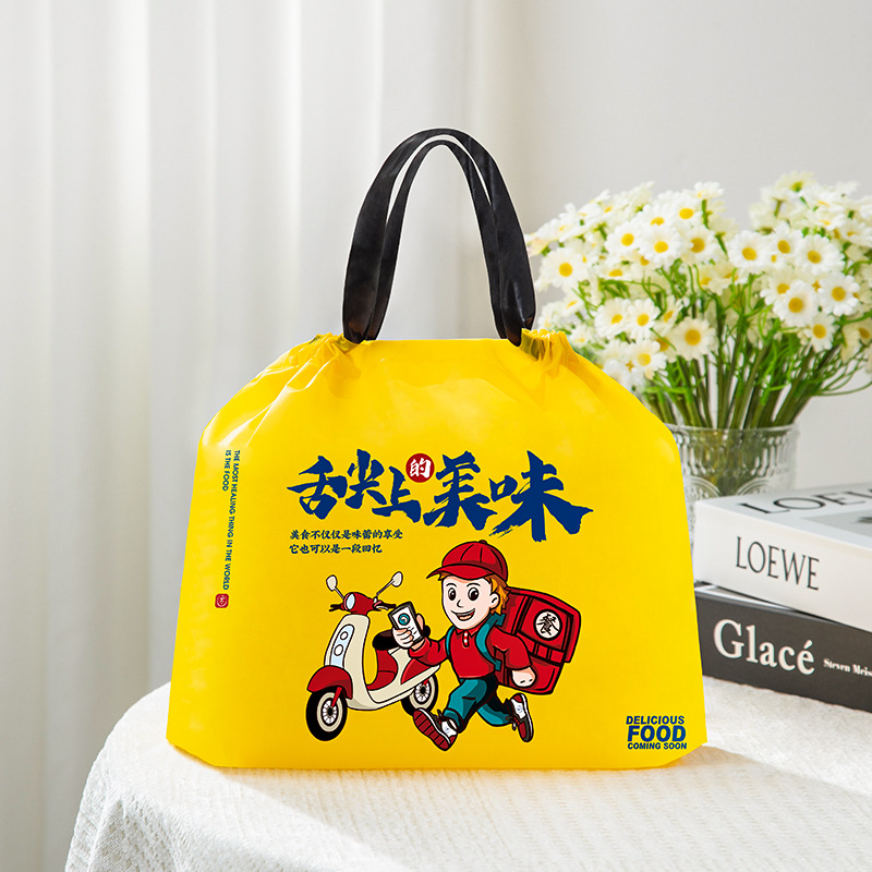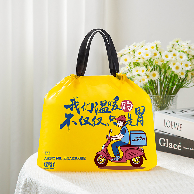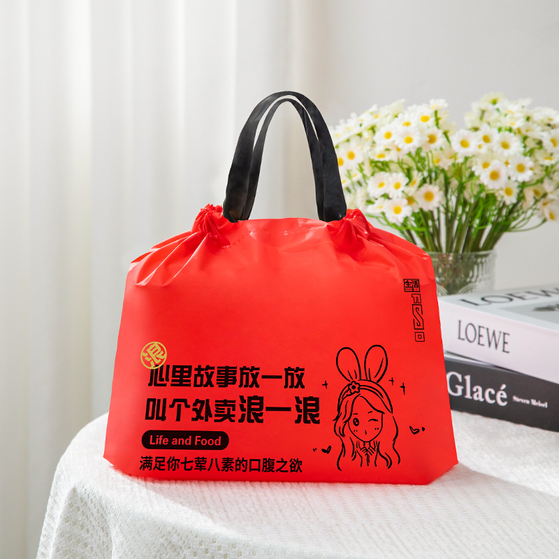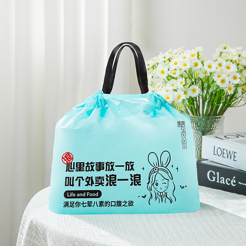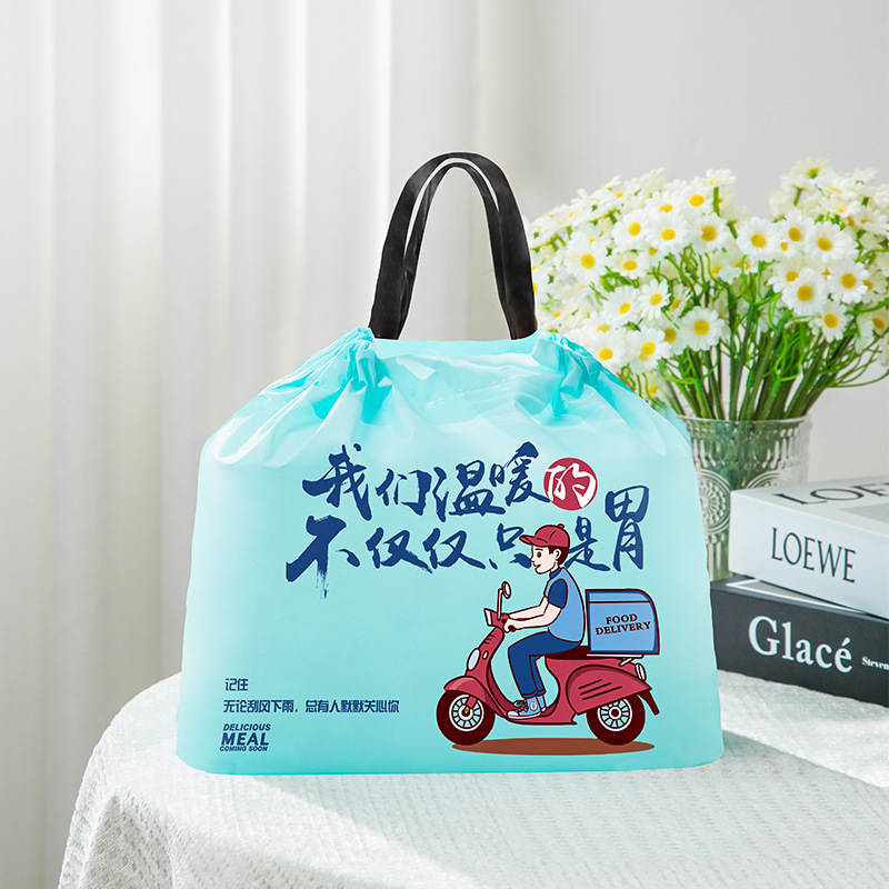 外卖打包袋子抽绳手提磨砂束口袋餐饮商用快餐店塑料包装厂家批发