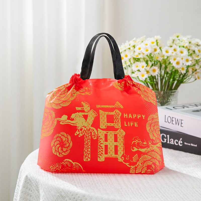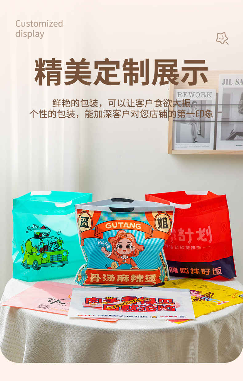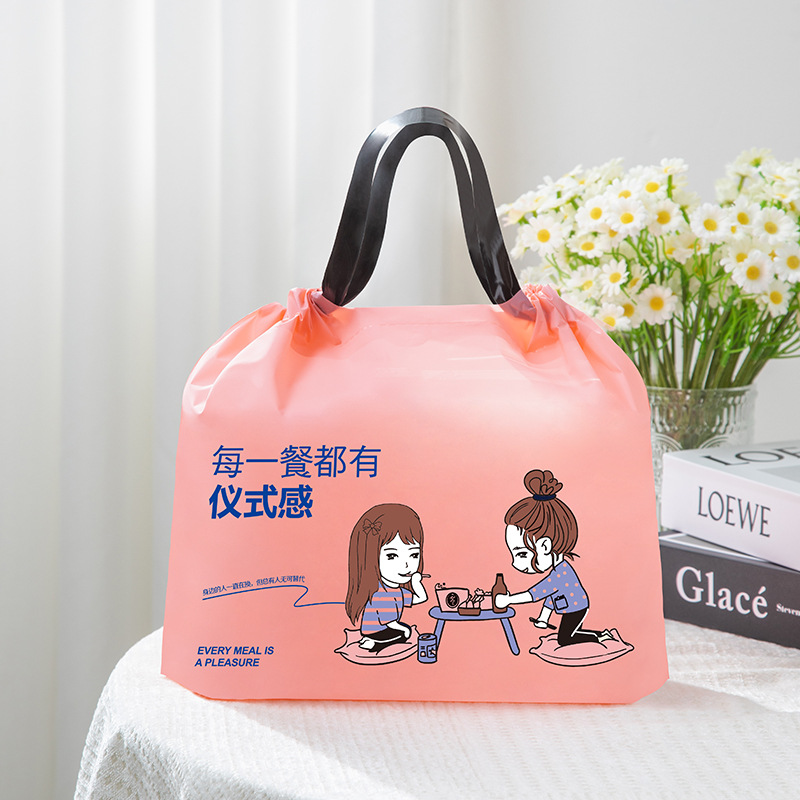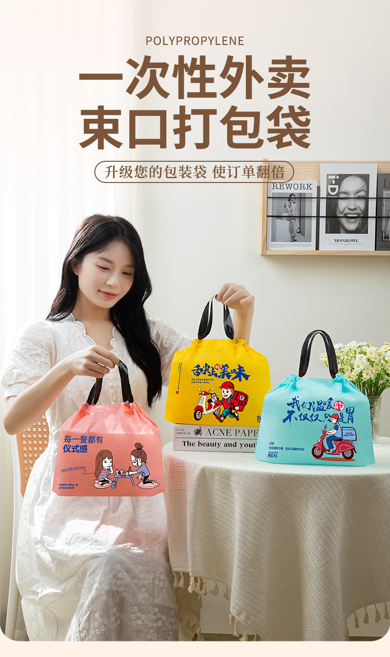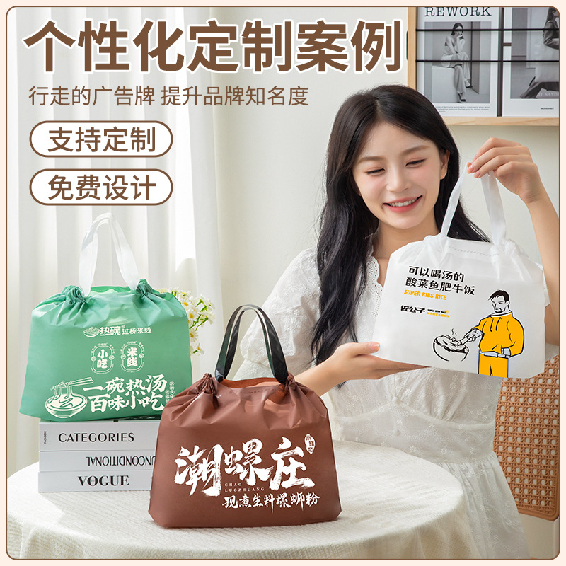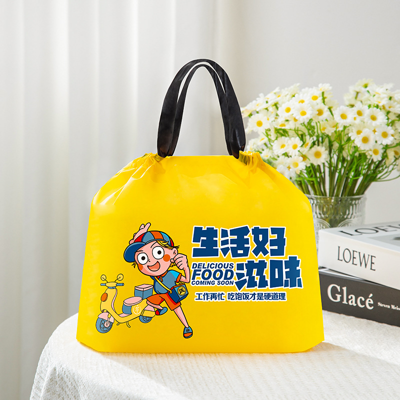 外卖打包袋子抽绳手提磨砂束口袋餐饮商用快餐店塑料包装厂家批发