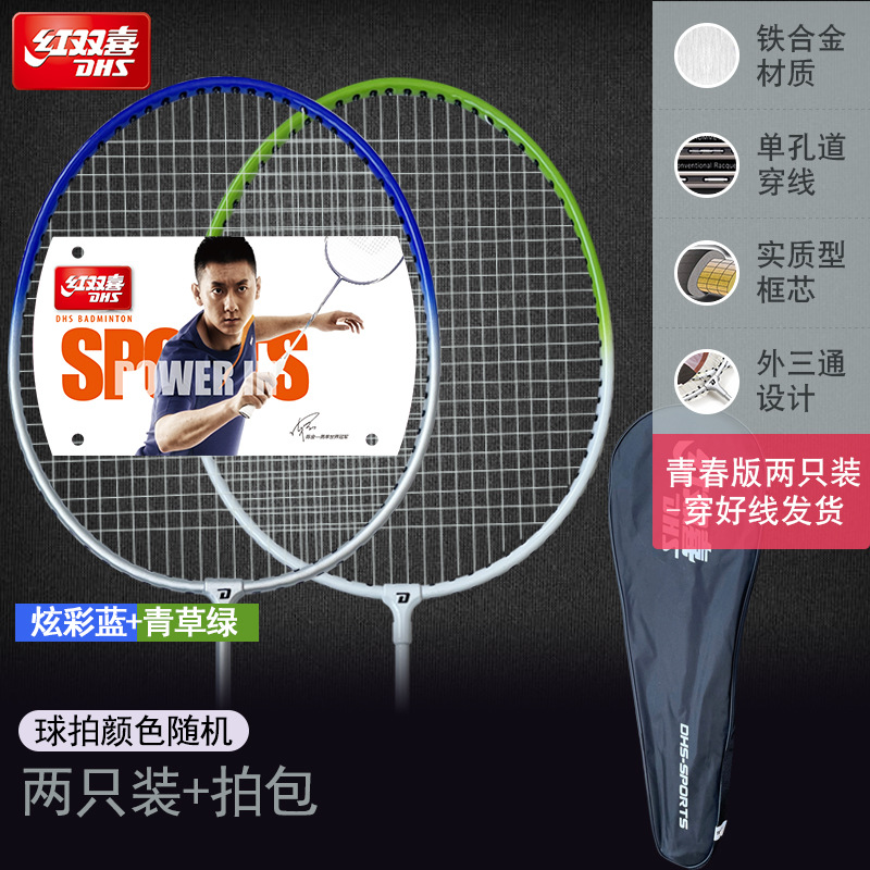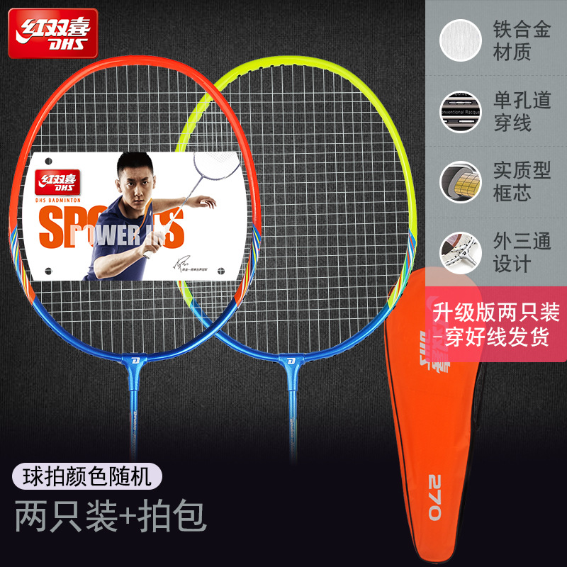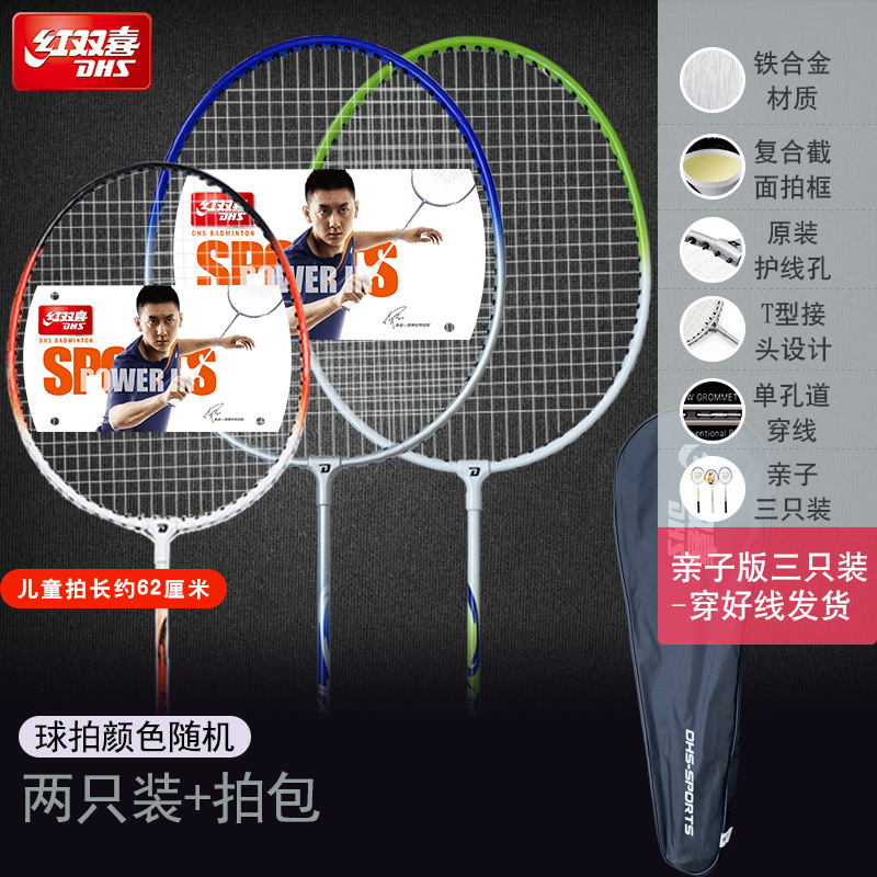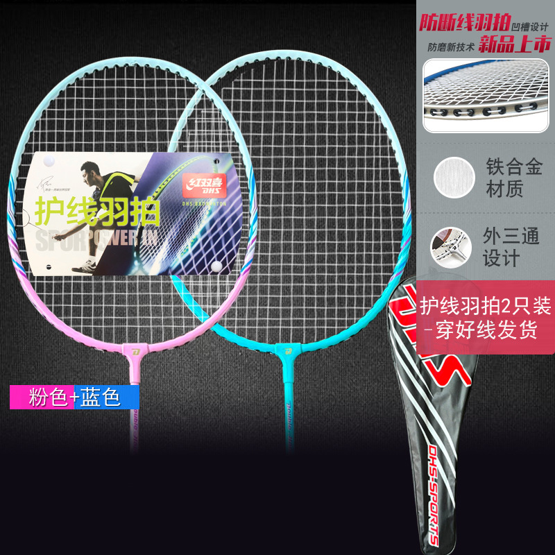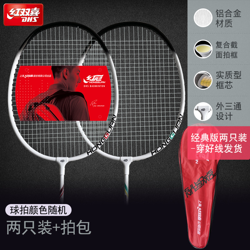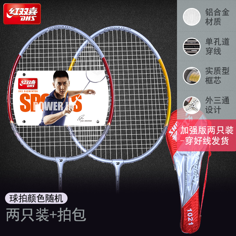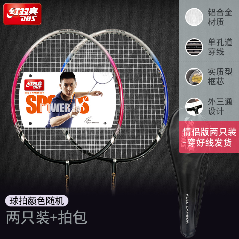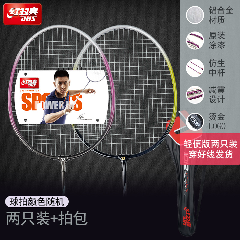 红双喜羽毛球拍双拍耐用型儿童铁铝合金碳素超轻成人拍子单拍套装