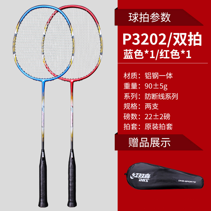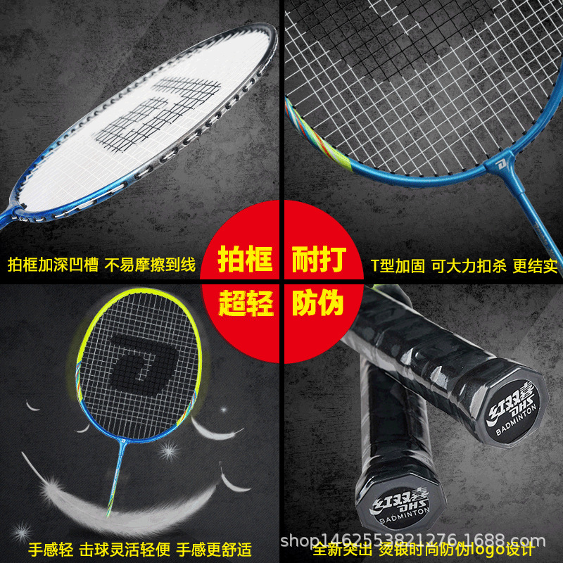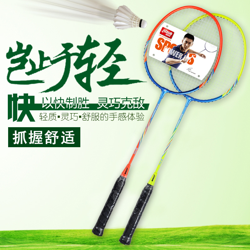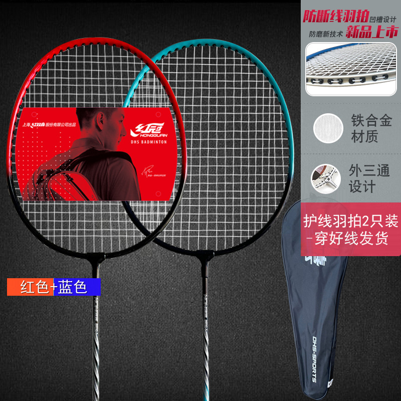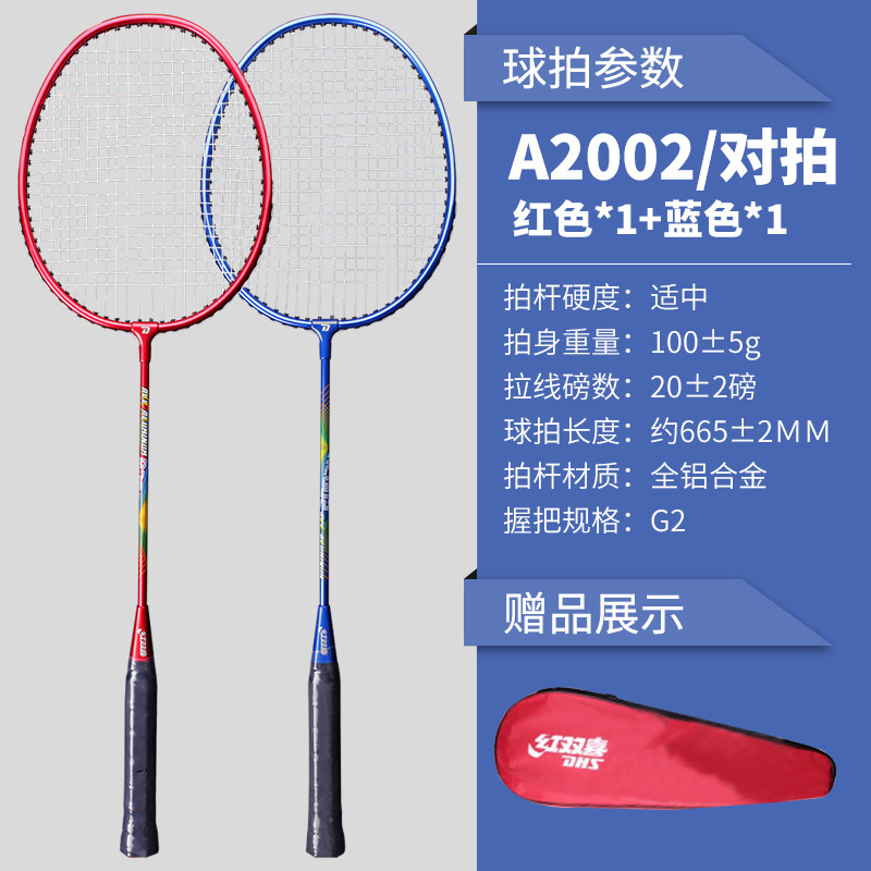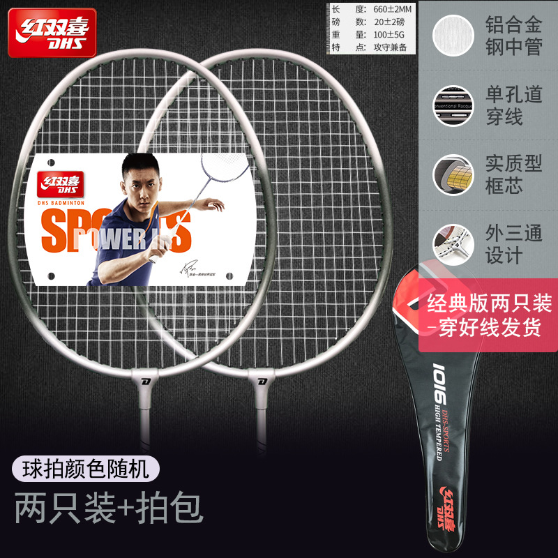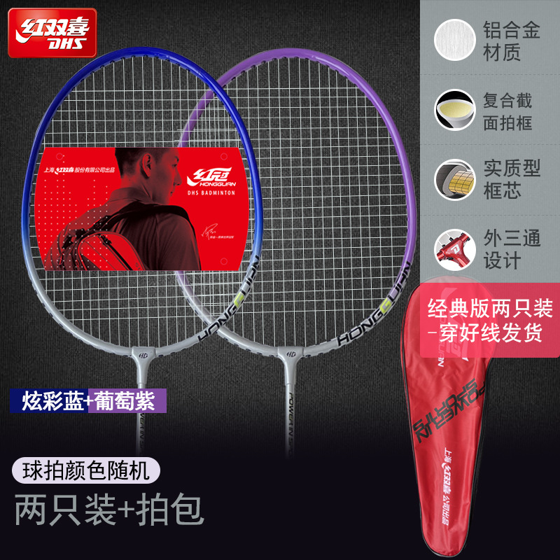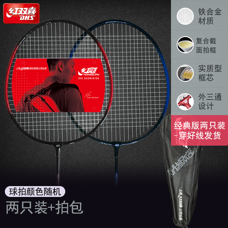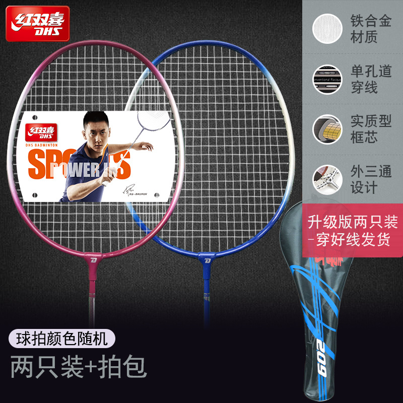 红双喜羽毛球拍双拍耐用型儿童铁铝合金碳素超轻成人拍子单拍套装