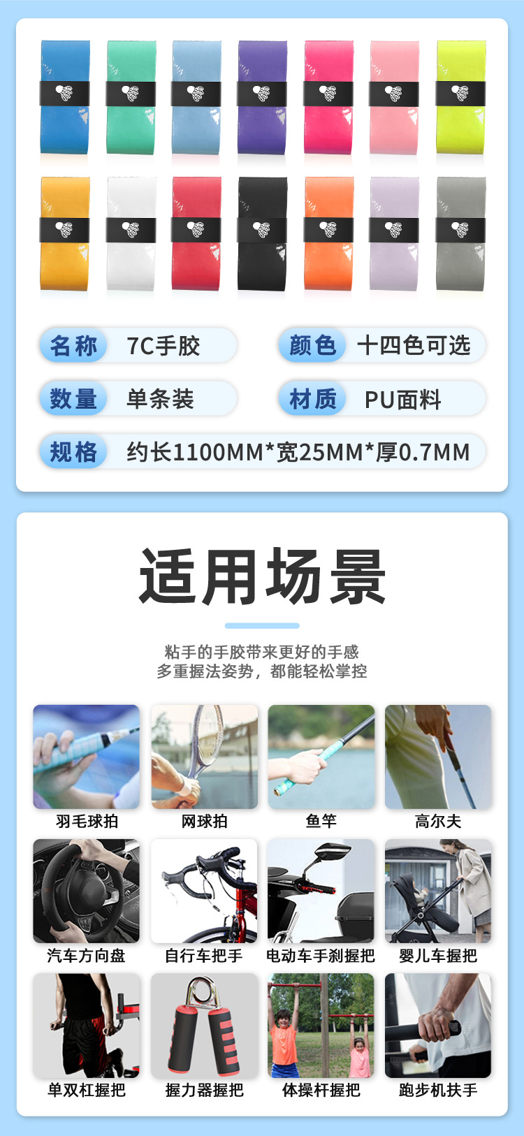 羽毛球拍手胶防滑7C手胶手柄缠把带柔软减震网球拍手胶耐磨吸汗带
