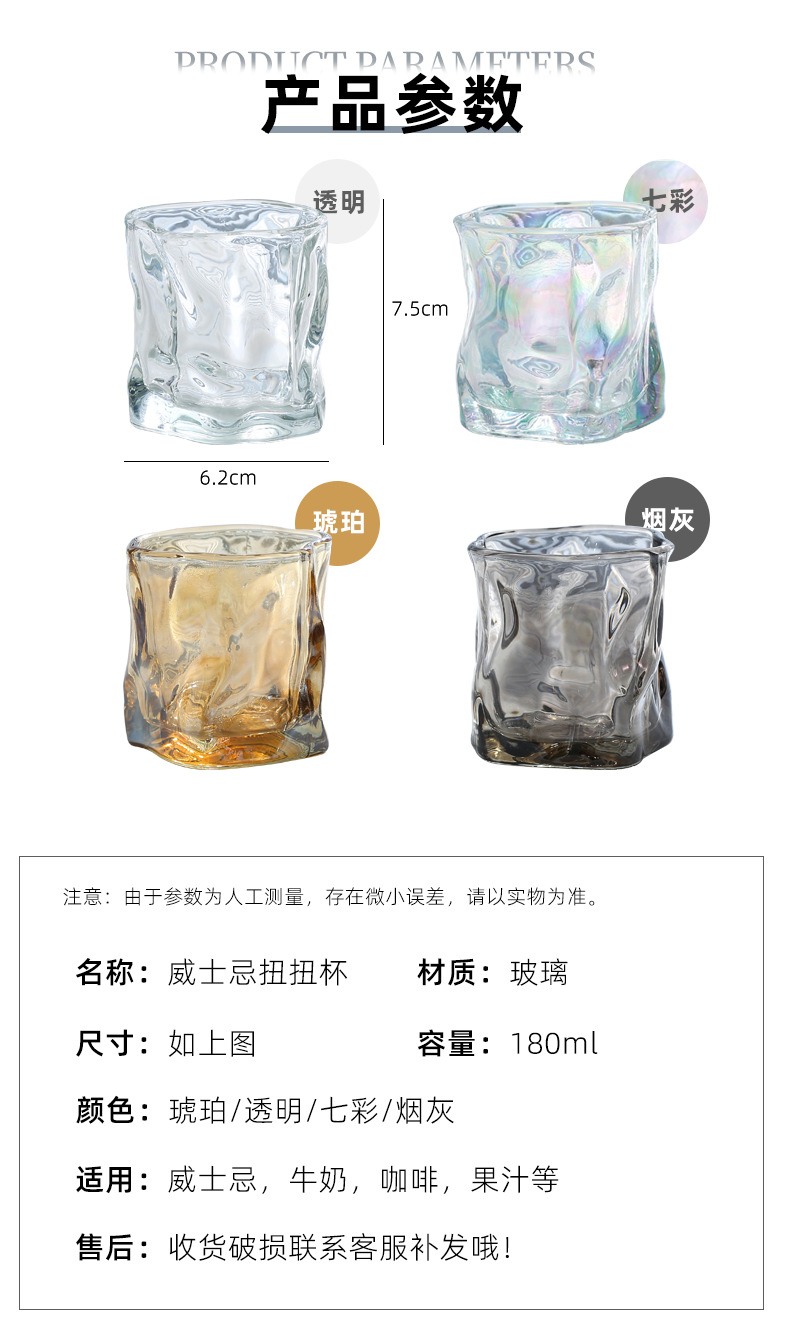 高颜值异形扭扭杯炫彩威士忌酒杯加厚啤酒杯扭曲网红优质玻璃水杯