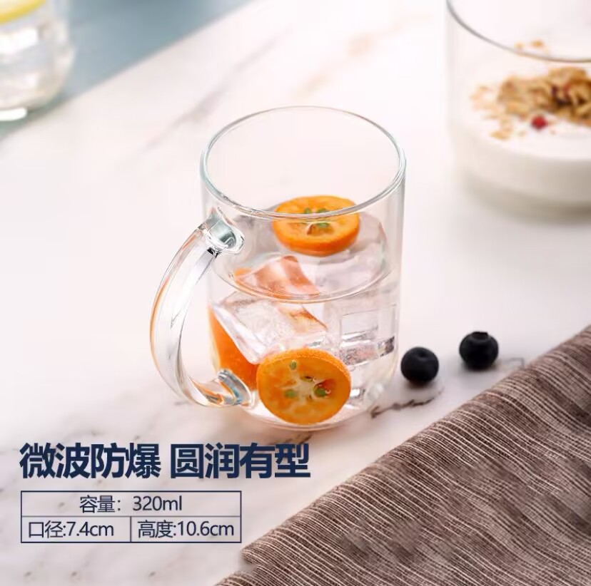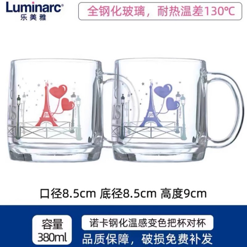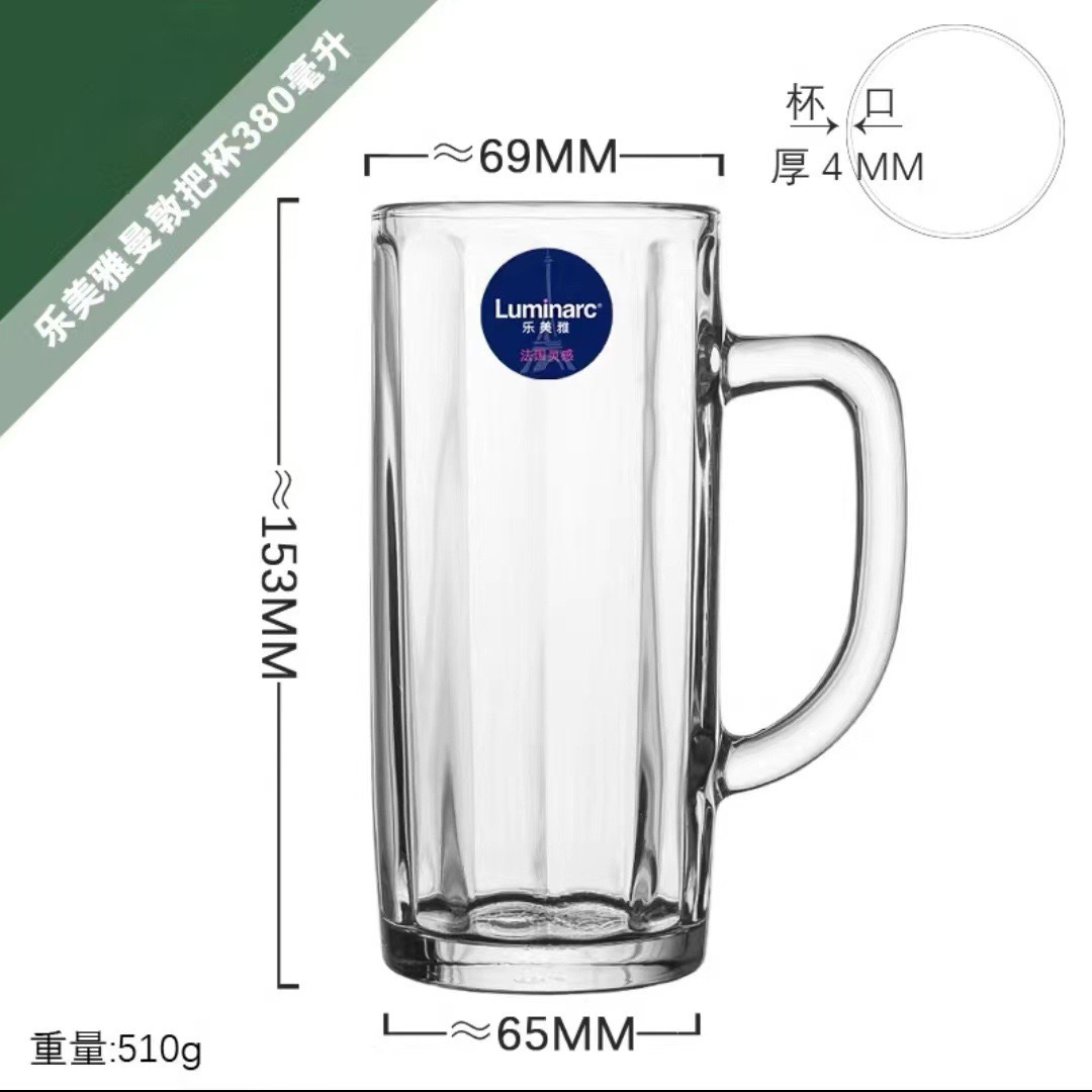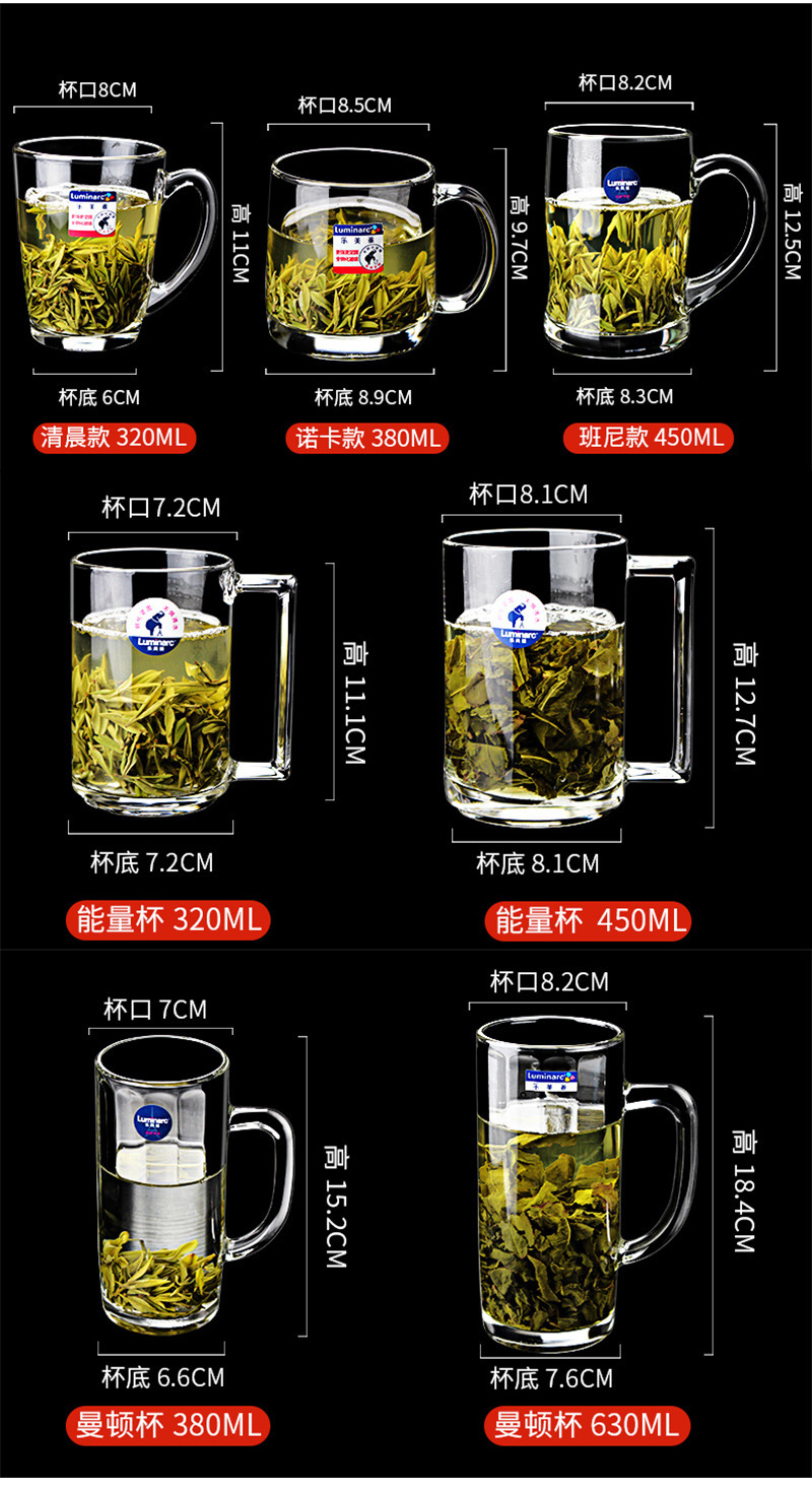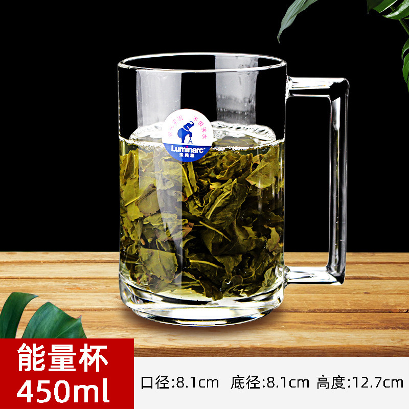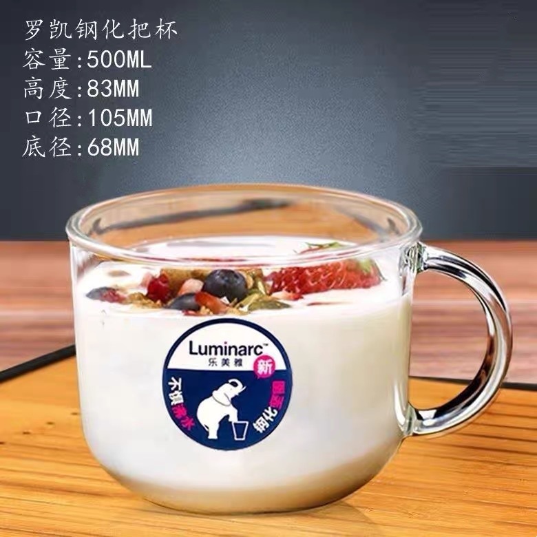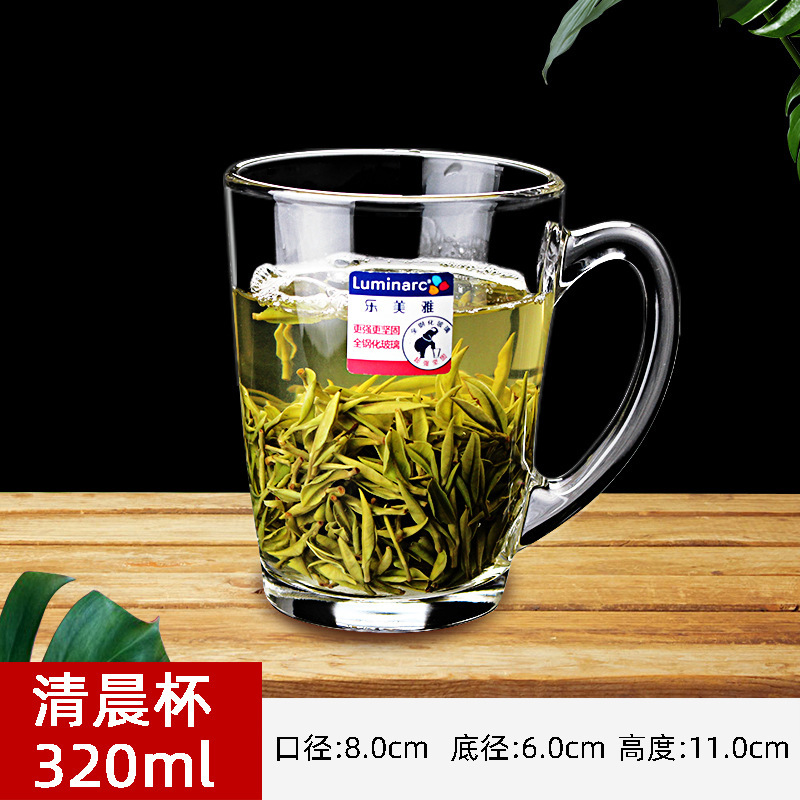 乐美雅玻璃杯家用水杯耐热泡茶杯钢化微波牛奶杯带把早餐喝水杯子