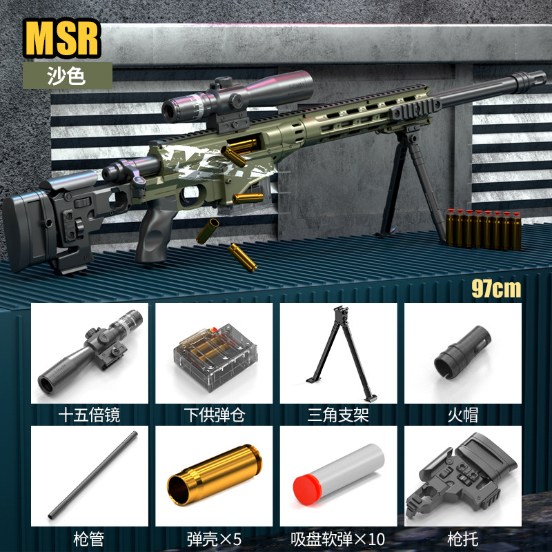 悍迪大号MSR狙击枪手动单发抛壳软弹枪儿童awm户外玩具枪一件代发