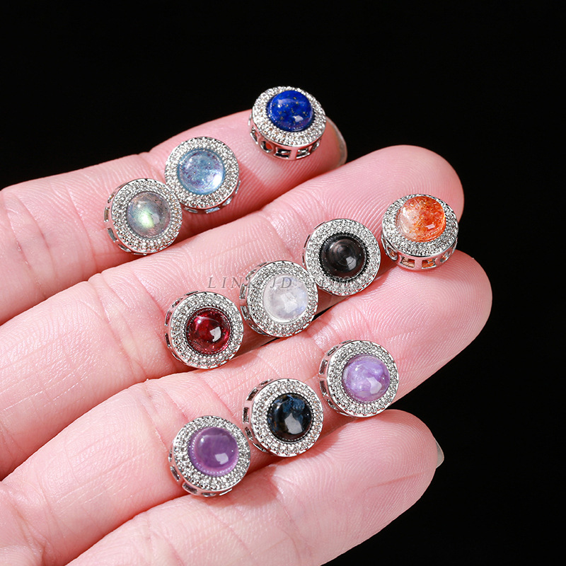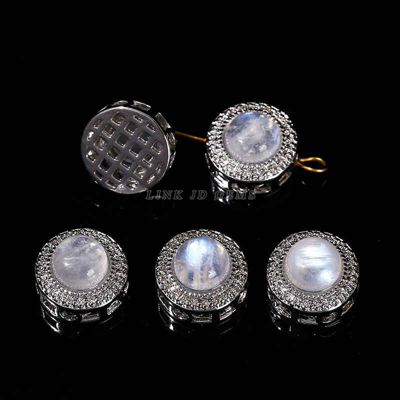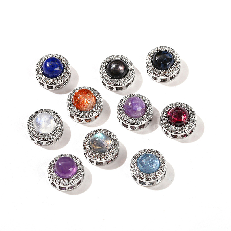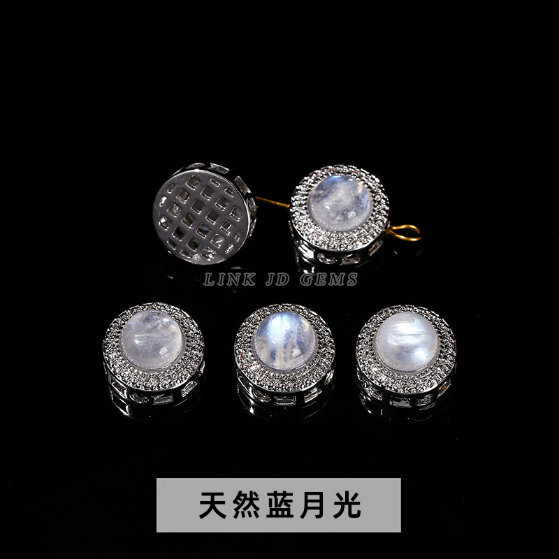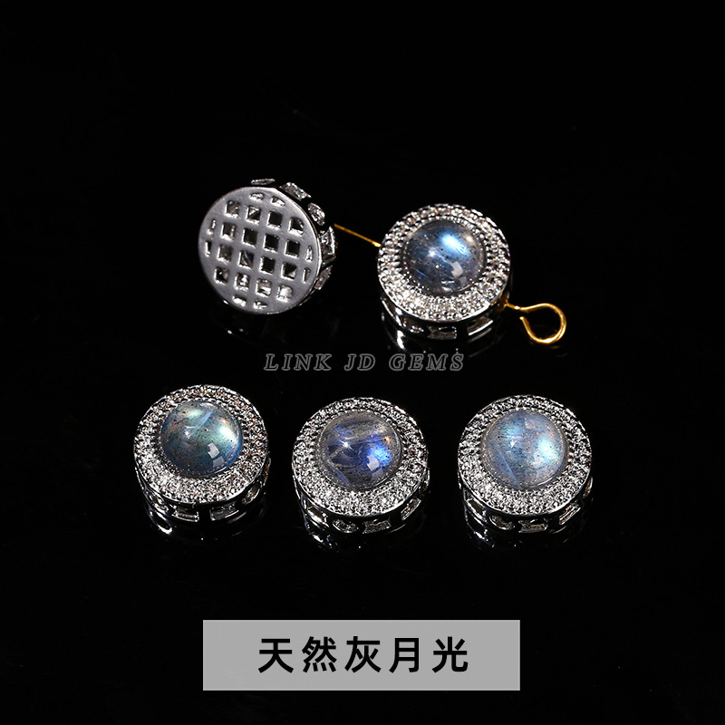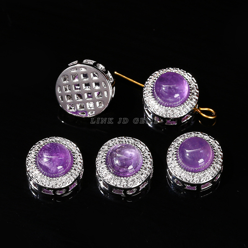 晶德珠宝 天然月光石圆形魔盒配饰紫水晶单颗散珠diy饰品配件批发