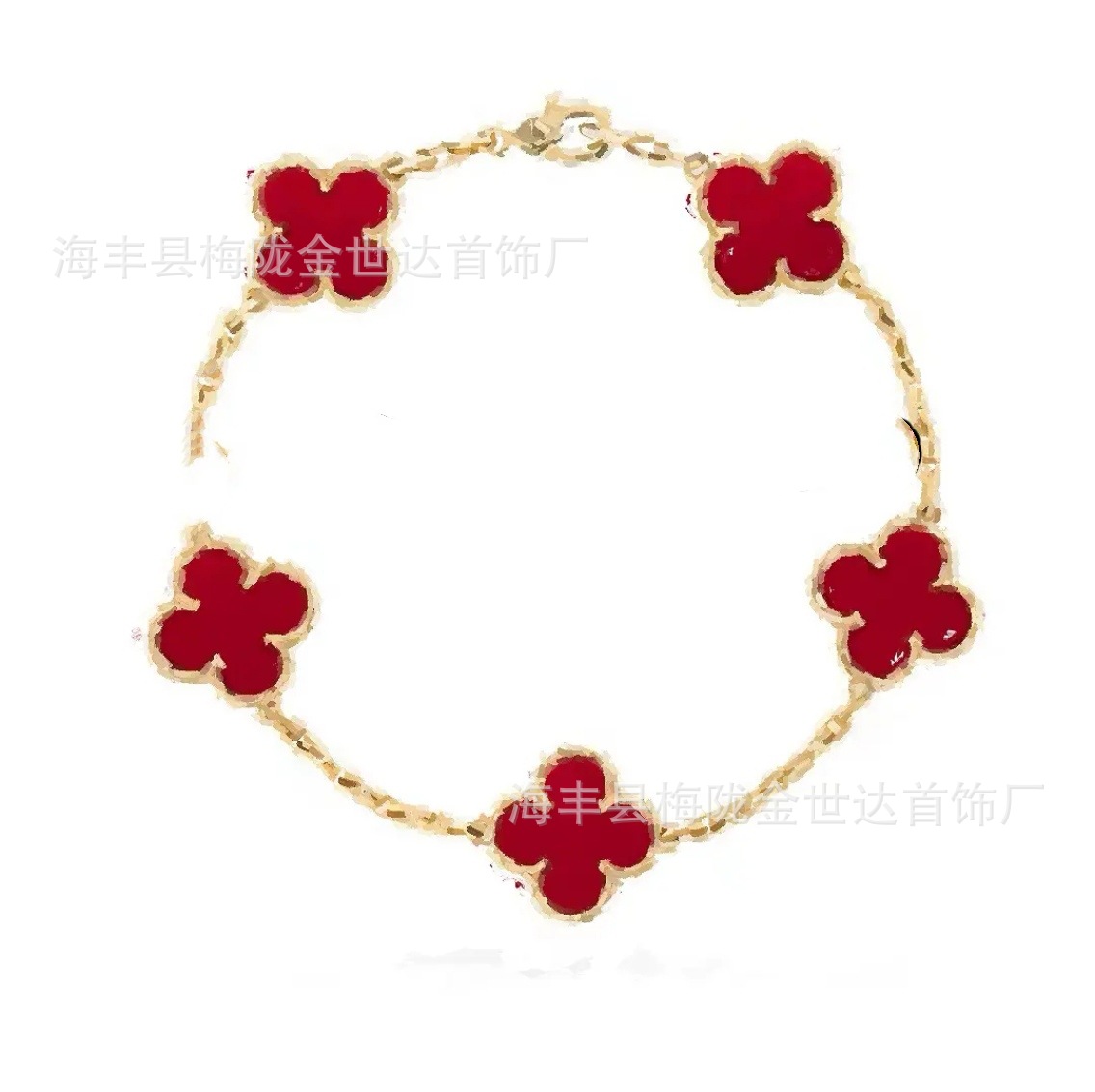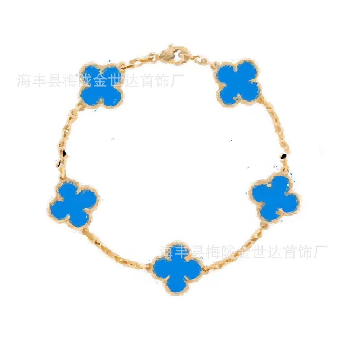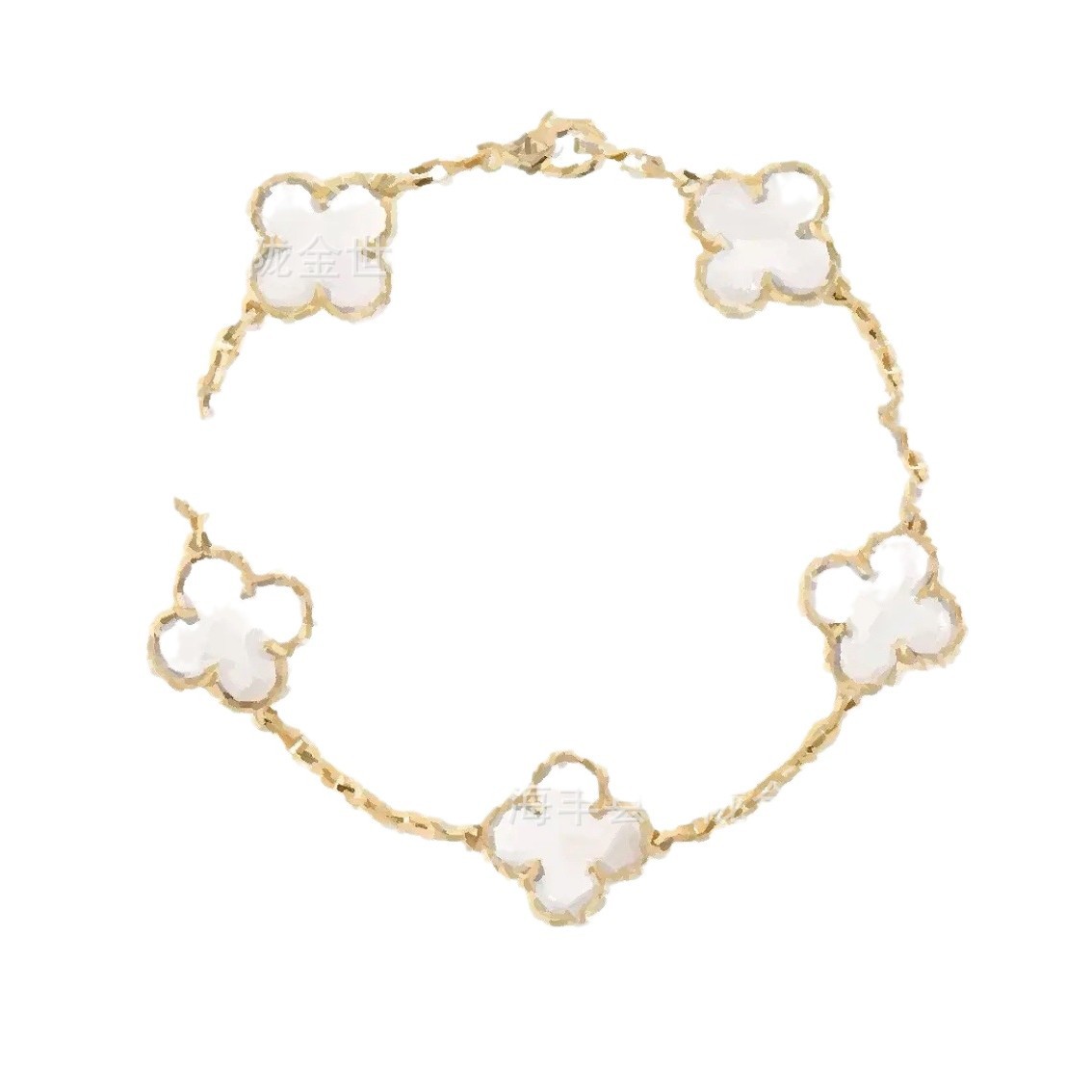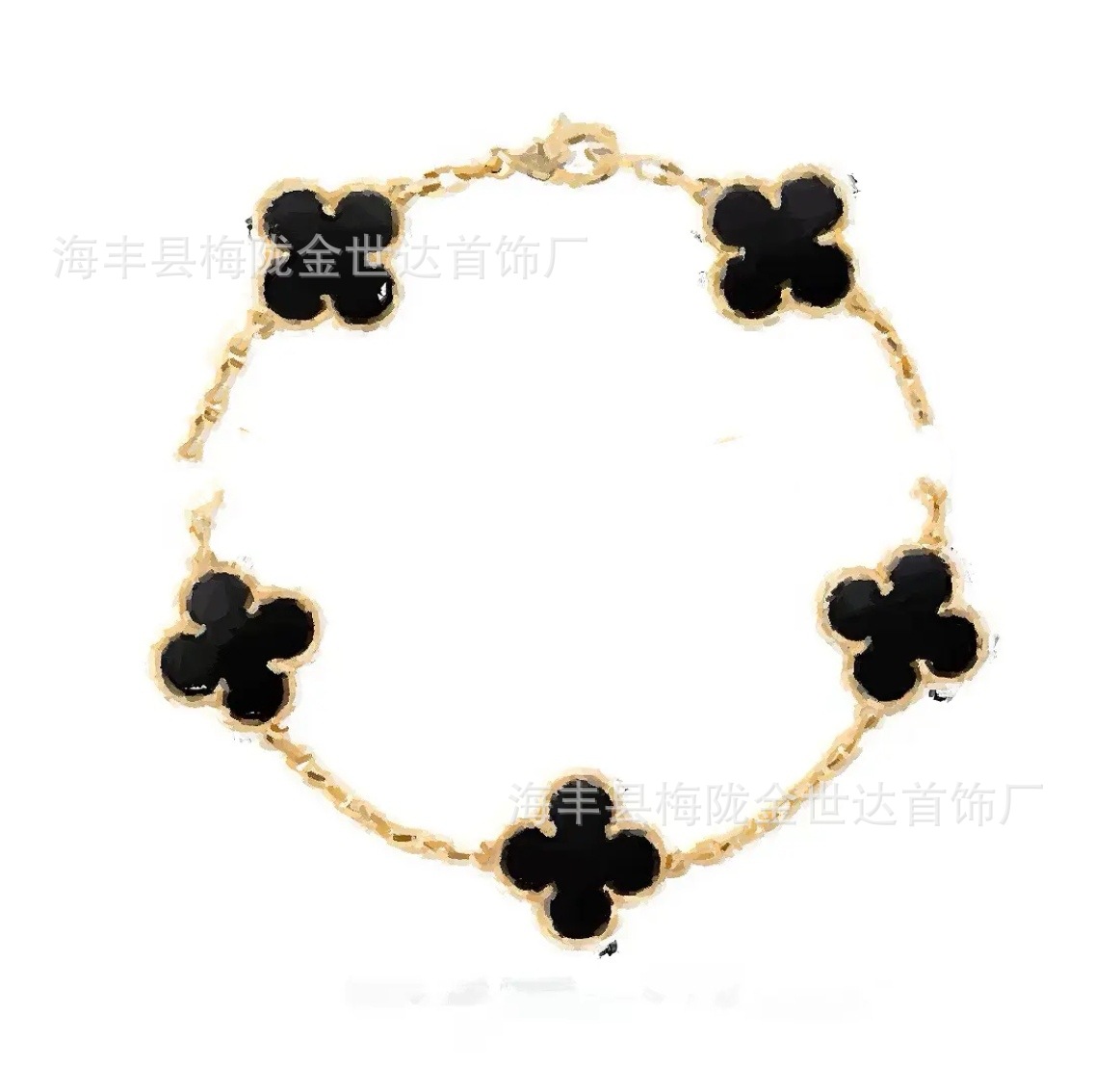 梵家高版本四叶草五花手链女网红同款镀18kv金天然紫玉髓手链批发