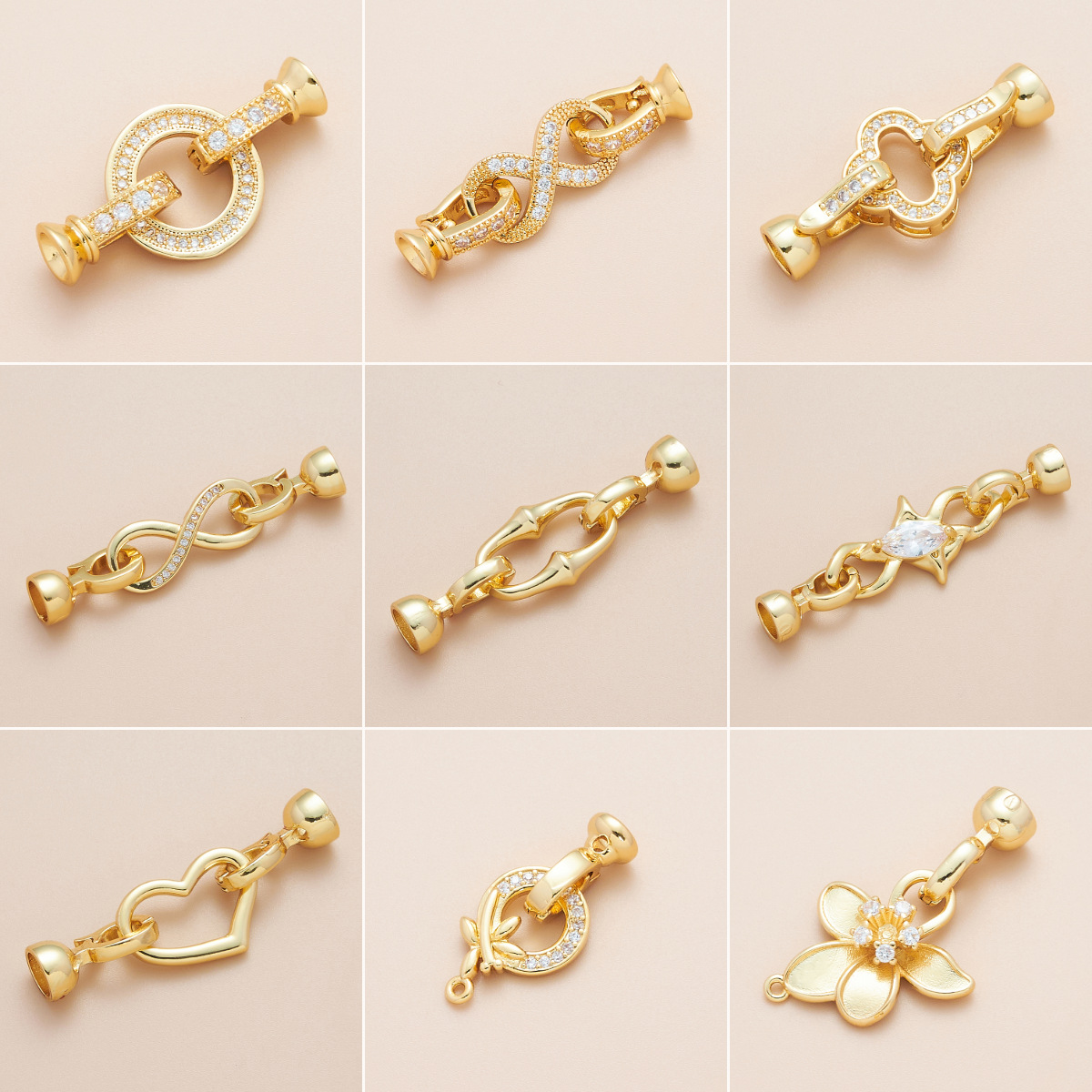 铜镀18K金强保色镶嵌项链扣头珍珠扣手链扣收尾扣diy饰品配件