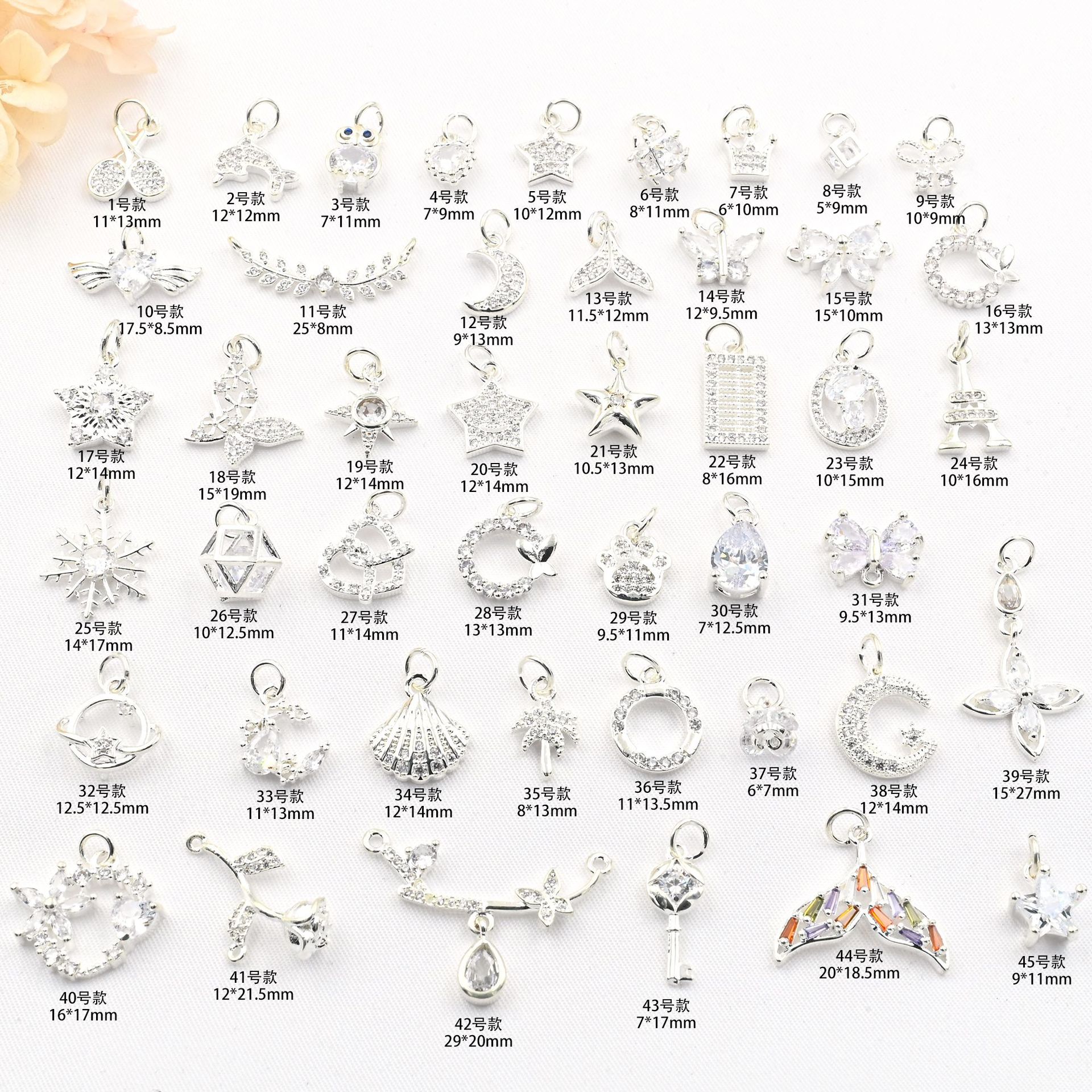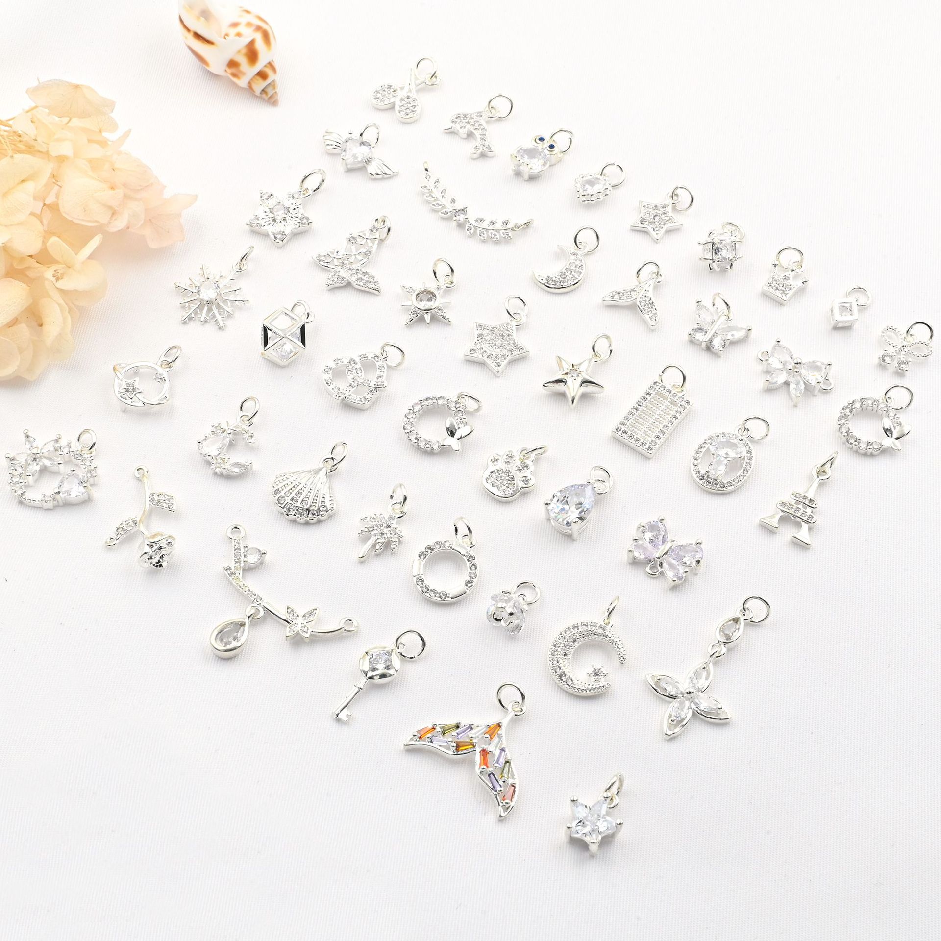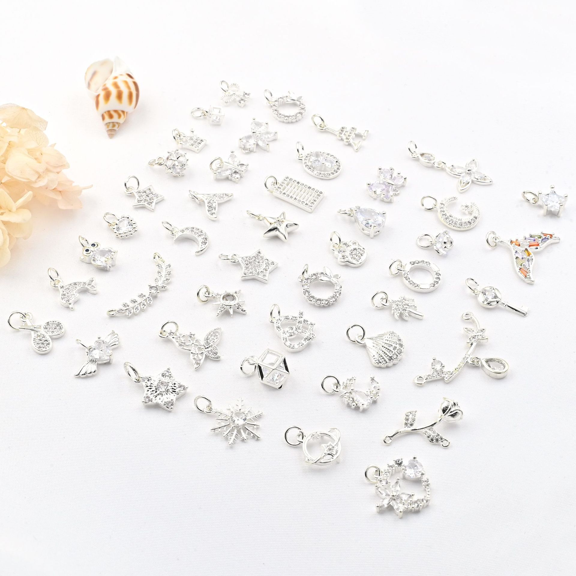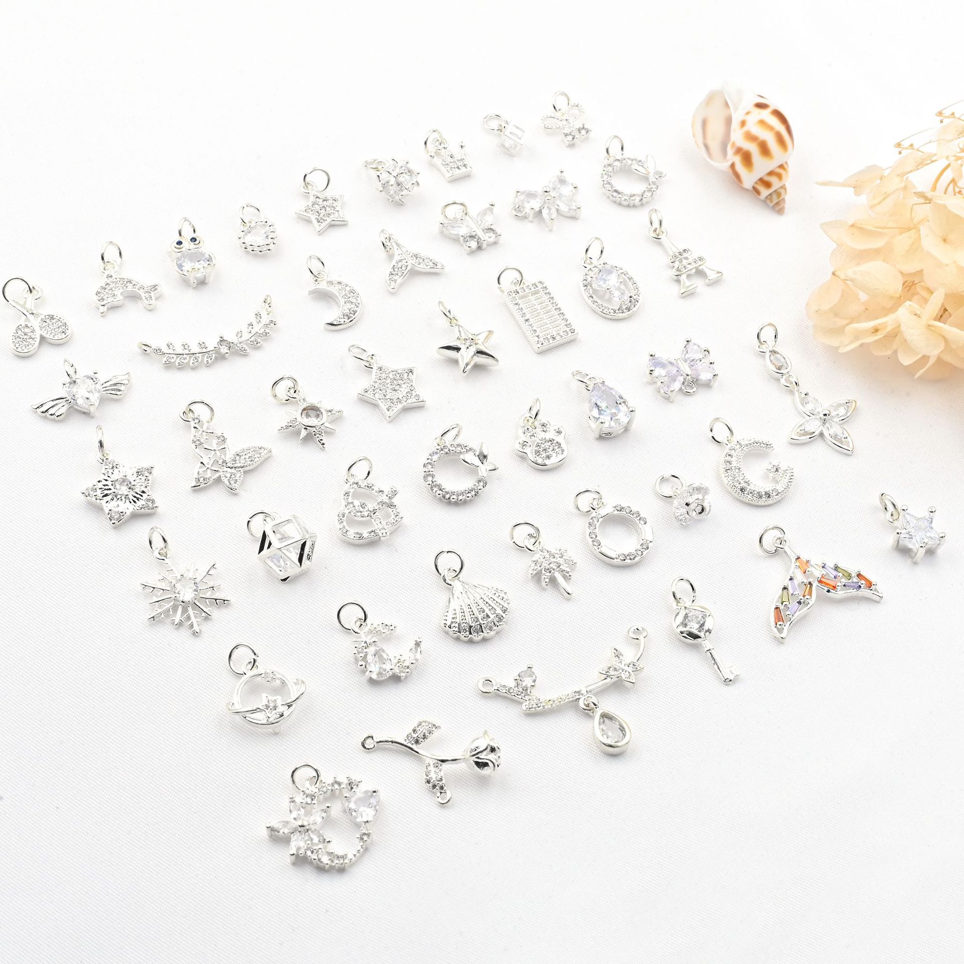 铜镀银色微镶锆石配件贝壳算盘蝴蝶鱼尾小吊坠diy项链耳饰挂件