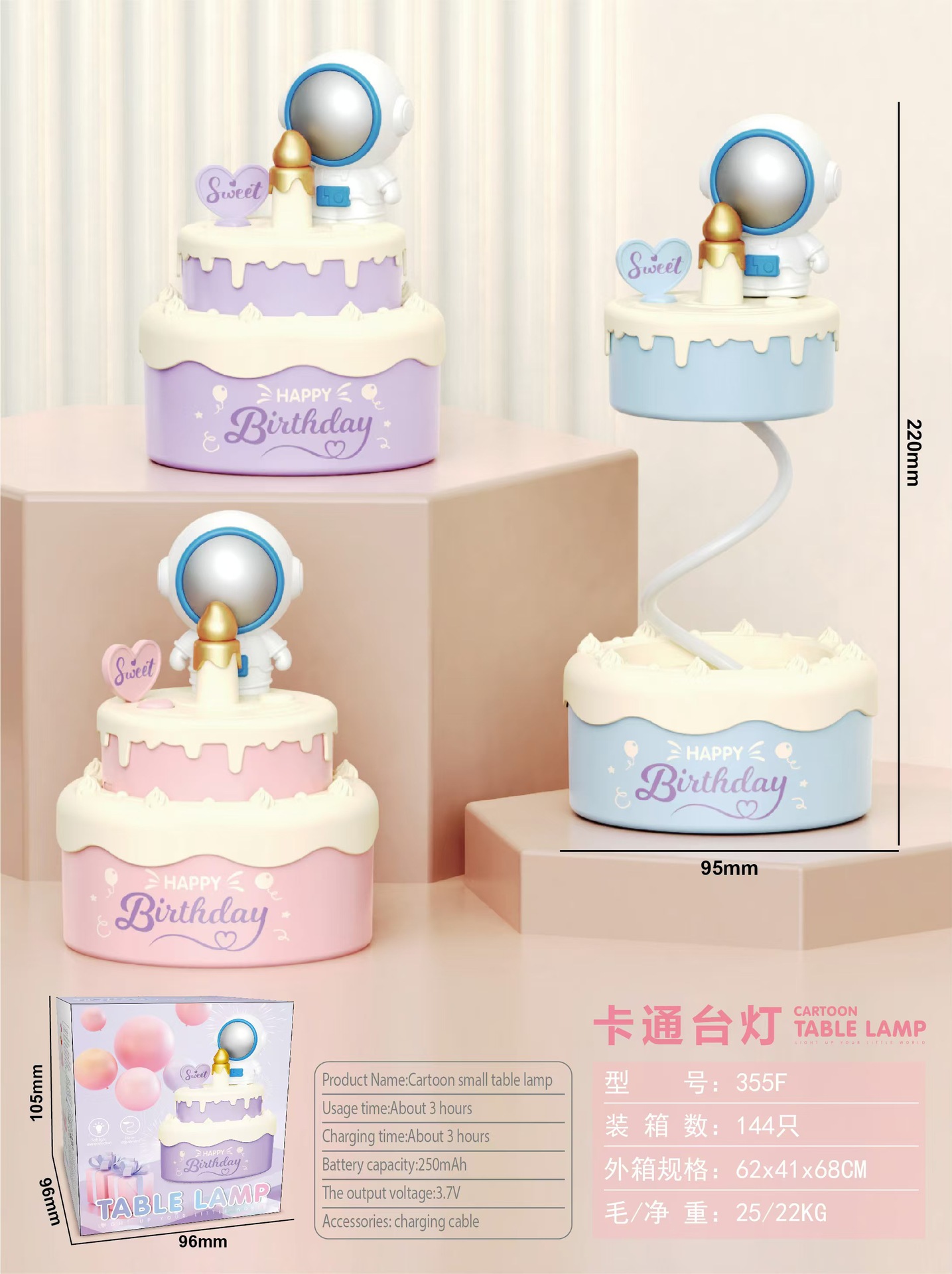 跨境新款太空人蛋糕LED充电台灯儿童学习护眼床头小夜灯摆件礼品
