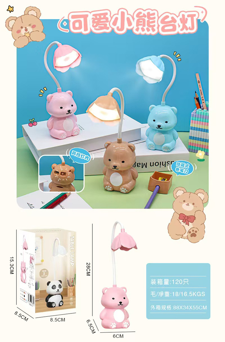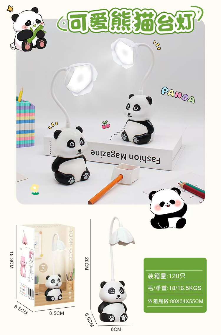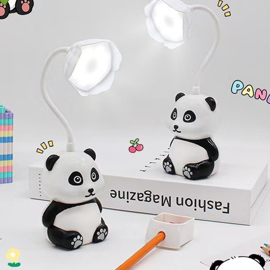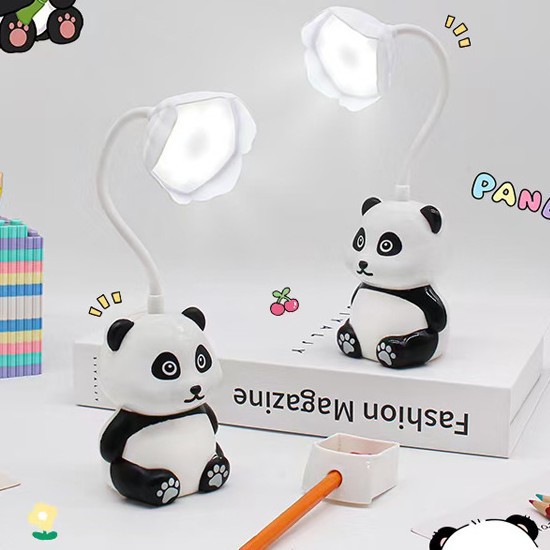 外贸跨境小台灯熊猫台灯带铅笔削卡通萌熊USB充电LED桌面折叠台灯