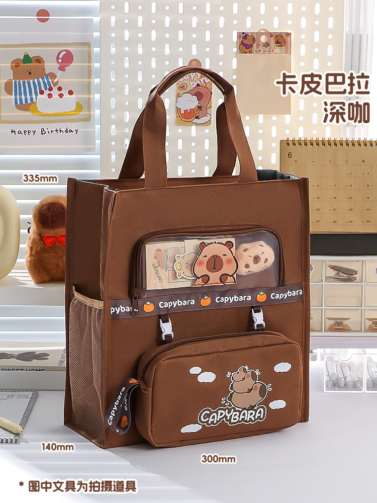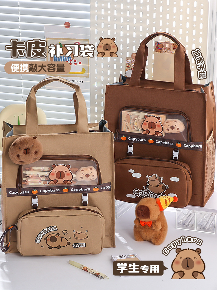 小学生补习袋笔袋帆布收纳文件袋培训机构简约帆布卡皮巴拉补习袋