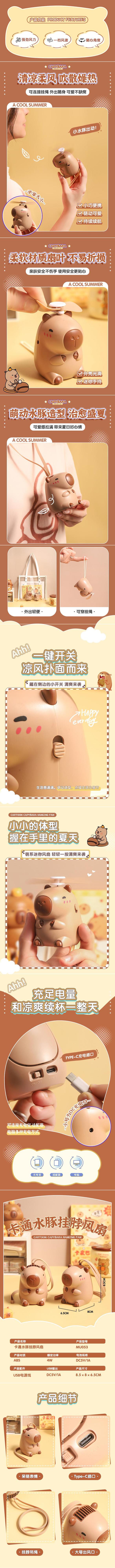 爆款生日礼物卡通水豚迷你usb充电手持儿童学生宿舍巴拉迷你风扇