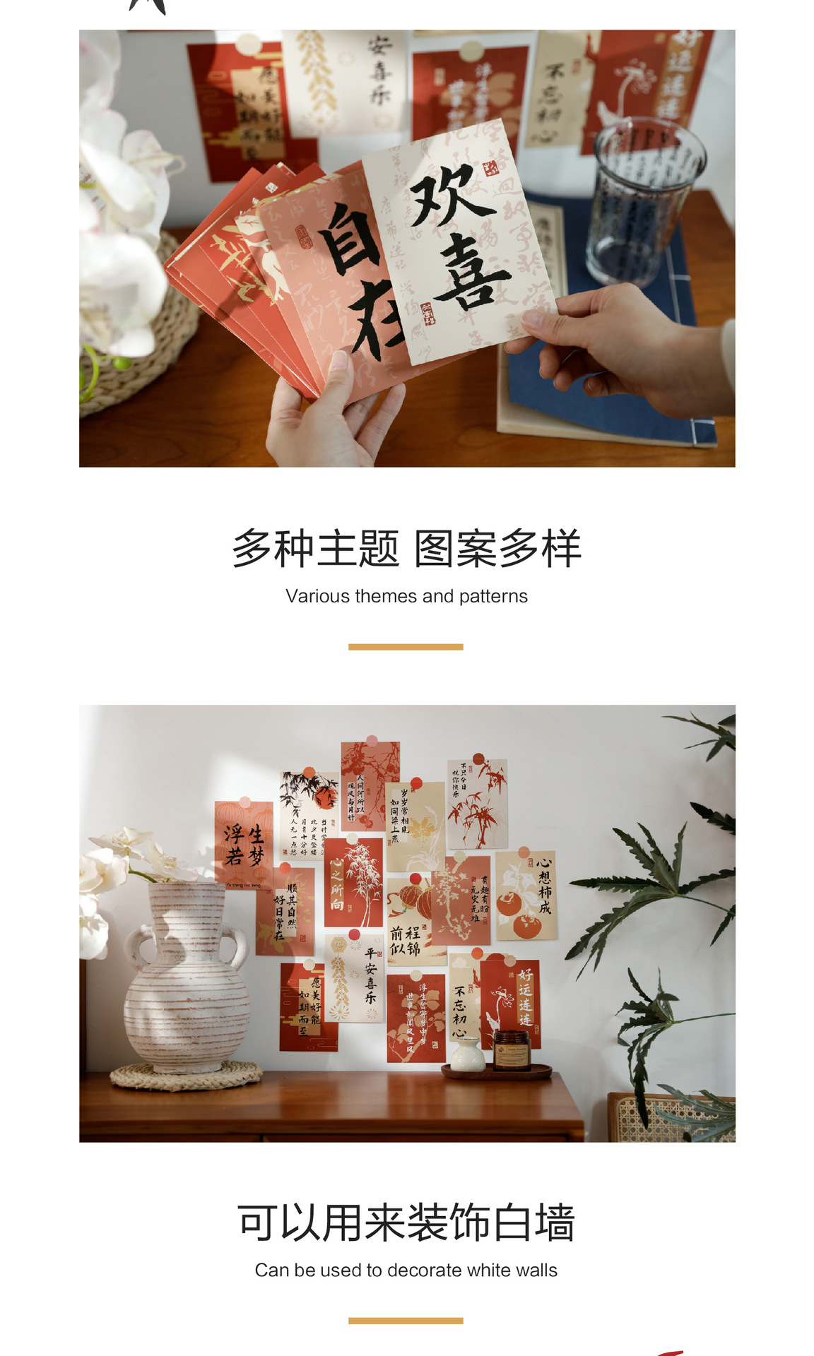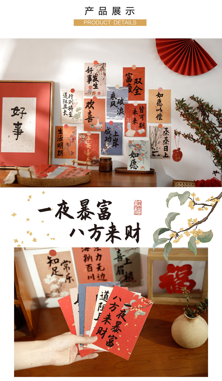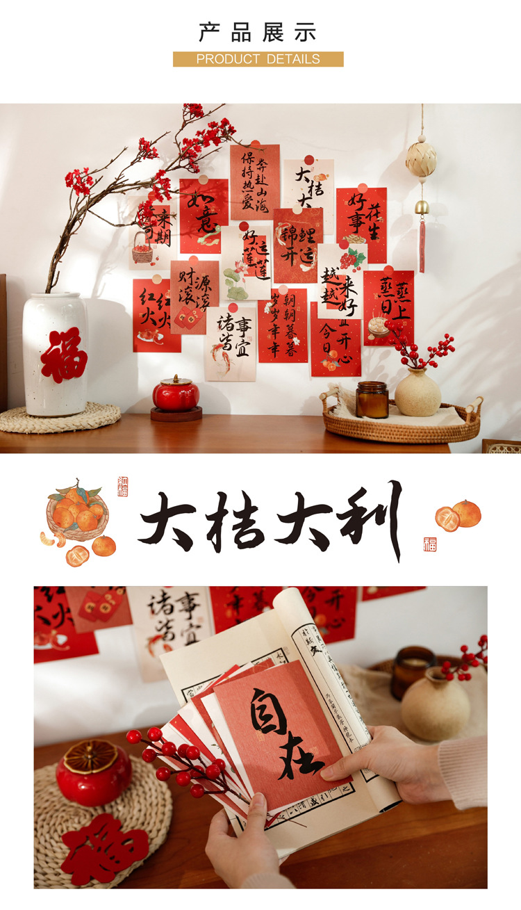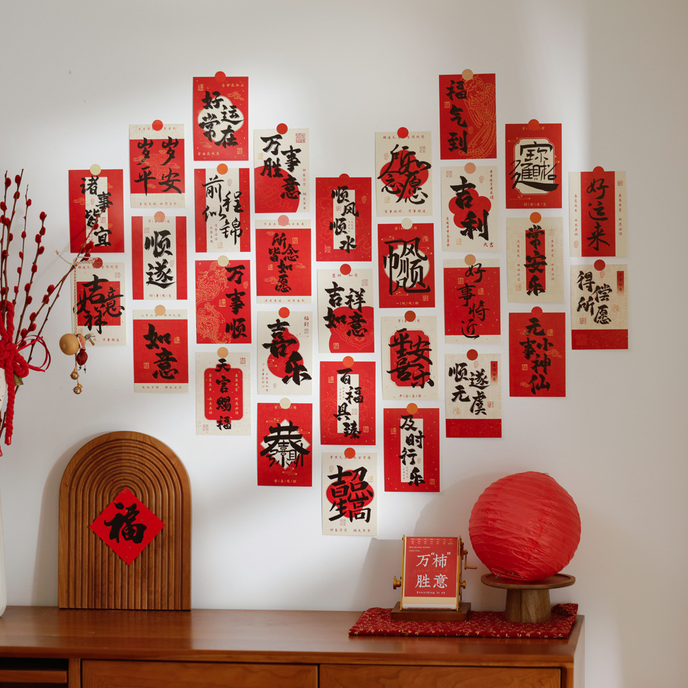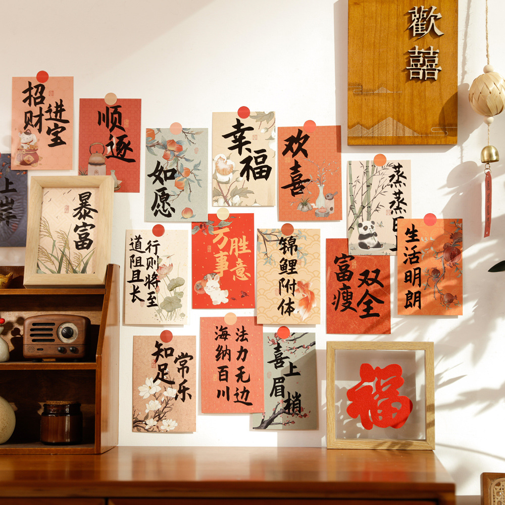 新年好运中式节日结婚祝福文字卡片中国风家居墙面装饰励志贺卡