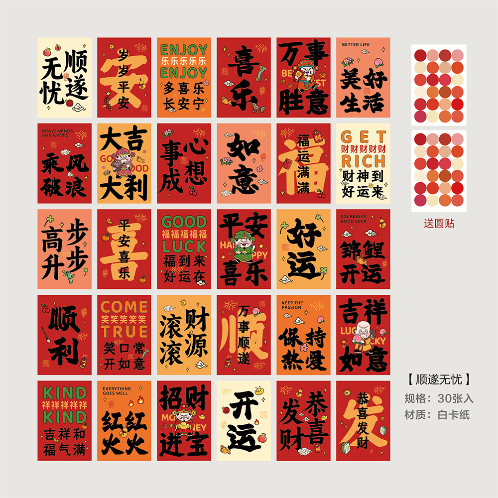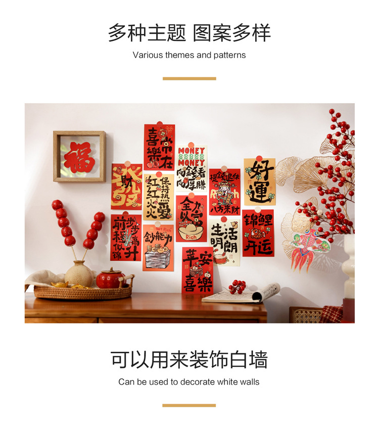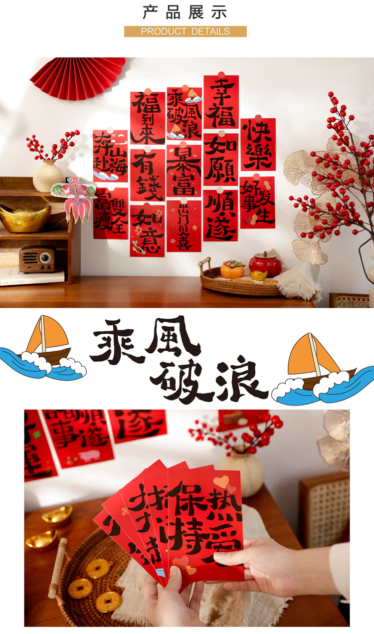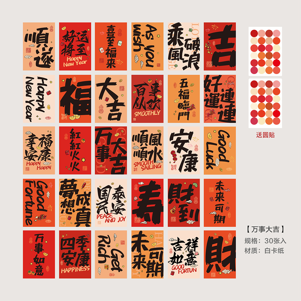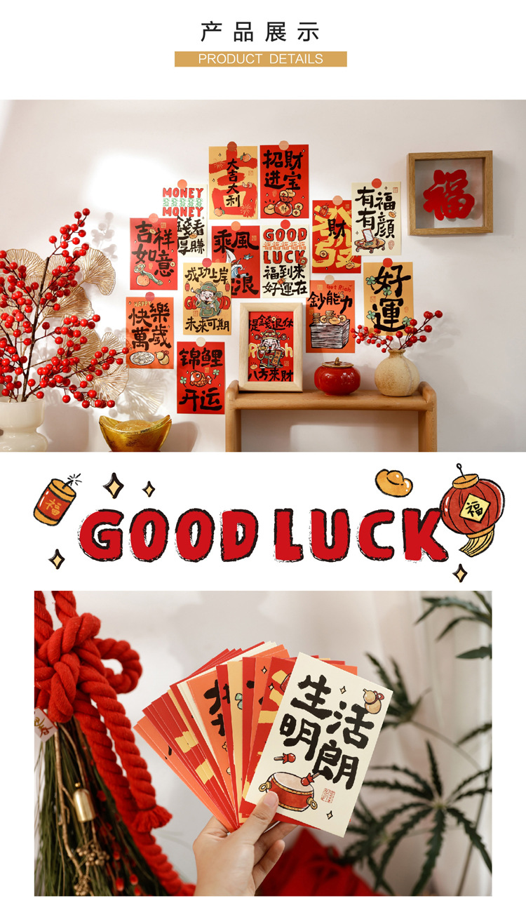 新年好运中式节日结婚祝福文字卡片中国风家居墙面装饰励志贺卡