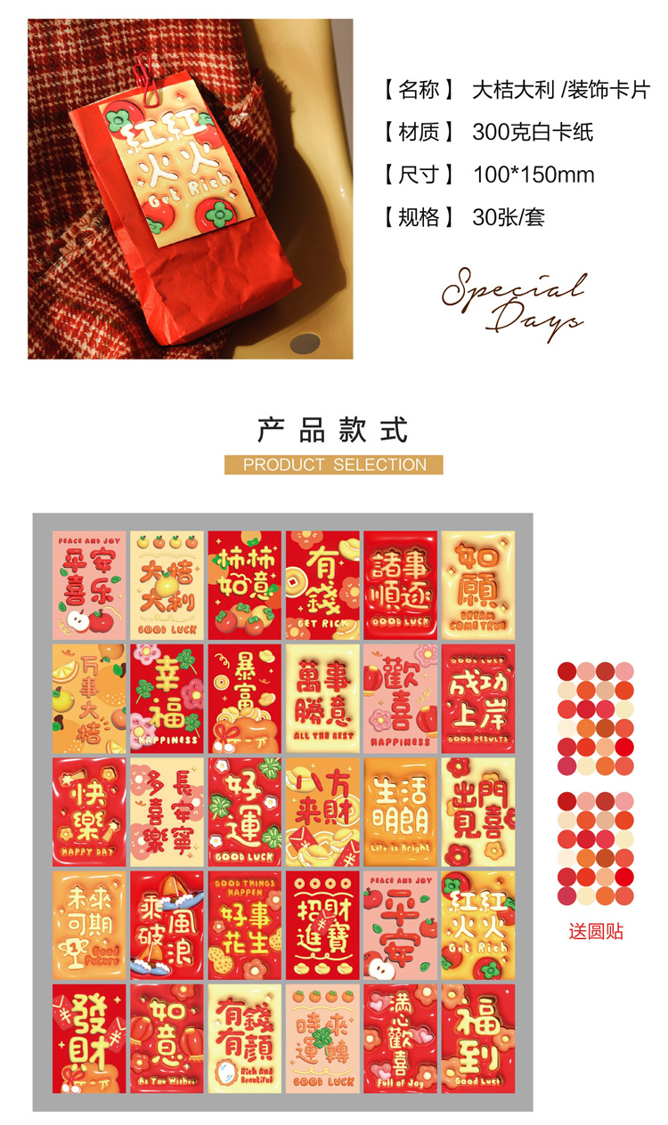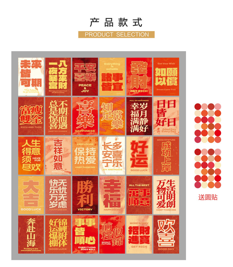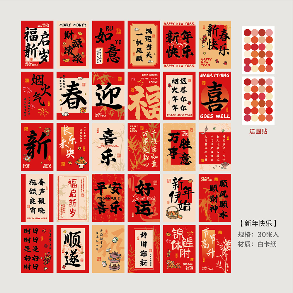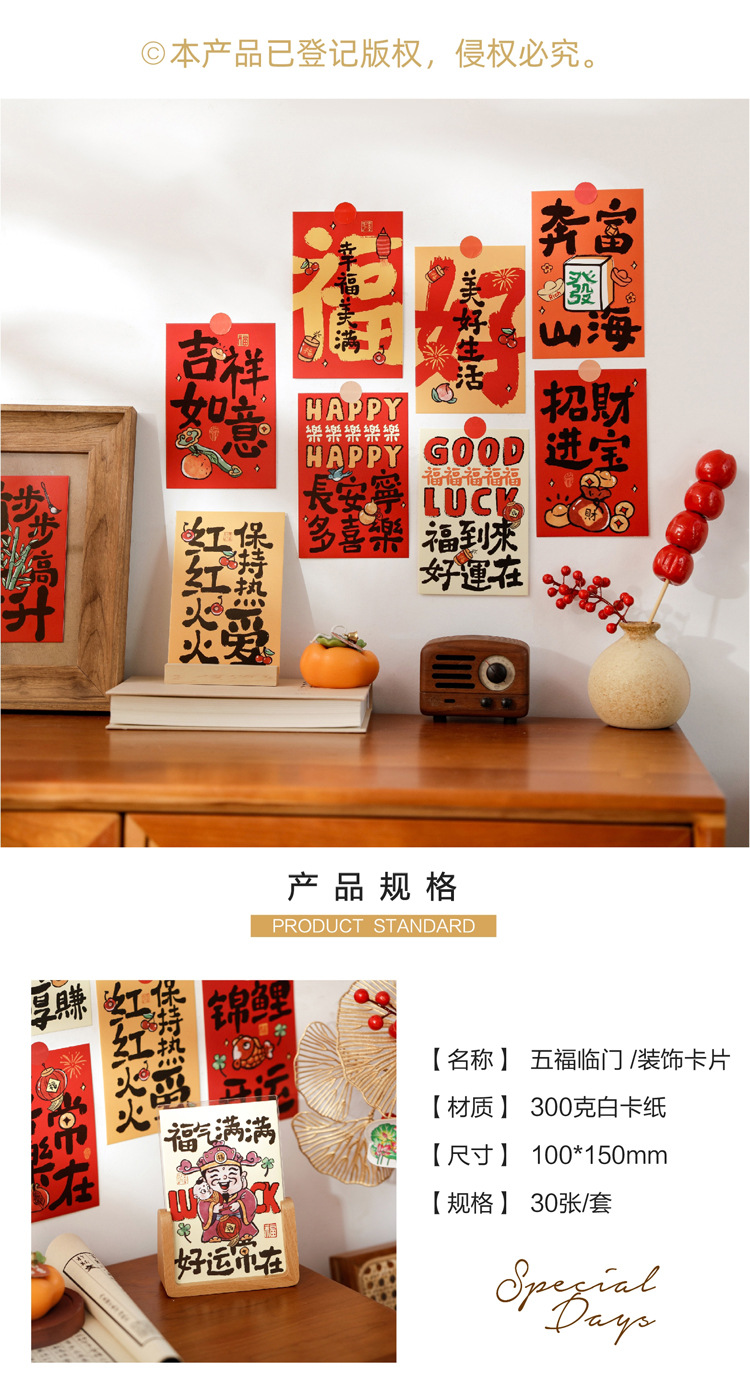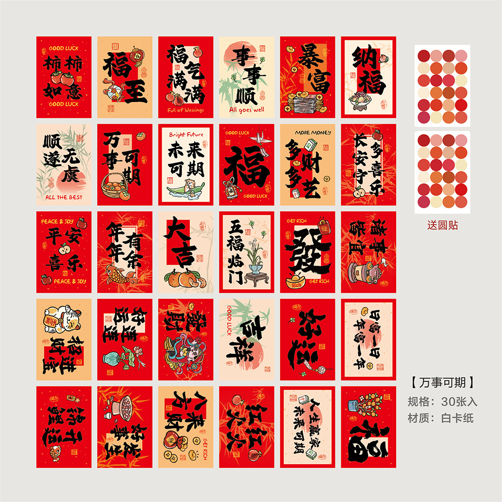 新年好运中式节日结婚祝福文字卡片中国风家居墙面装饰励志贺卡