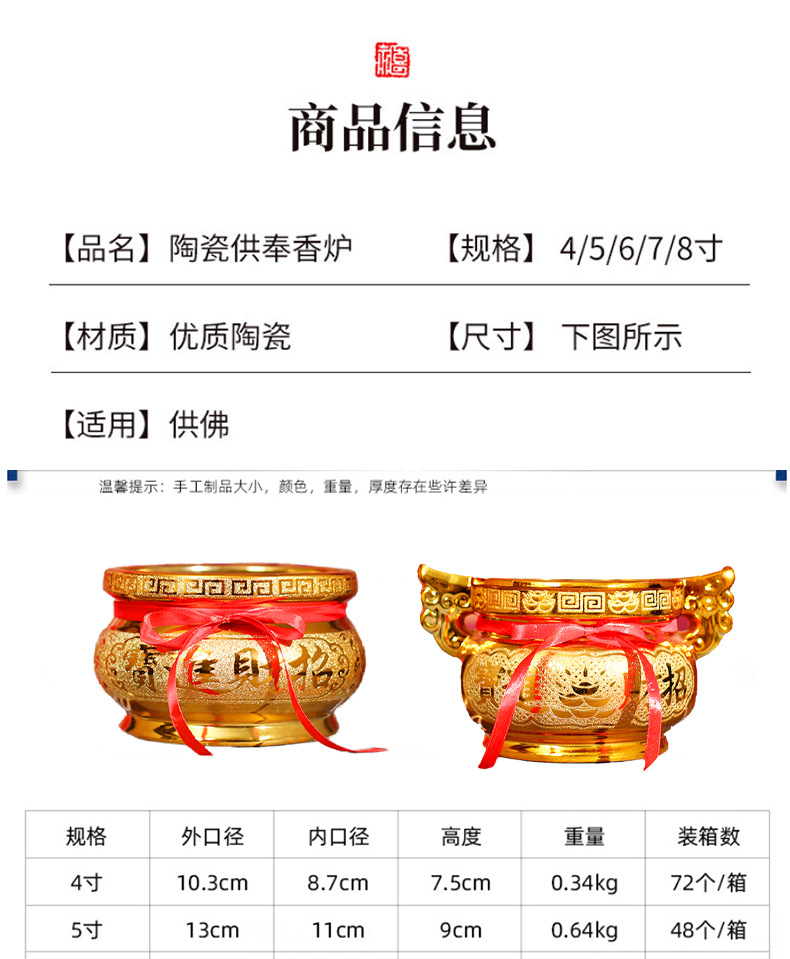 陶瓷香炉家用上香室内奉大号供佛插香佛具用品熏香薰烧炉碗
